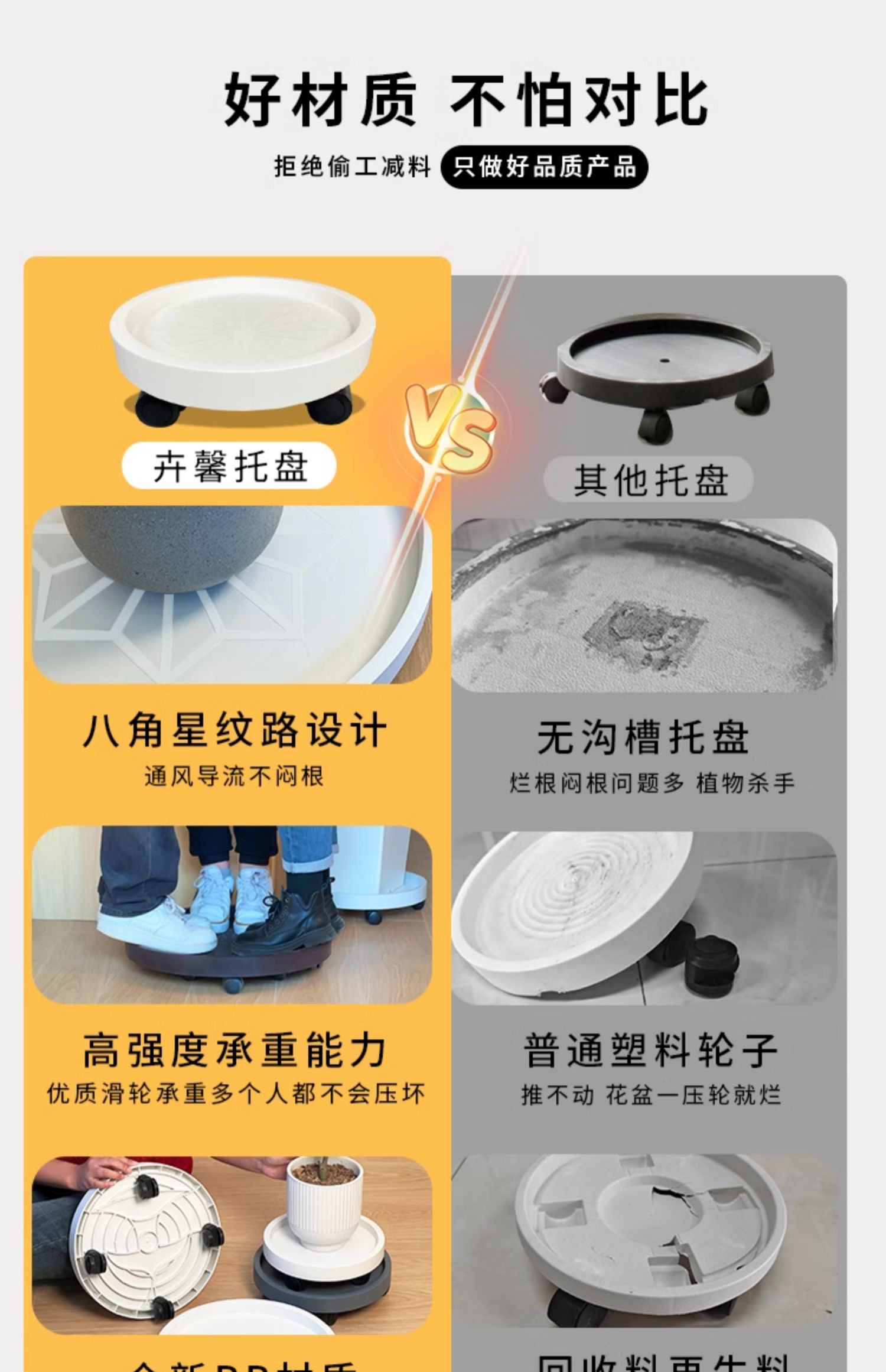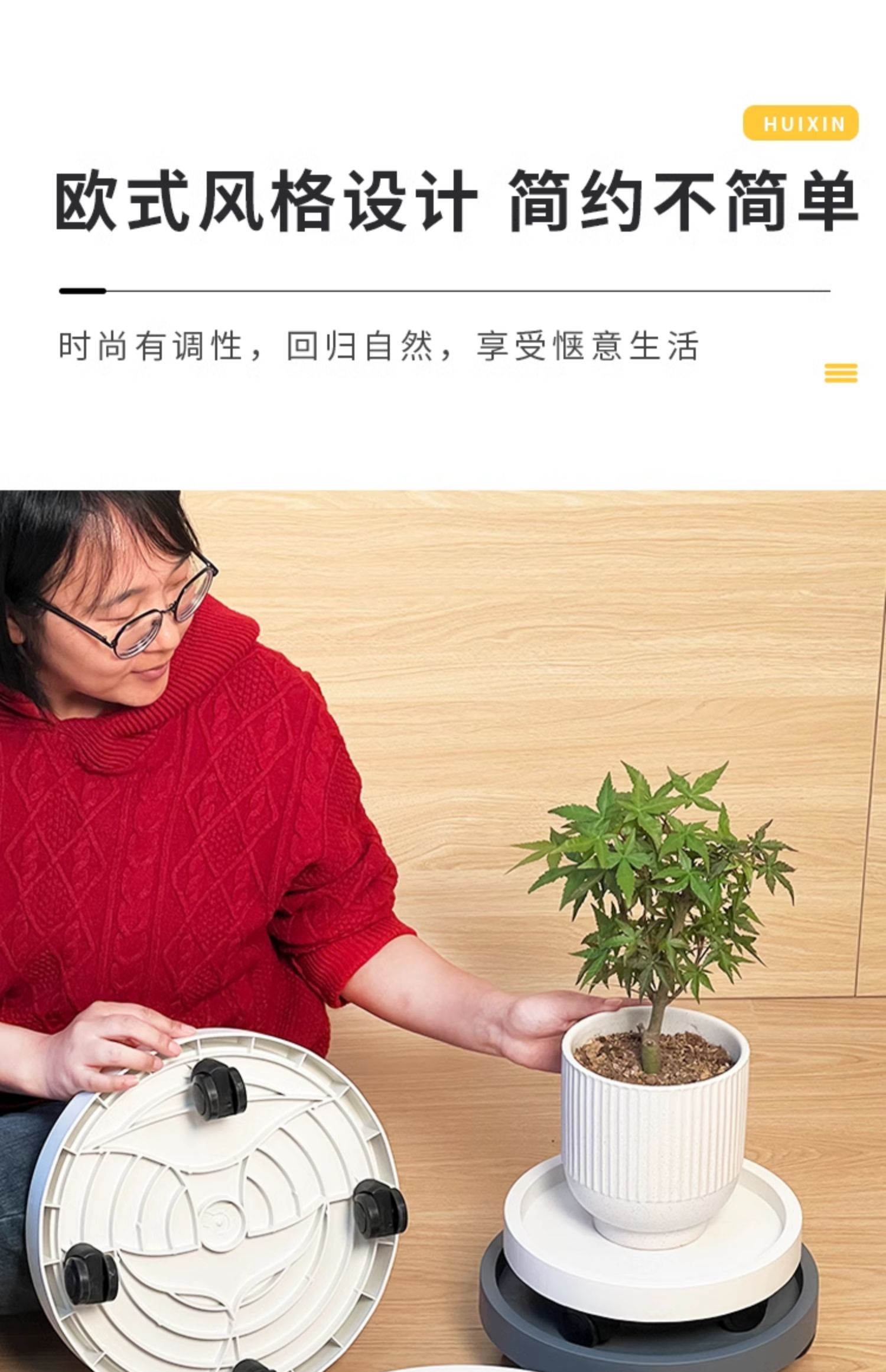 Huixin Garden Art는 바퀴가 달린 움직일 수있는 꽃 냄비 쟁반 플라스틱 두꺼운 바닥 꽃 냄비베이스 워터 트레이스토어 가기