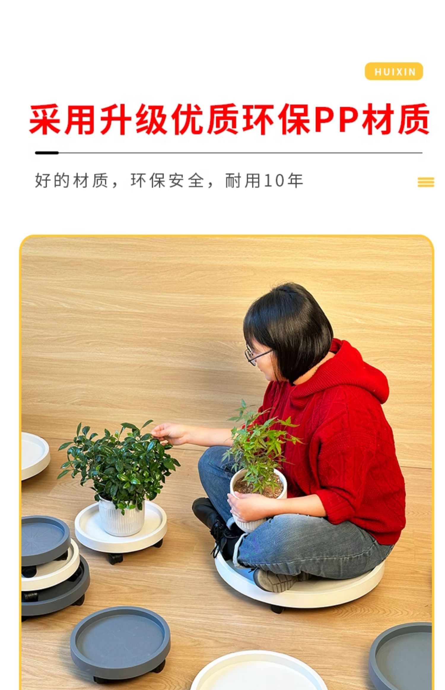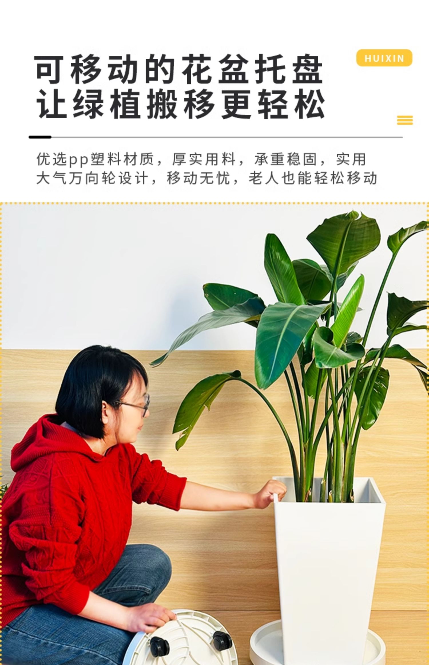 Huixin Garden Art는 바퀴가 달린 움직일 수있는 꽃 냄비 쟁반 플라스틱 두꺼운 바닥 꽃 냄비베이스 워터 트레이