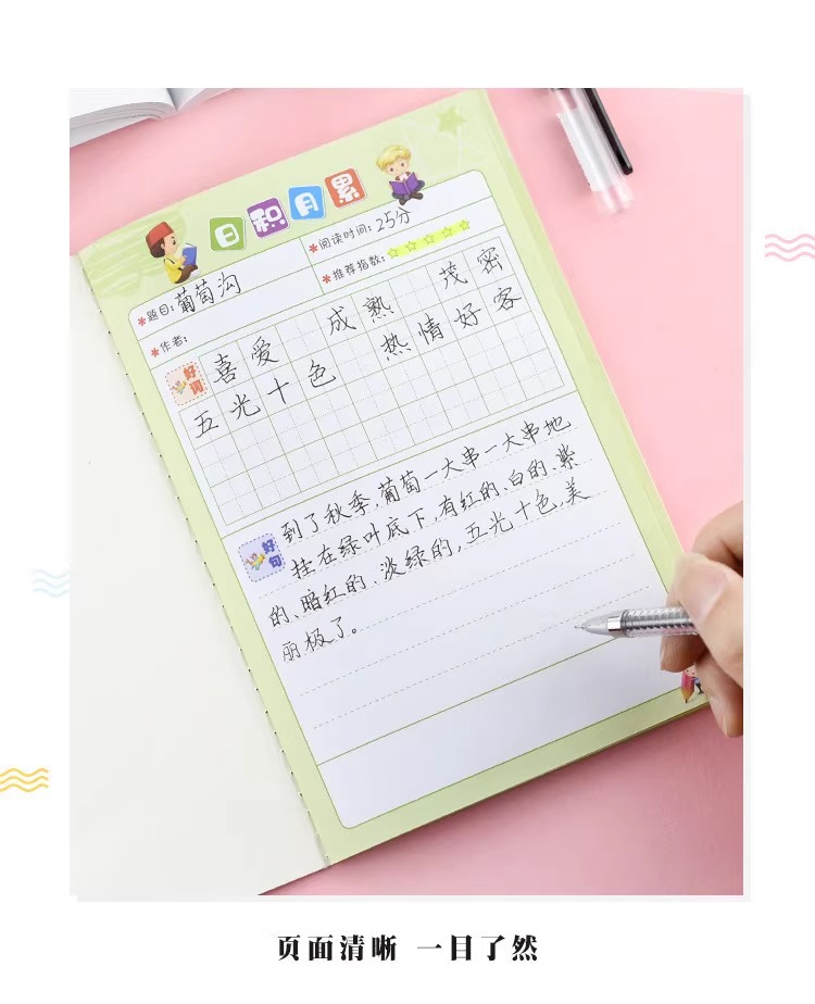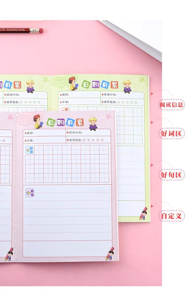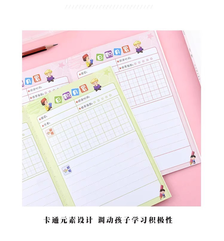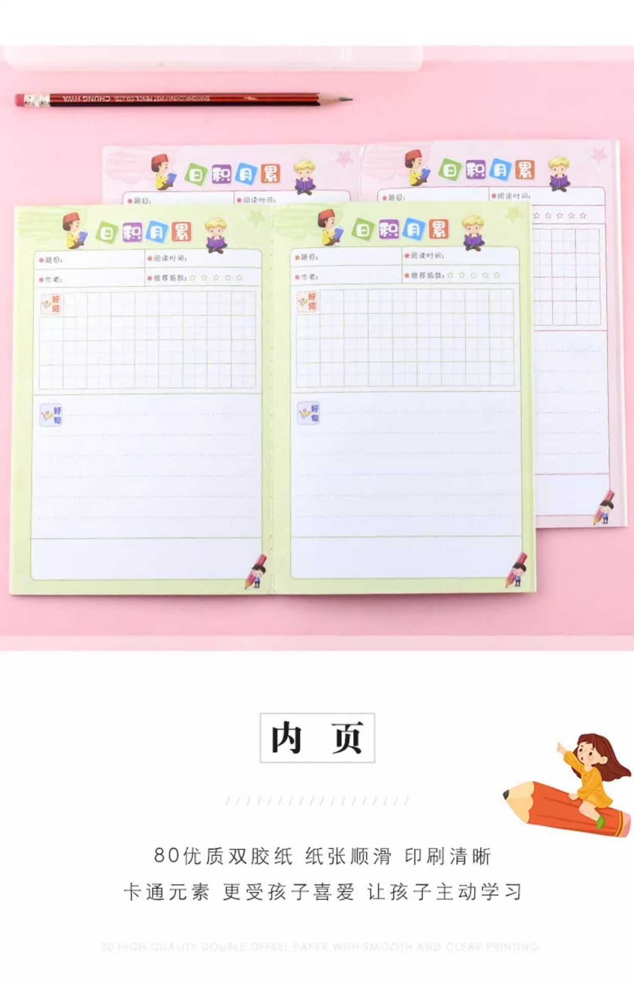학생들은 노트북, 좋은 단어, 좋은 문장, 발췌, 발췌, 특수 단어, 축적을 읽고 수년에 걸쳐 축적 된이 책의 발췌 부분을 읽습니다.스토어 가기