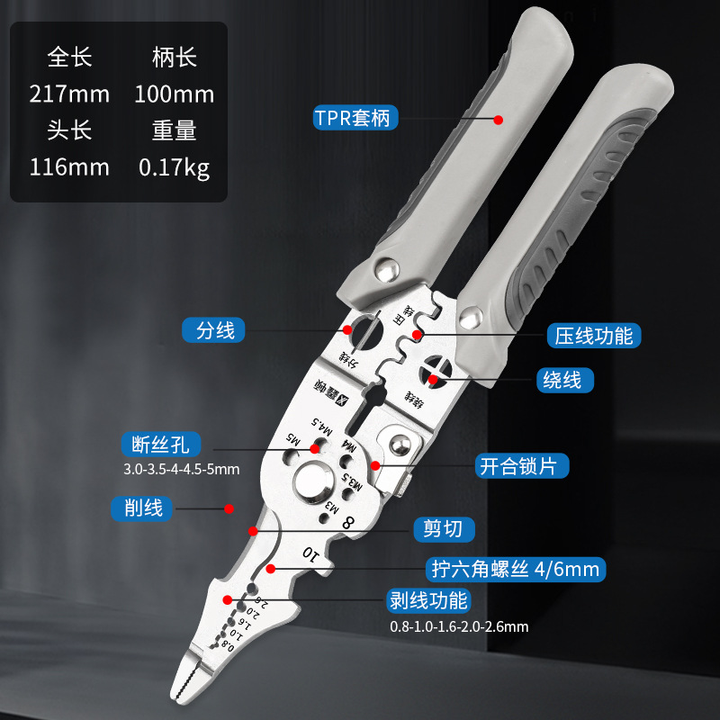 새로운 다기능 와이어 스트립 펜치 전기 플라이어 전용 스테인레스 스틸 뾰족한 입 케이블 절단 광섬유 라인 절단 라인 압력 라인