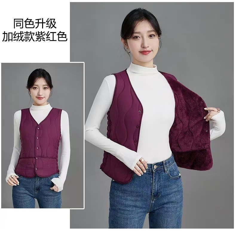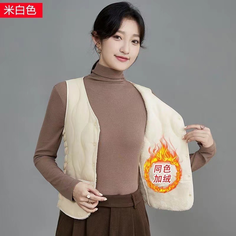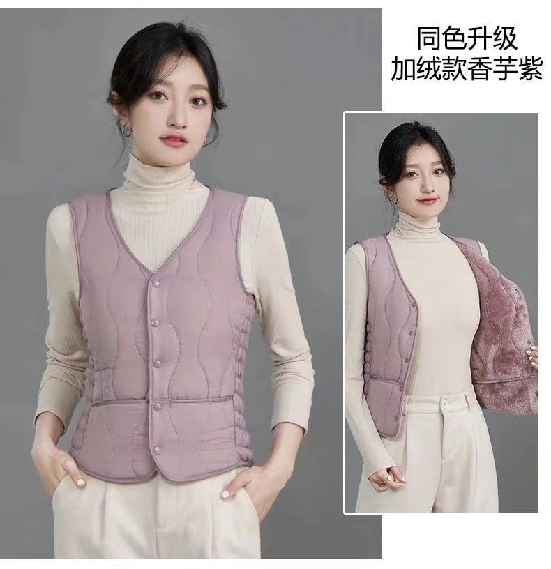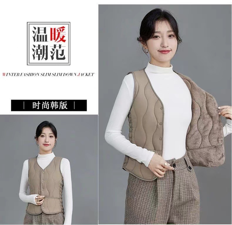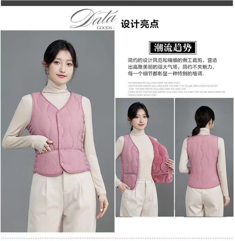 여자 2024 년 가을 및 겨울 새 면화 조끼 방한 따뜻한 입욕 내부 Ware 올 매치 슬림 핏 중년 및 노인 조끼스토어 가기