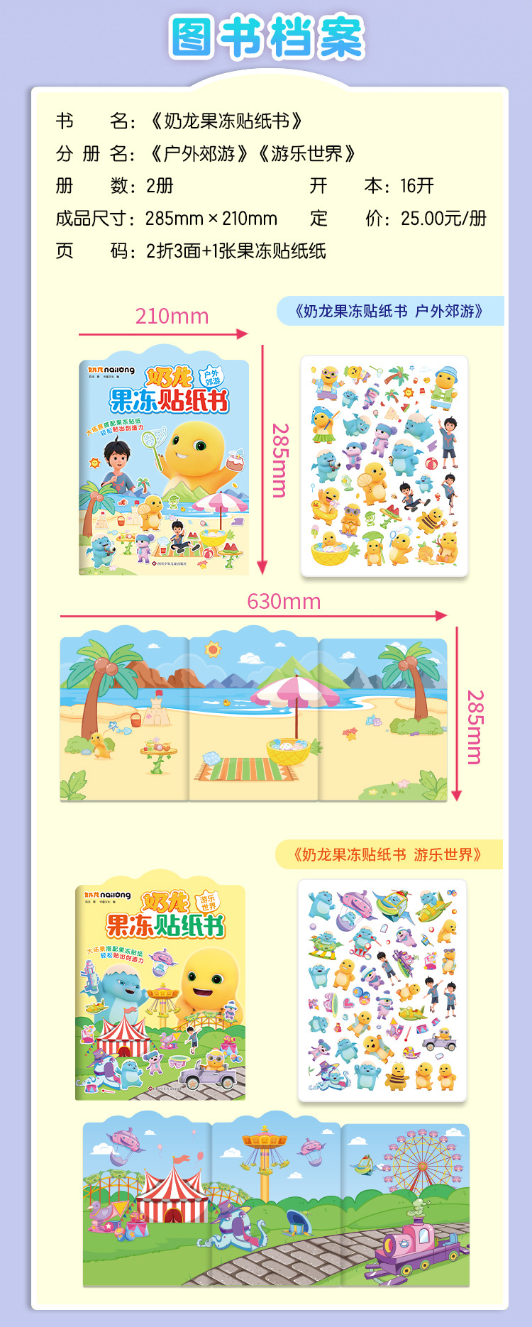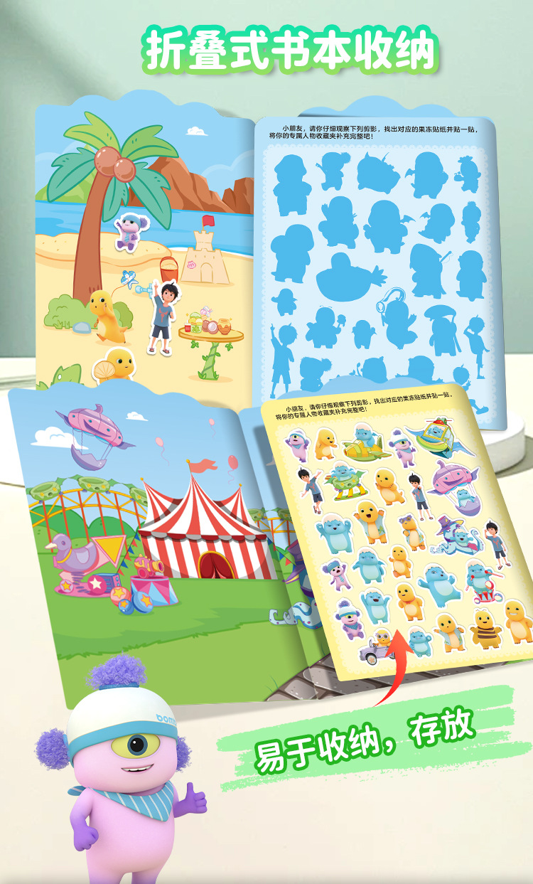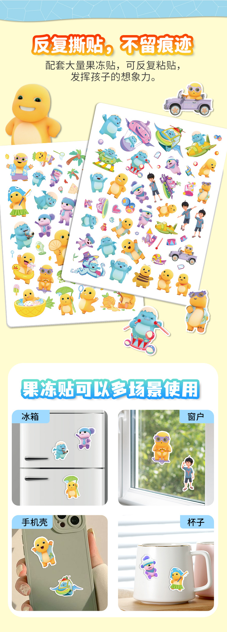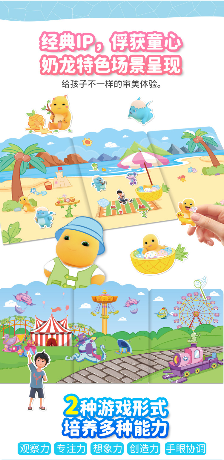 밀크 드래곤 과일 젤리 스티커북 만화 세탁 가능 반복 붙이기 그림책 유아 3~6세 어린이 교육용 장난감스토어 가기