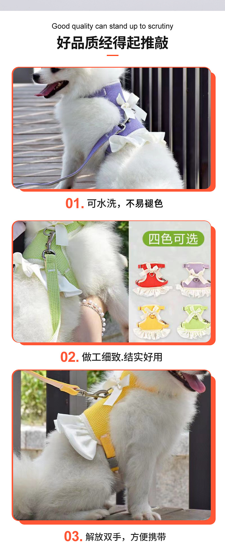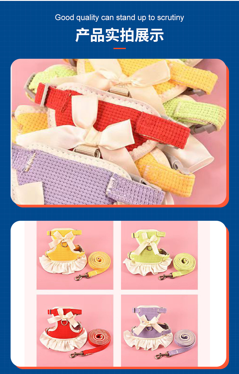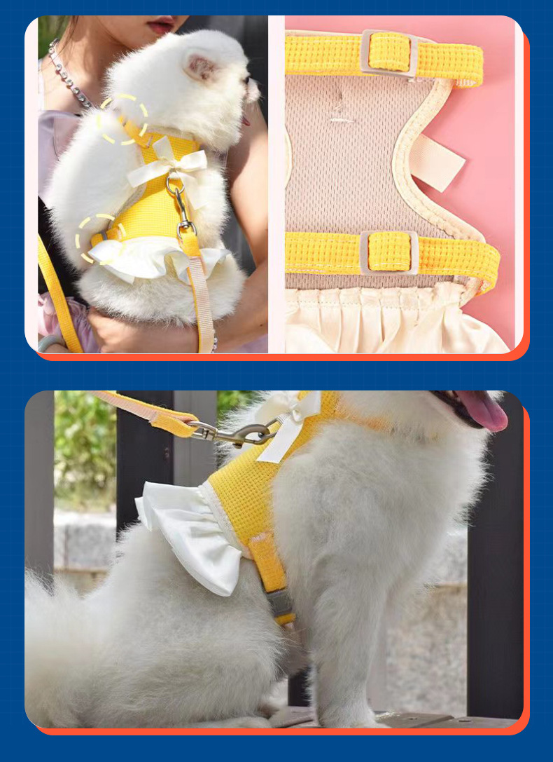 고양이와 강아지를 위한 조끼형 애완동물 목줄, 탈출 방지 소형견 하네스, 비숑 프리즈, 포메라니안 공주 드레스 옷