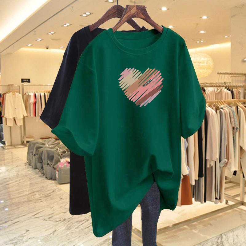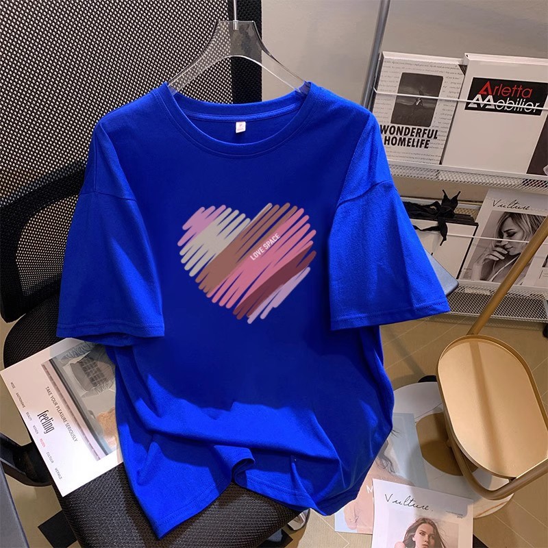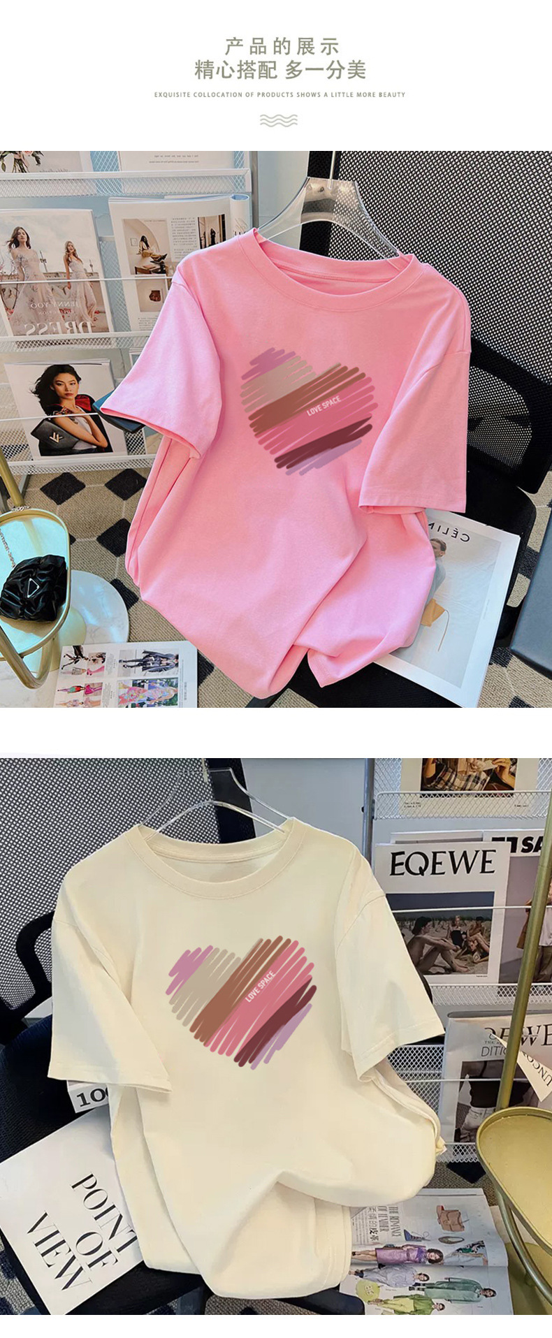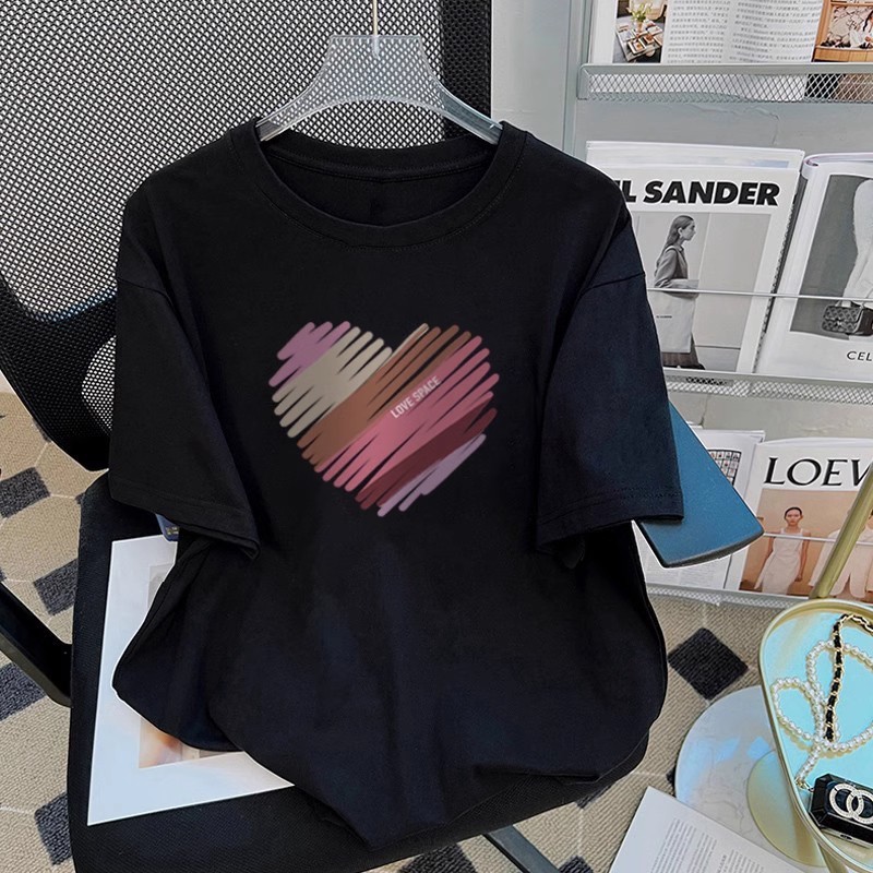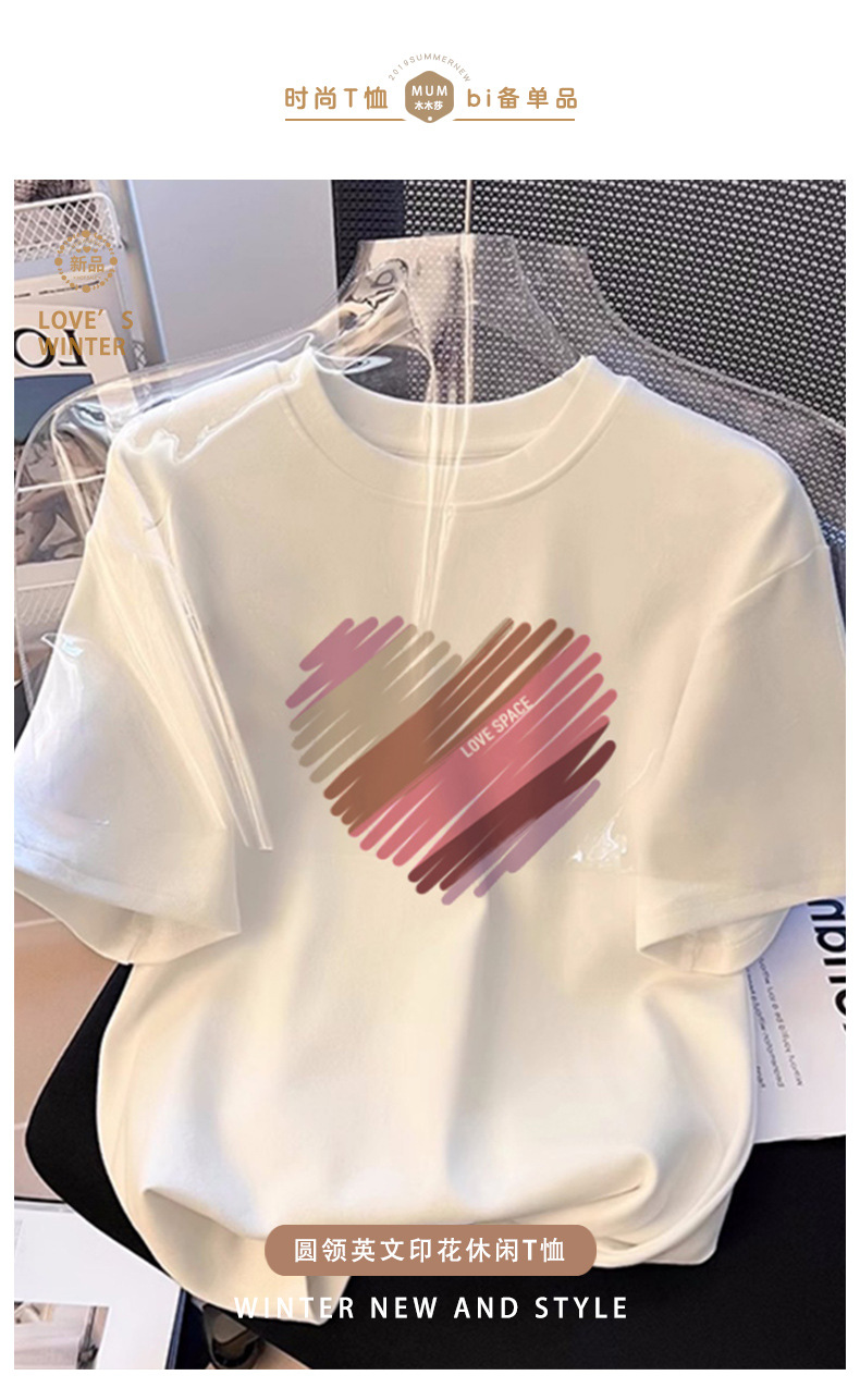 2025 여름 새로운 사랑 화이트 라운드 넥 반팔 티셔츠 여성 패션 올 매치 루즈 디자인 센스 트렌디 티셔츠스토어 가기