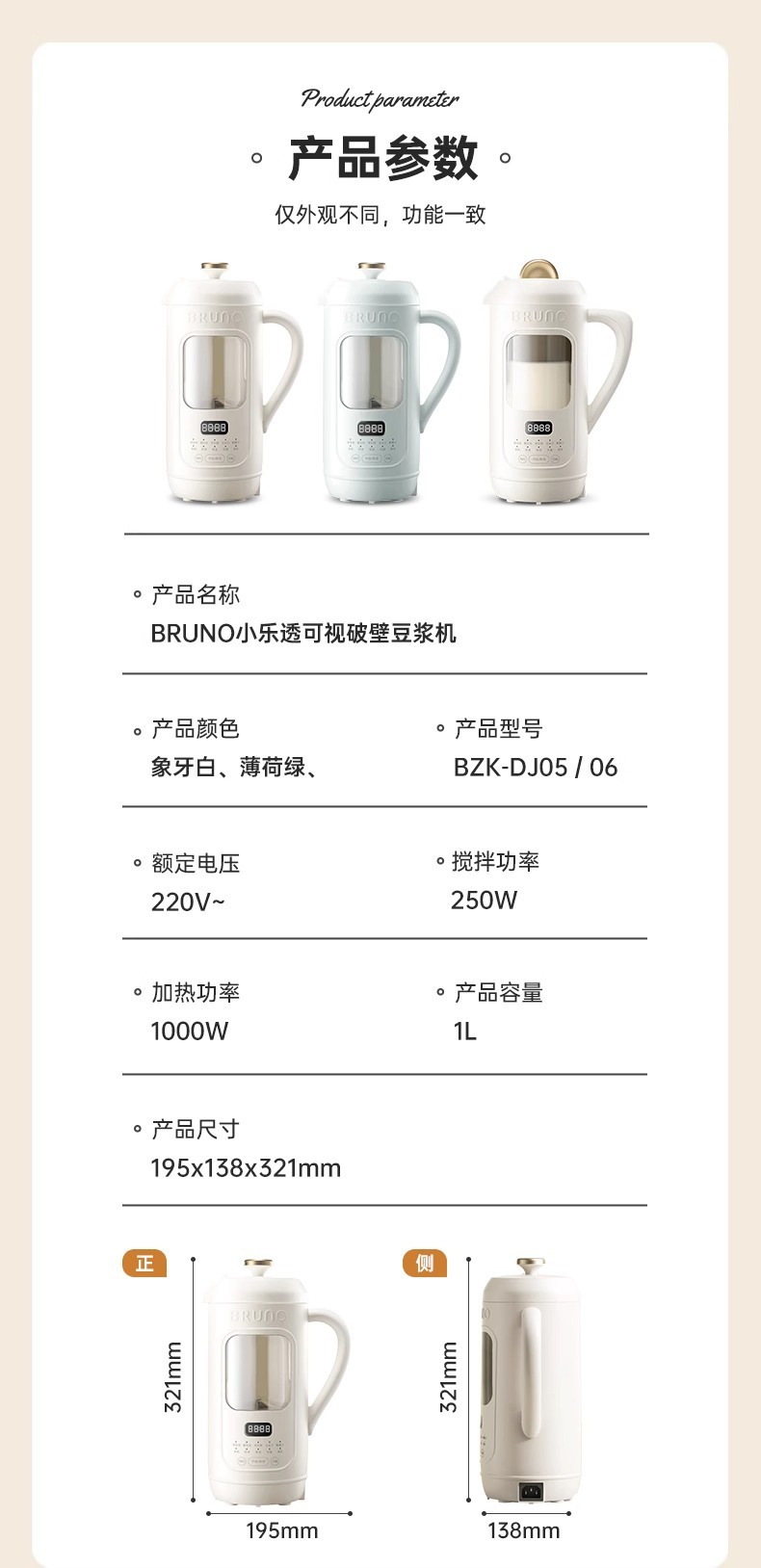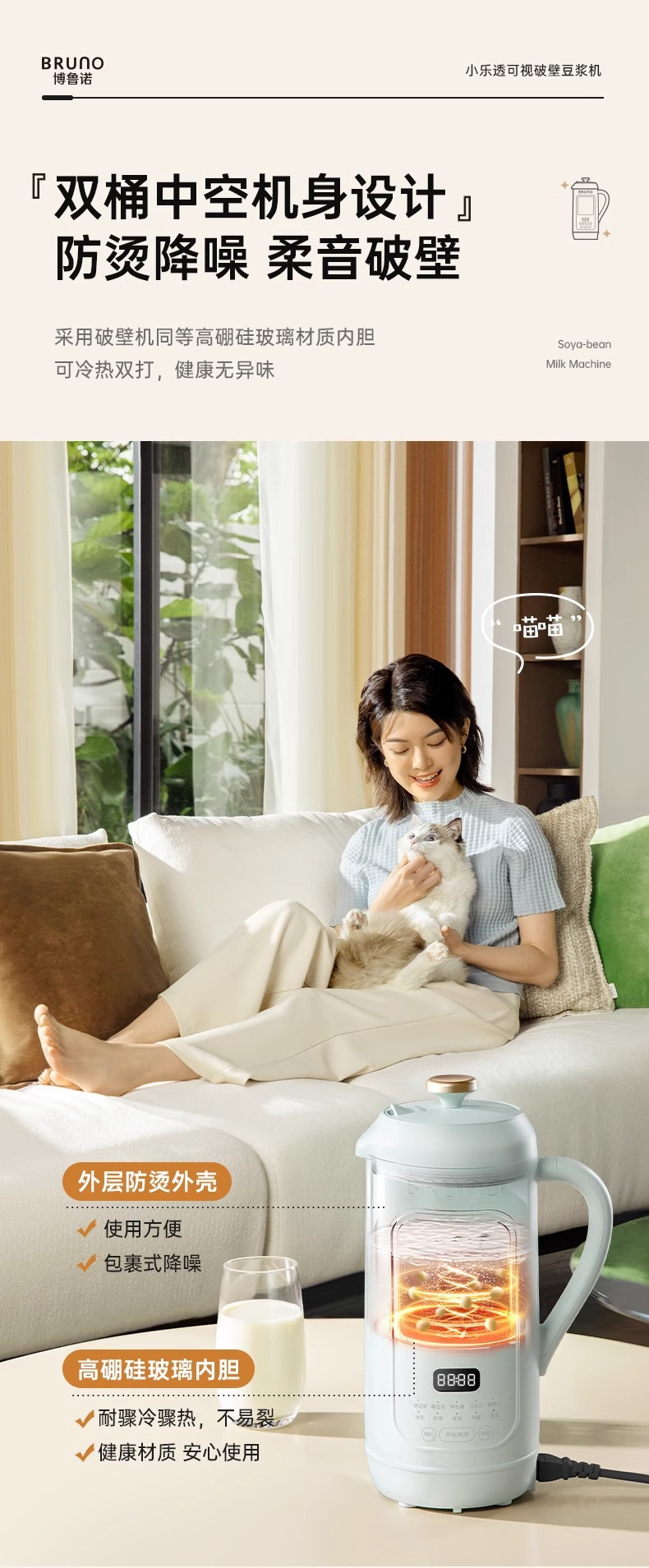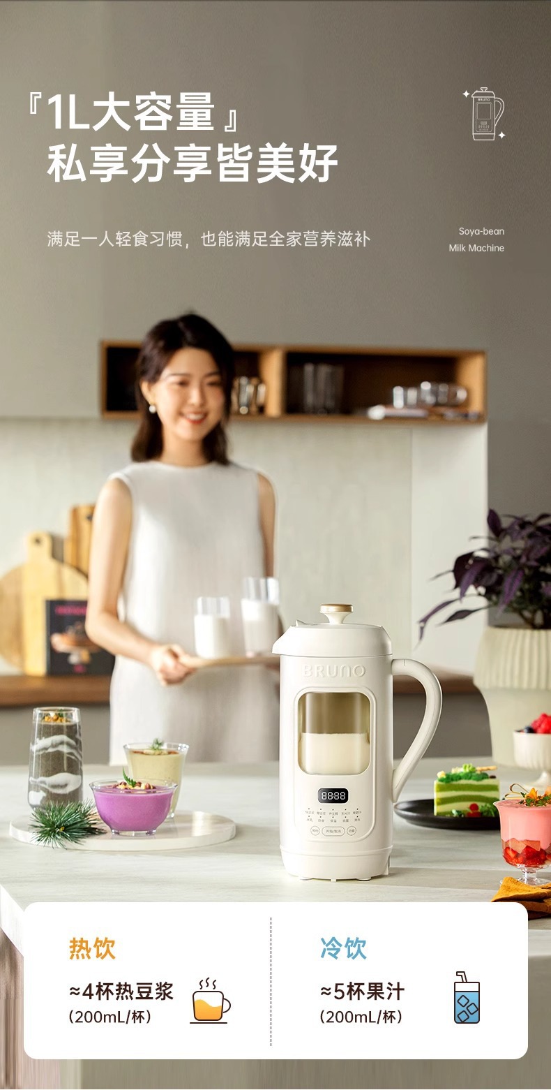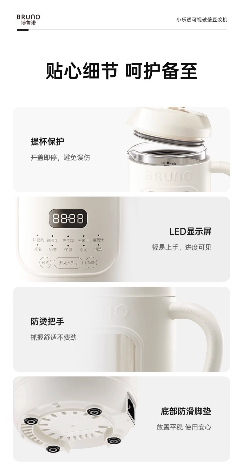 BRUNO 두유 기계 가정용 자동 미니 저소음 다기능 비주얼 필터 프리 Juicer DJ05