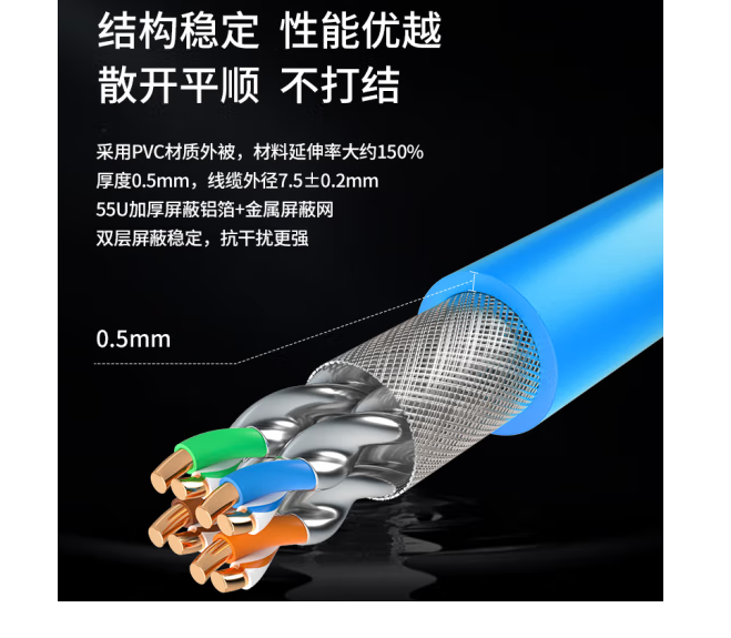 Boyang 클래스 7 더블 차폐 네트워크 케이블 S/FTP Cat7 클래스 10 기가비트 네트워크 케이블 0.58 트위스트 페어 박스 케이블 BY-7305L스토어 가기