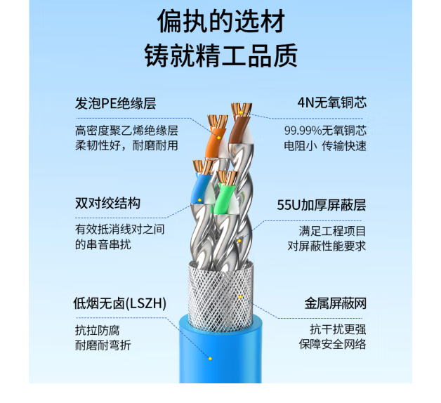 博扬 七类双屏蔽网线S/FTP Cat7类低烟无卤万兆网线 0.58无氧铜工程级双绞线箱线 305米/蓝 BY-7305L