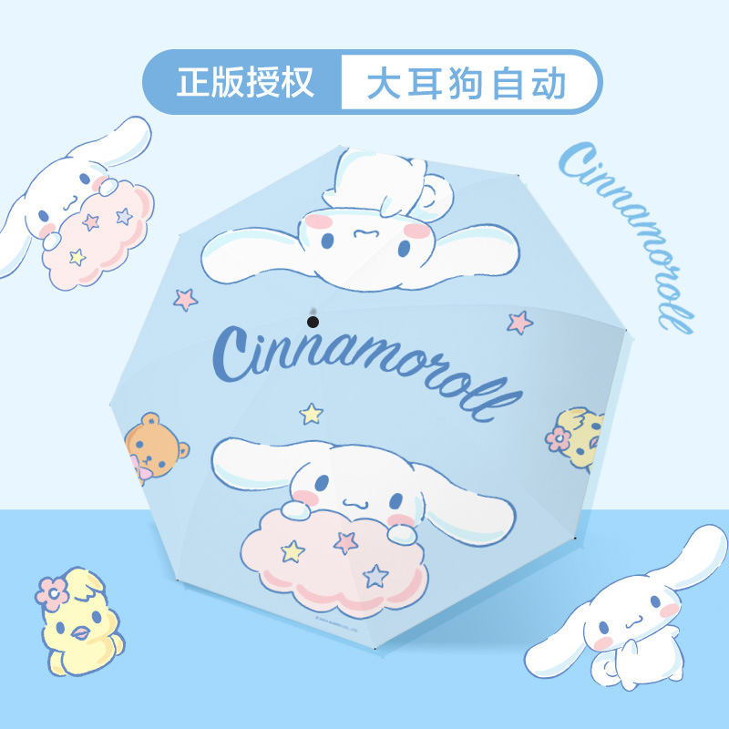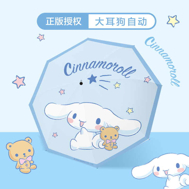 산리오 빅이어독 시나모롤 자동 우산, 비와 햇빛 모두 사용 가능한 접이식 블랙글로스 우산, 자외선 차단 블랙글로스 우산스토어 가기