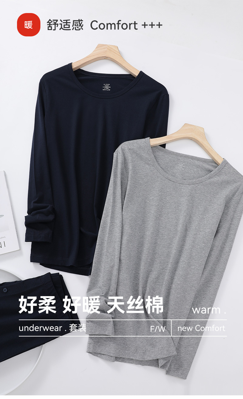 가을 겨울 남성 보온 속옷 텐셀 플러스 사이즈 라운드 넥 잠옷 세트 모달 코튼 가을 옷과 긴 바지스토어 가기