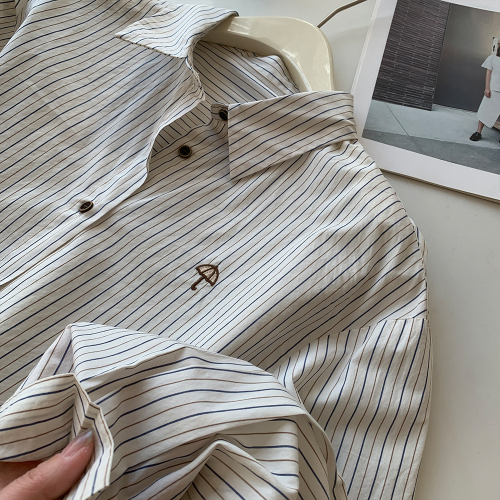 한국 자수 우산 수직 줄무늬 면 긴팔 셔츠 봄 새로운 도착 대학 스타일 올 매치 슬림 핏 셔츠스토어 가기