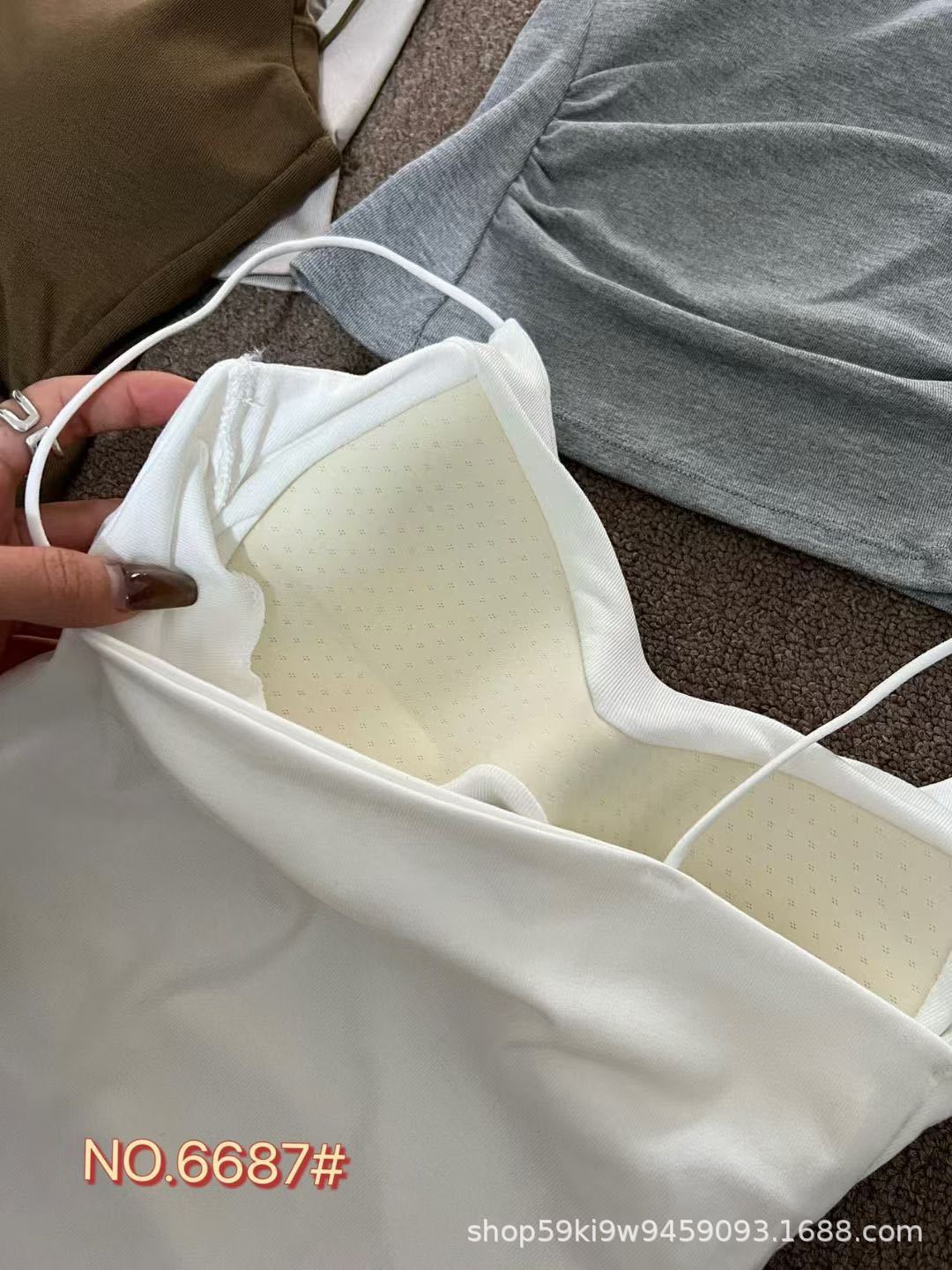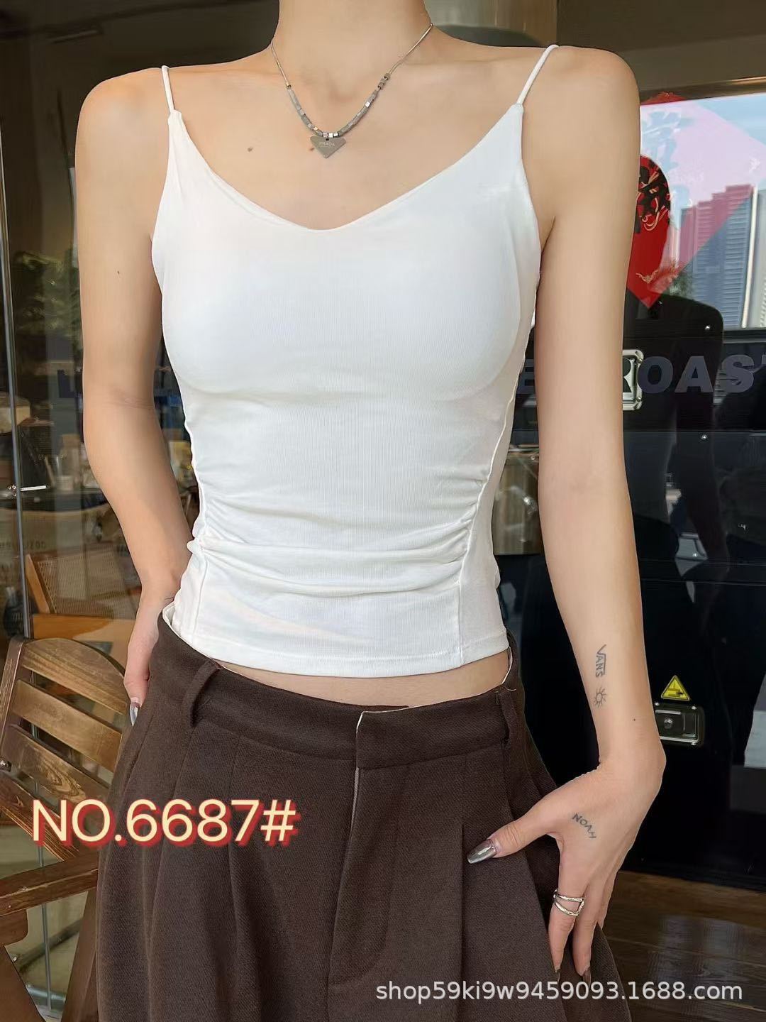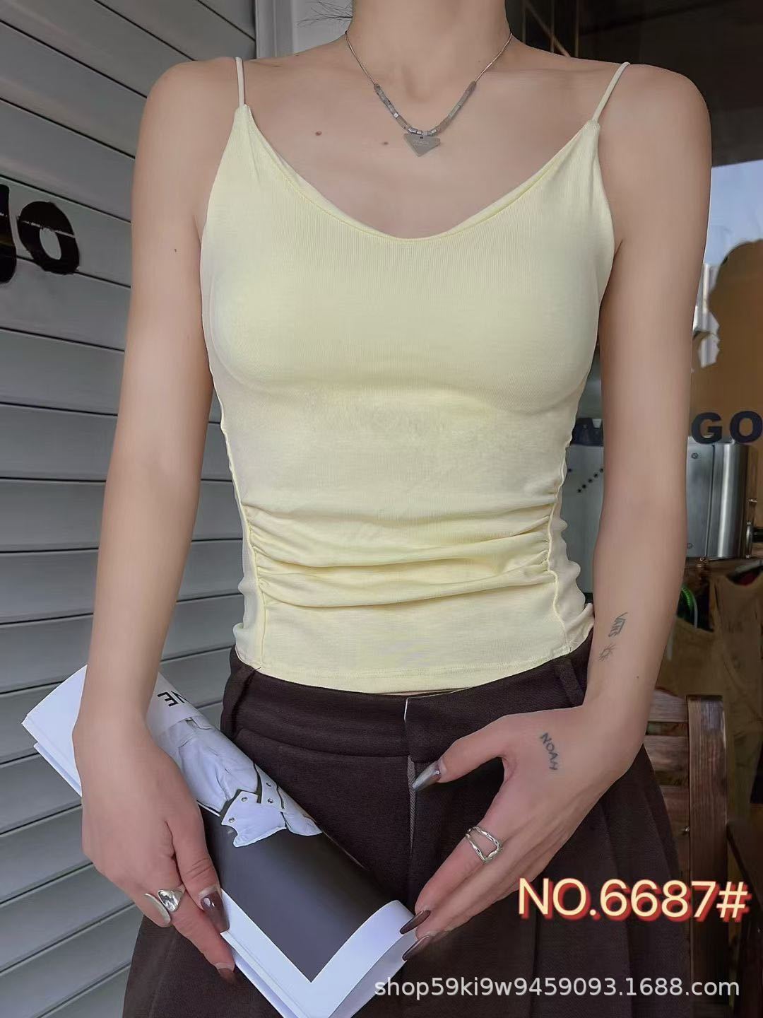 6687 # 이른 봄 높은 탄력 모형 면 작은 카미솔 다재다능한 주름진 크림 슬림 핏 푸시 업