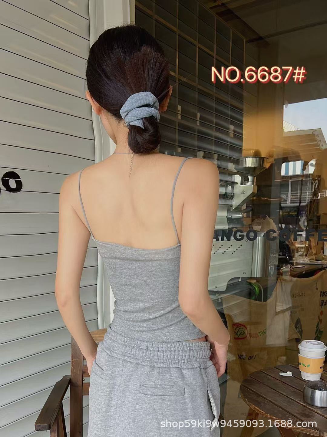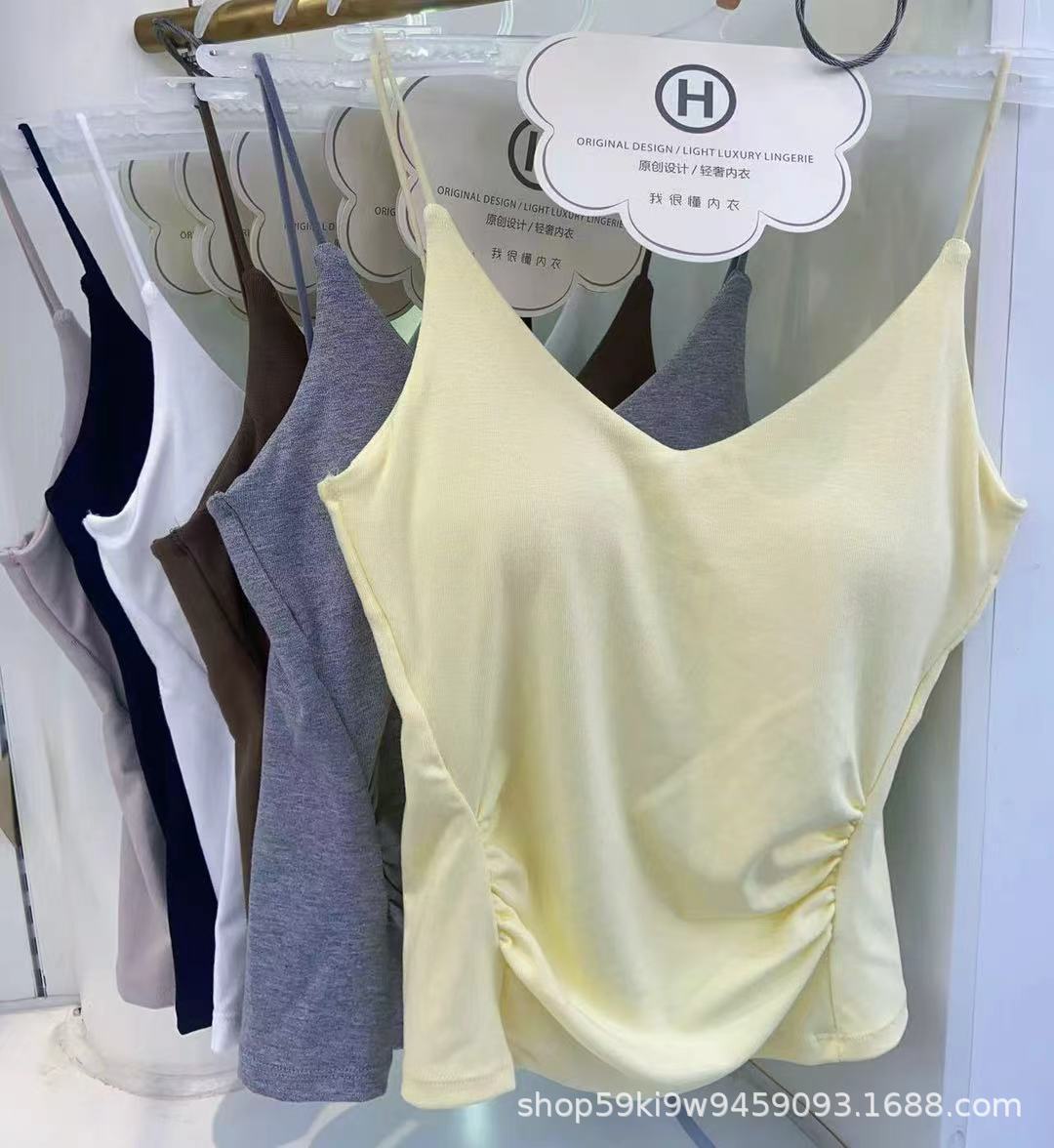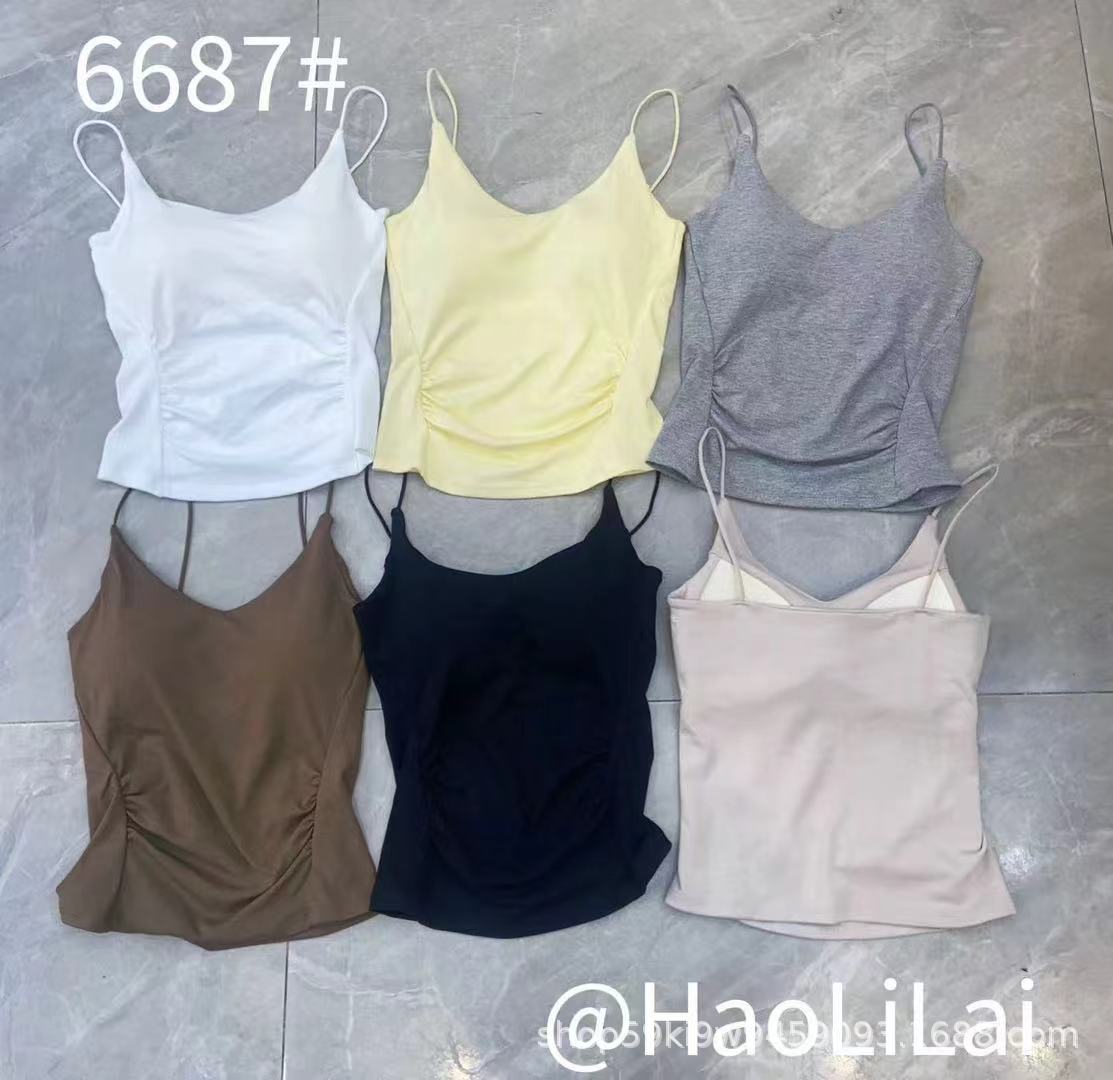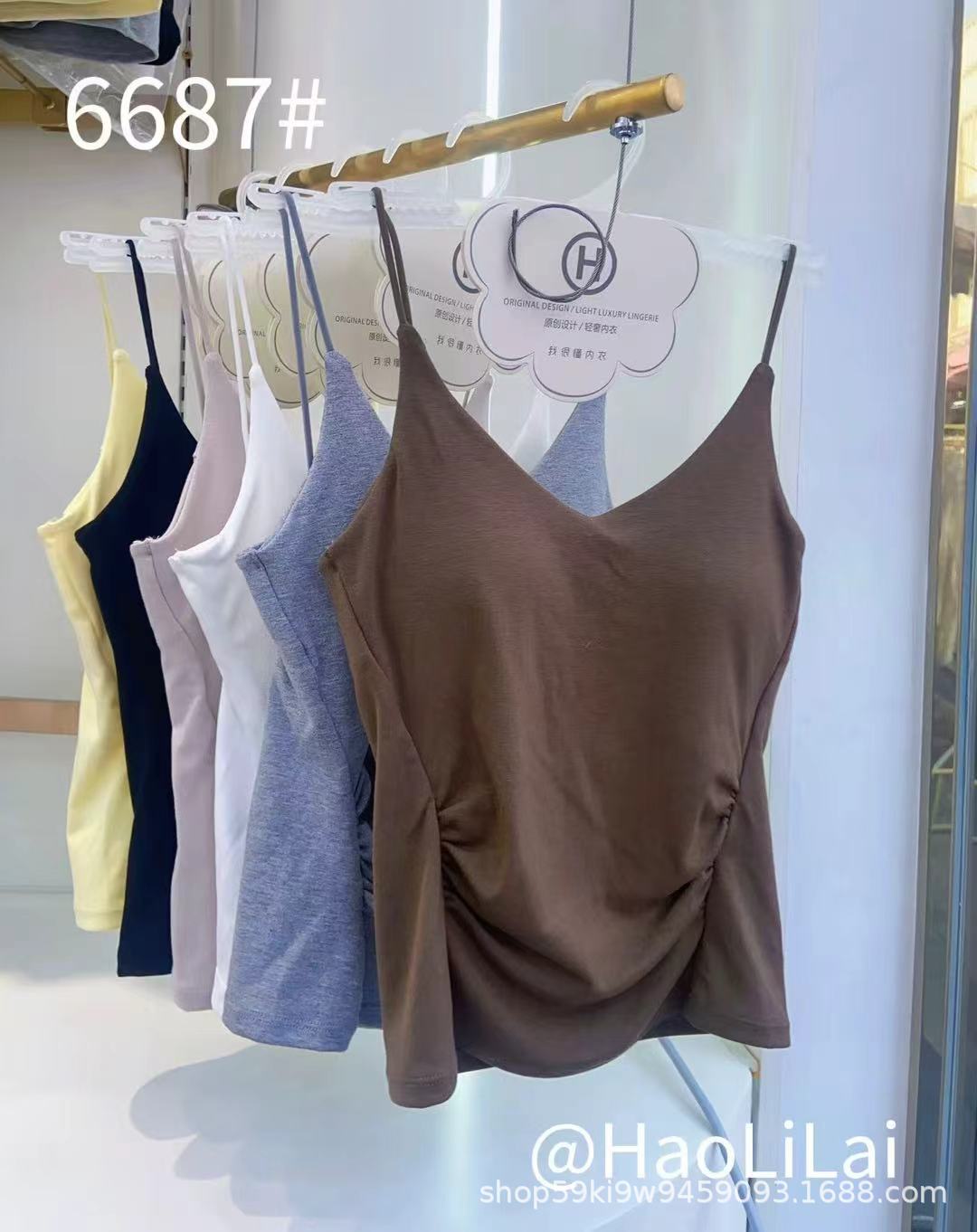 6687 # 이른 봄 높은 탄력 모형 면 작은 카미솔 다재다능한 주름진 크림 슬림 핏 푸시 업