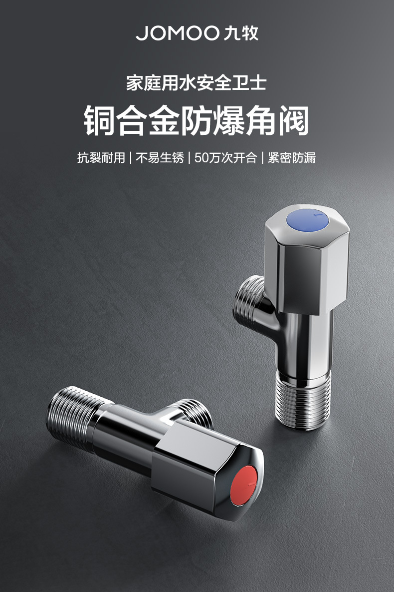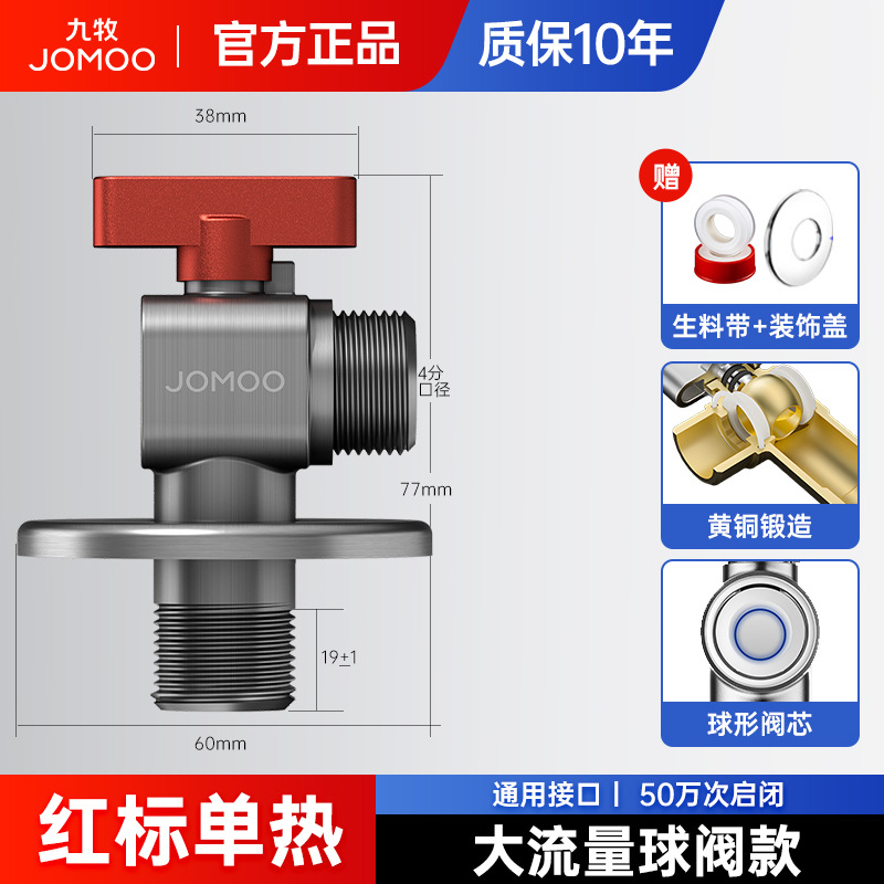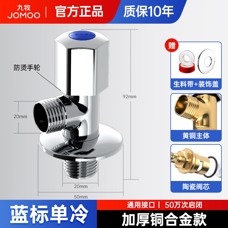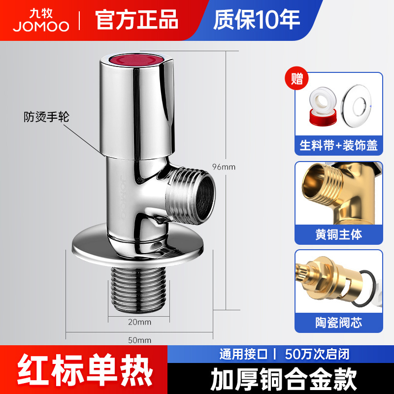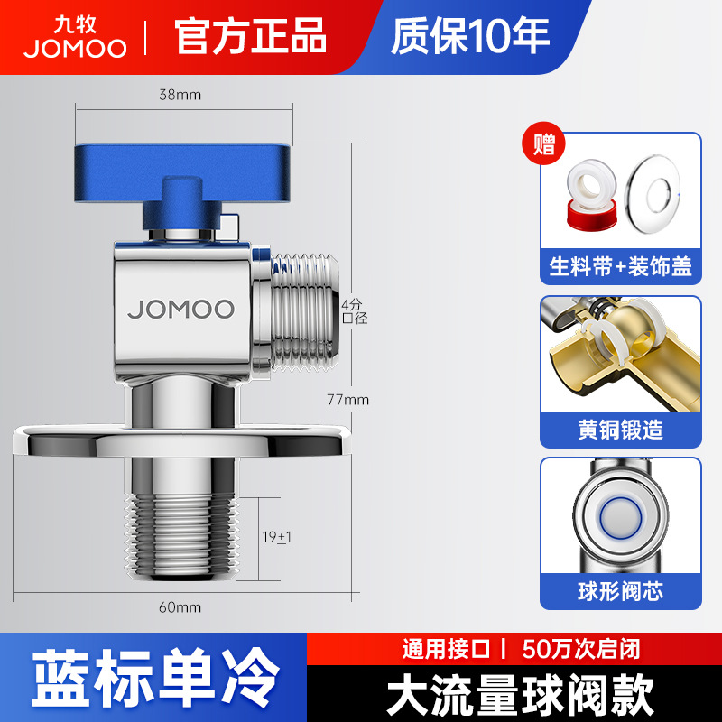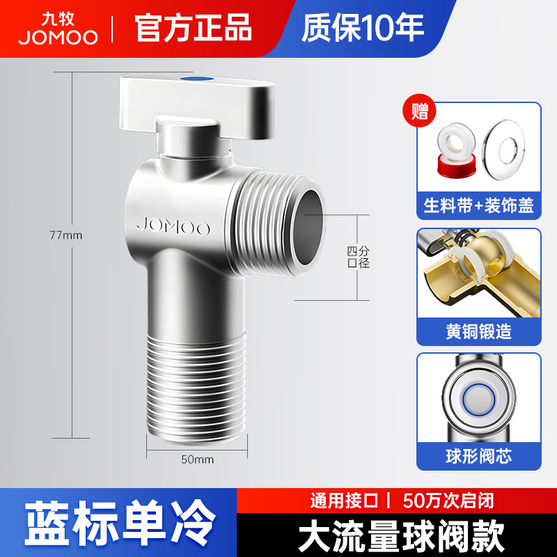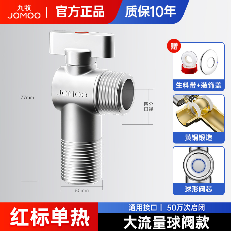 Jiumu 각도 밸브 볼 밸브 하나의 출구 밸브 큰 흐름 모든 구리 4 포인트 연장 화장실 삼각형 밸브 냉간 및 고온 밸브스토어 가기