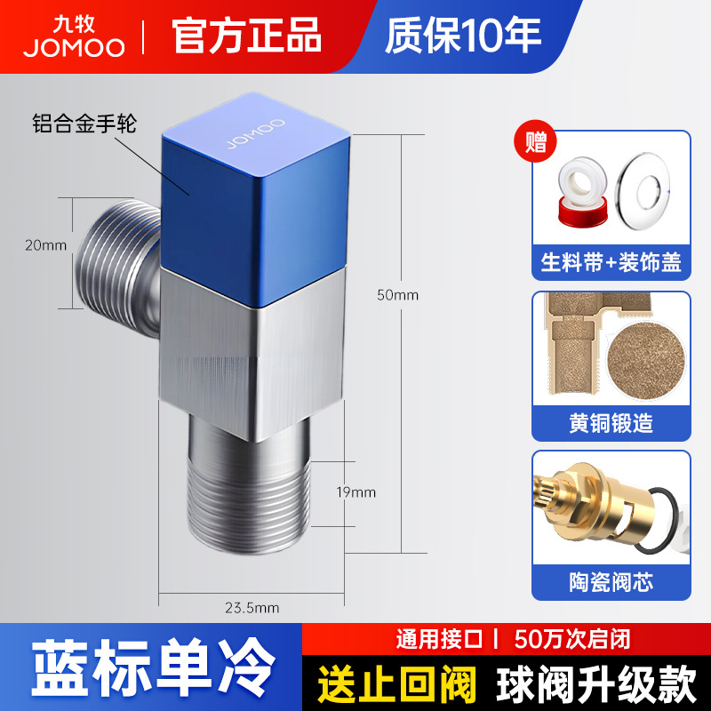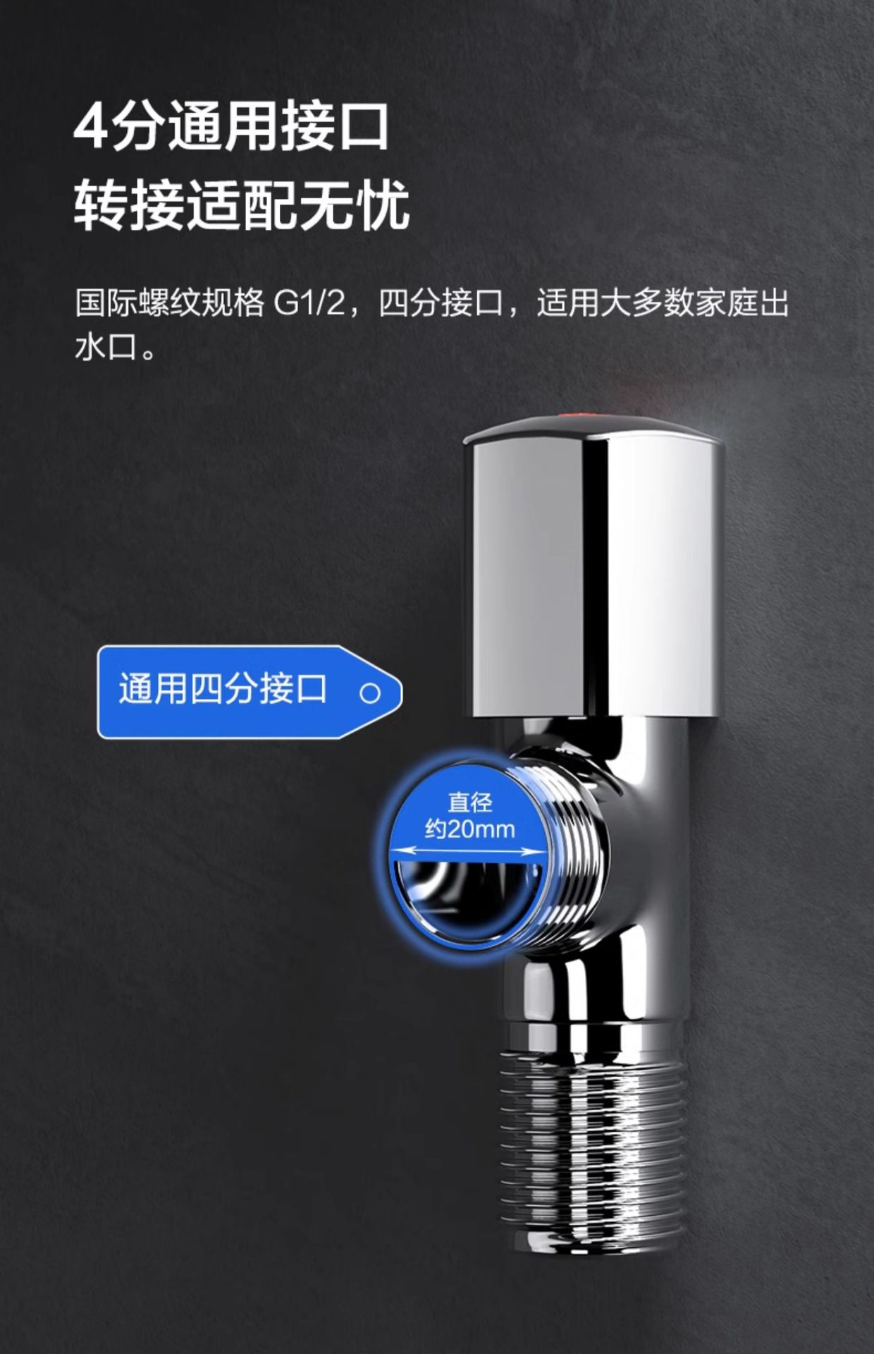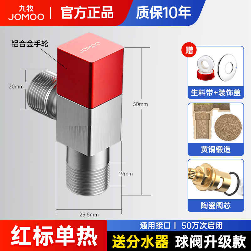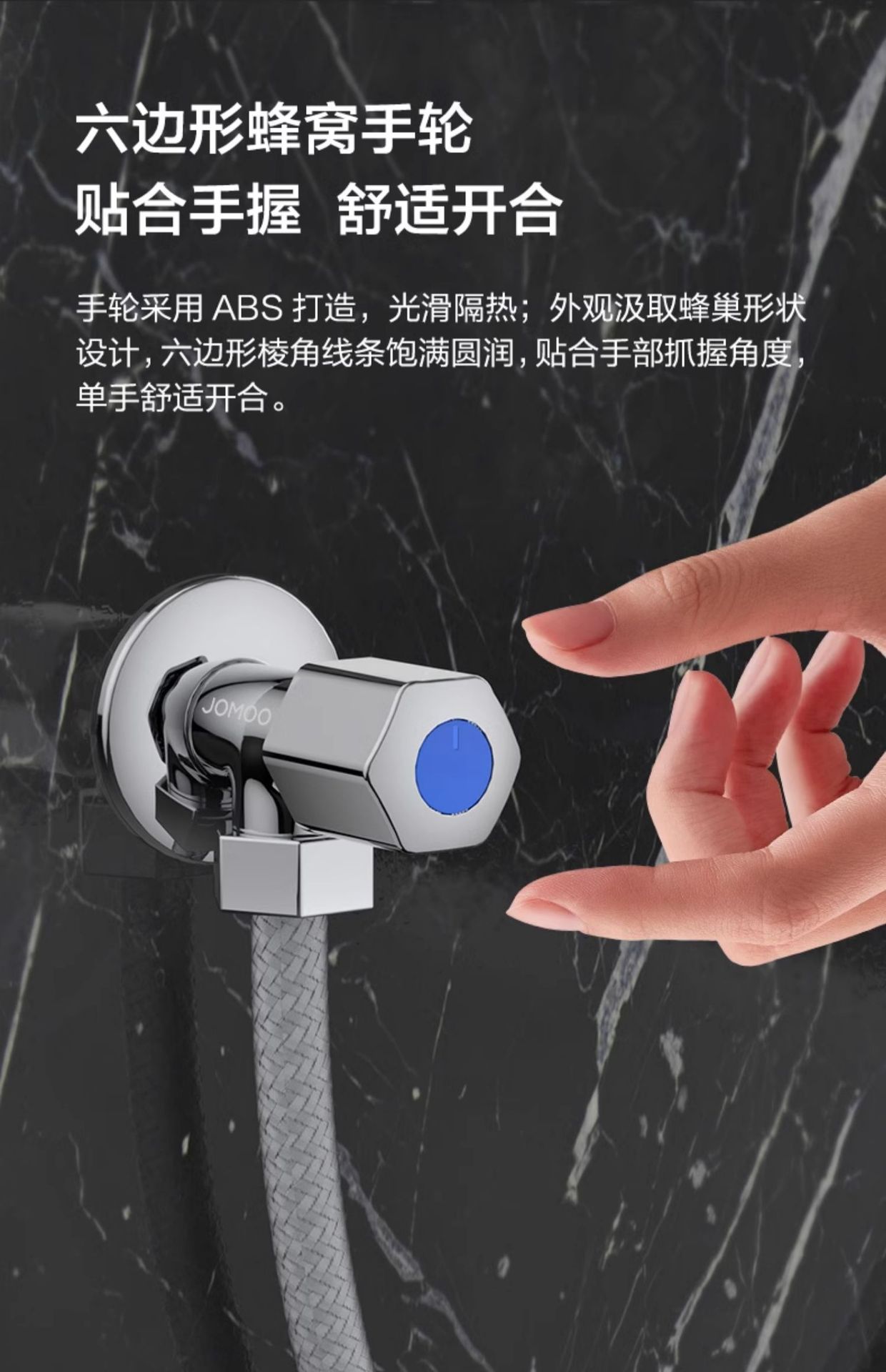 Jiumu 각도 밸브 볼 밸브 하나의 출구 밸브 큰 흐름 모든 구리 4 포인트 연장 화장실 삼각형 밸브 냉간 및 고온 밸브스토어 가기
