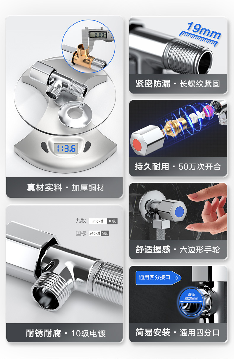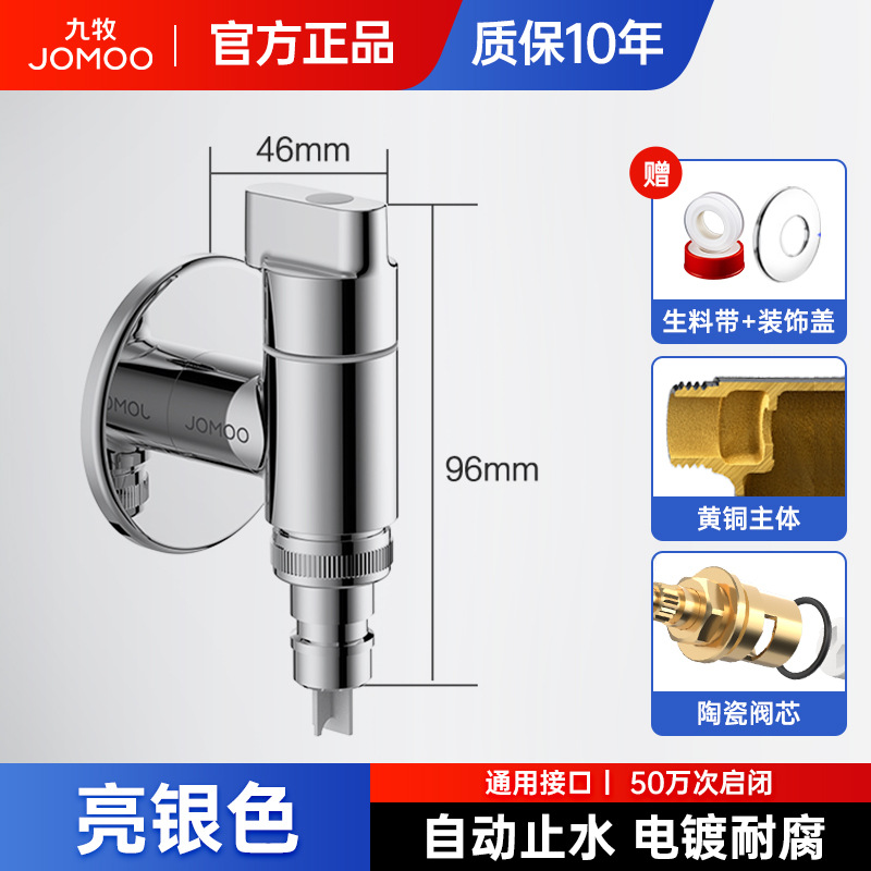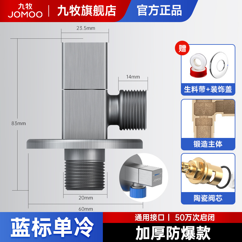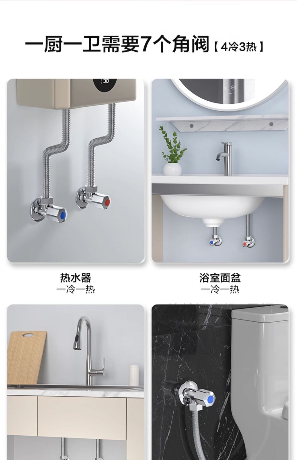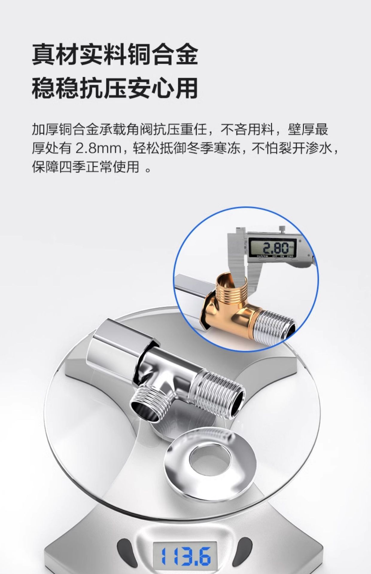 Jiumu 각도 밸브 볼 밸브 하나의 출구 밸브 큰 흐름 모든 구리 4 포인트 연장 화장실 삼각형 밸브 냉간 및 고온 밸브스토어 가기