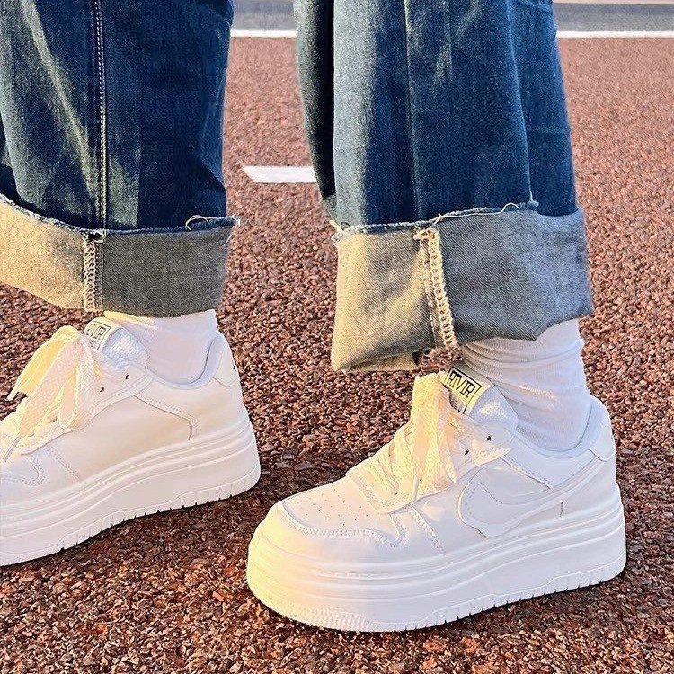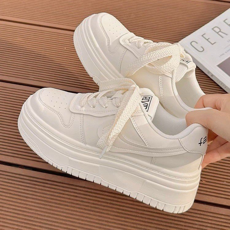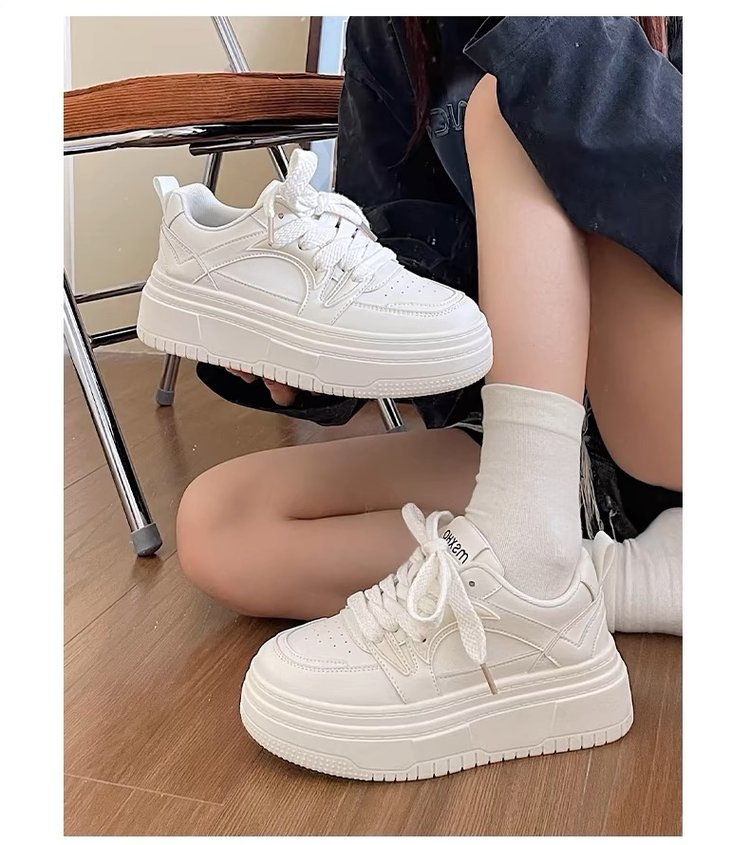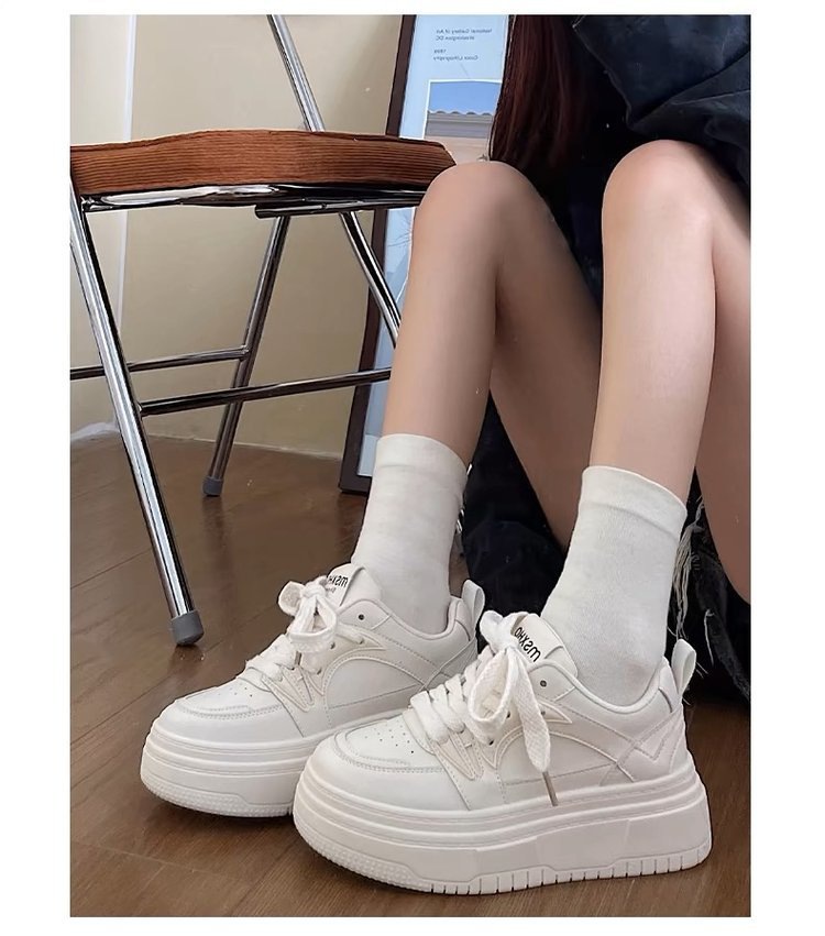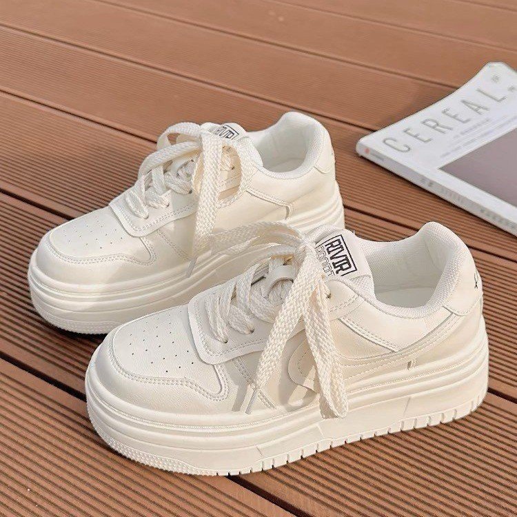 폭발성 두꺼운 밑창 보드 신발 2025 봄 새로운 우유 후푸 올 매치 작은 흰색 신발 그물 인기있는 틈새 오리지널 캐주얼 보드 신발스토어 가기