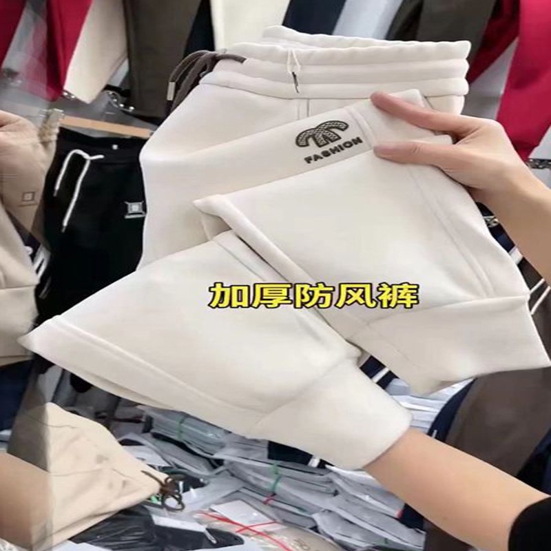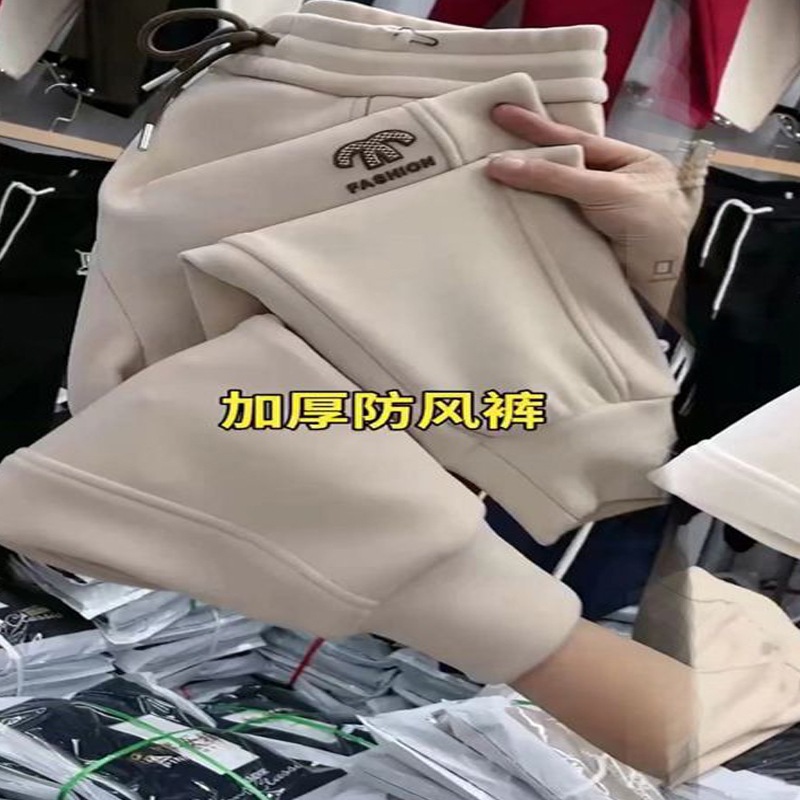 한국 스타일 2024 겨울 새 방풍 바지 올 매치 땀 바지 여자 두꺼운 슬리밍 캐주얼 발목 바지 따뜻한 바지