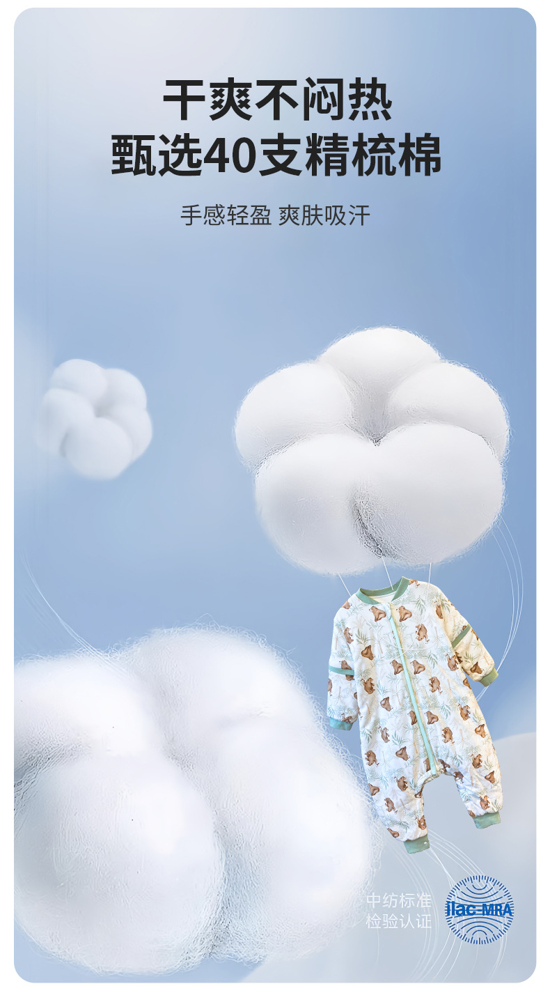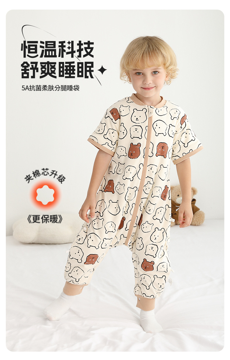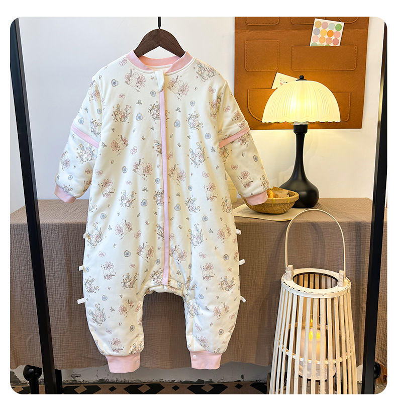 봄, 가을용 항온 아동 침낭, 분리형 다리와 탈부착 가능한 소매, 아기 순면 안티킥 이불, A급 유아용 점프슈트, 편안한 수면을 위한 제품