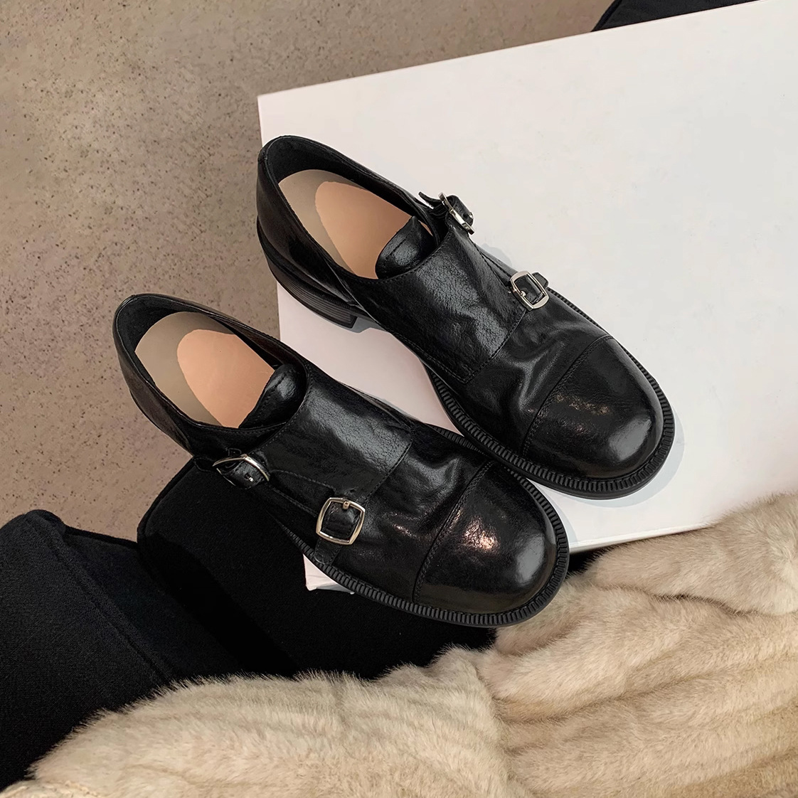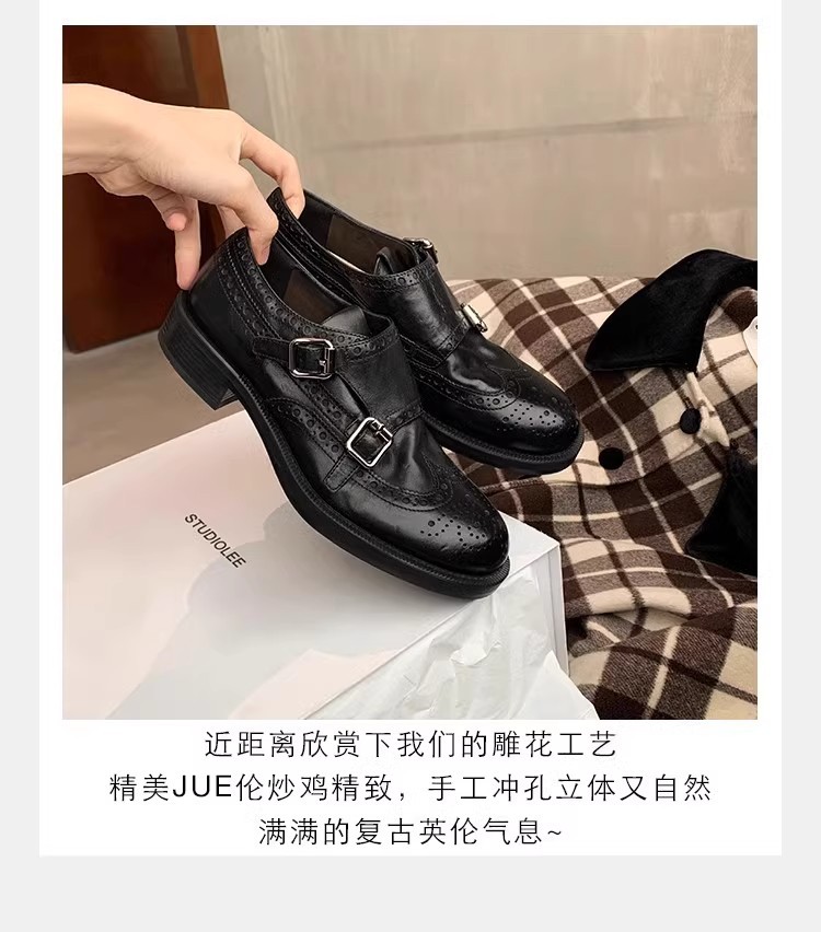 정품 가죽 후이저우 여성화 영국 스타일 단화 여성용 2025 가을 겨울 신상 가죽 신발 부드러운 밑창 로퍼 작은 가죽 신발스토어 가기