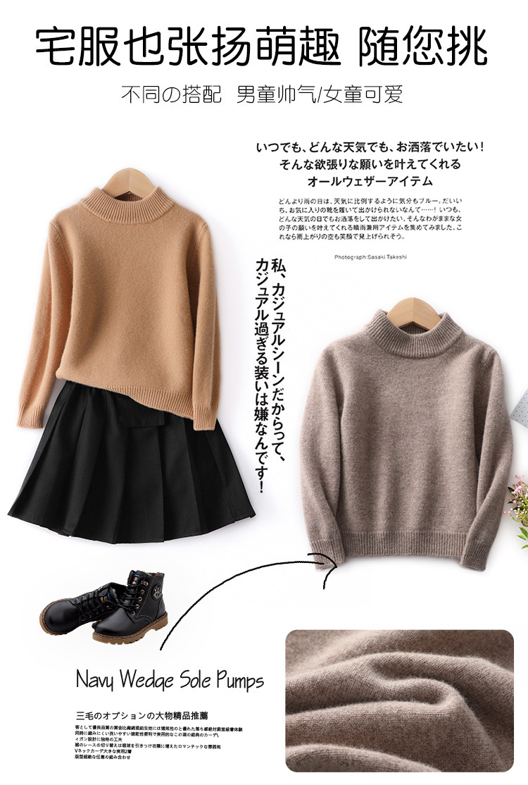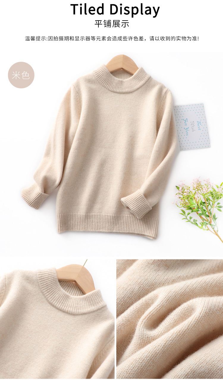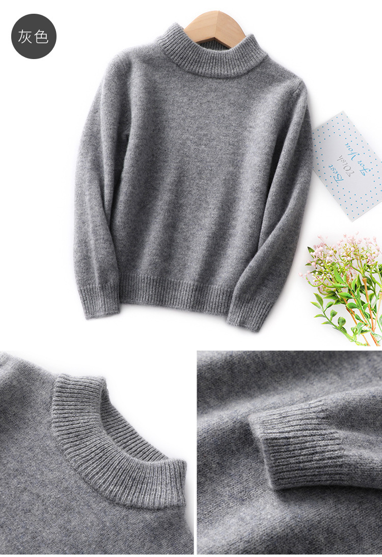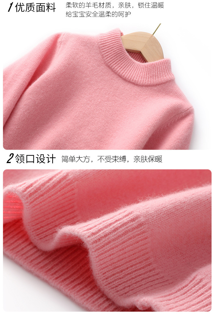 100%纯羊衫中大童圆领加厚针织毛衣打底内搭短款修羊绒毛衫男女童