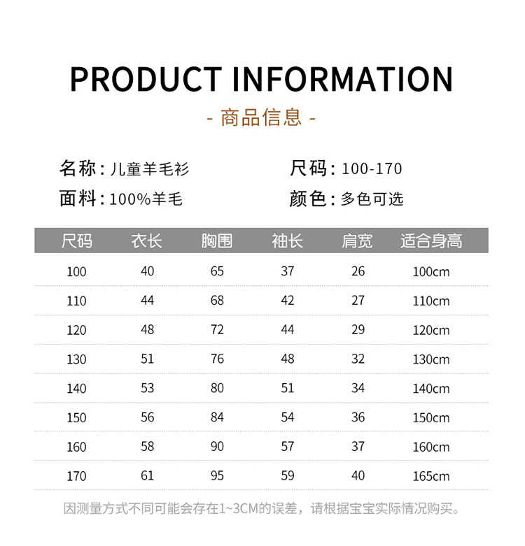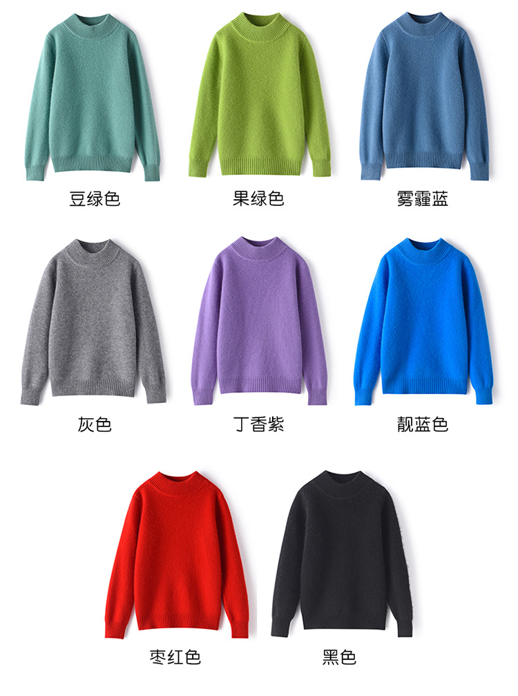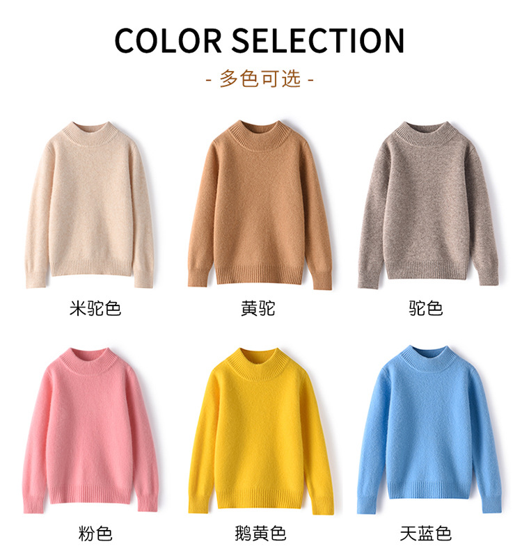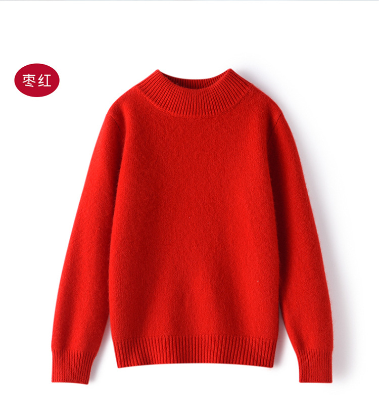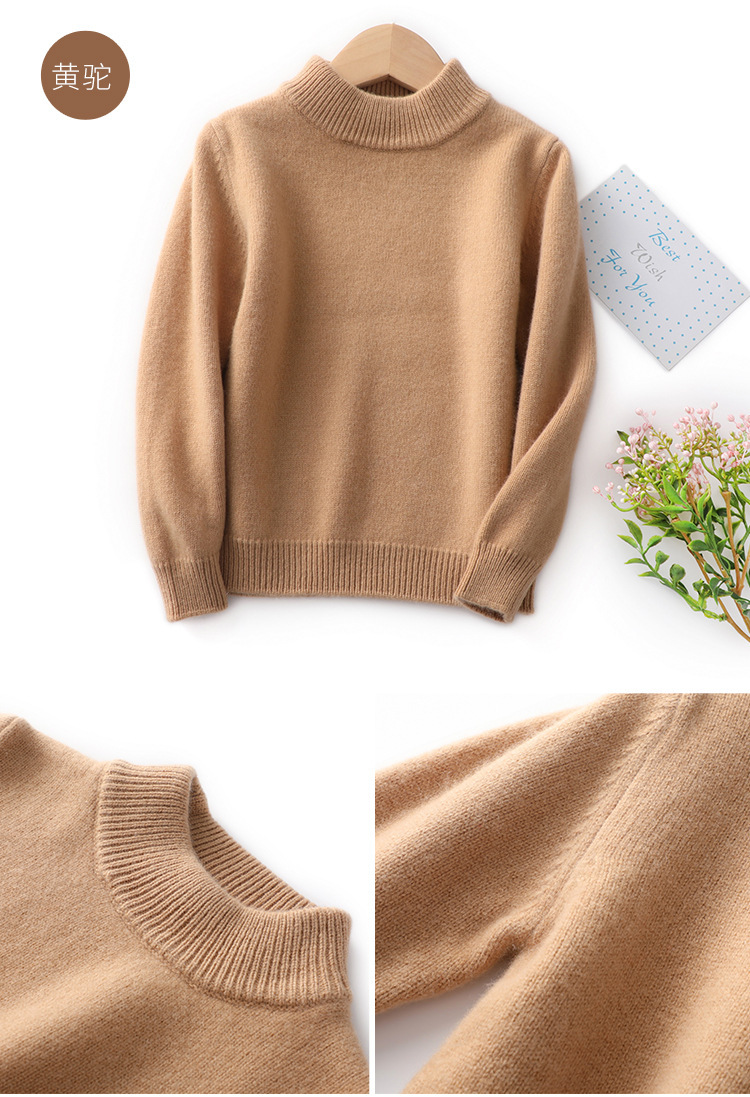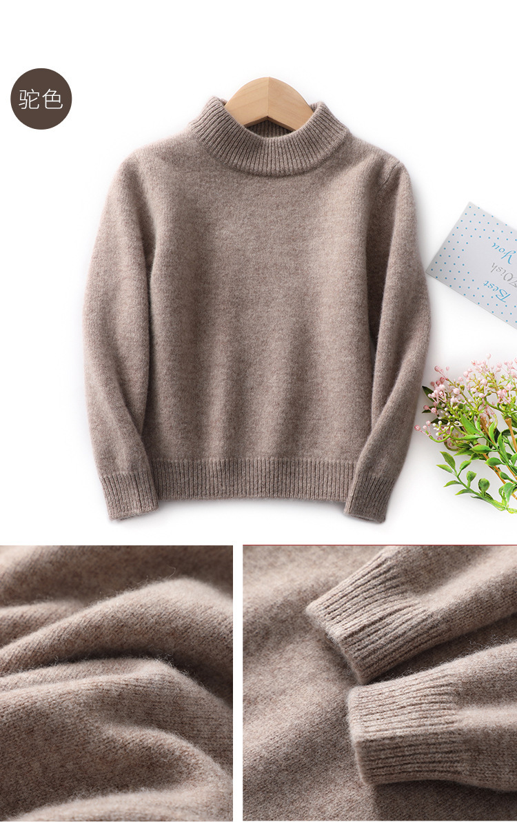100%纯羊衫中大童圆领加厚针织毛衣打底内搭短款修羊绒毛衫男女童