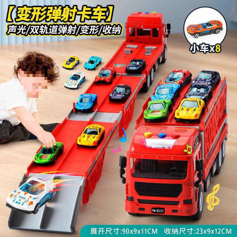 변형 레일 자동차 장난감 접이식 트랙 저장 합금 배출 자동차 어린이 컨테이너 운송 트럭 소년