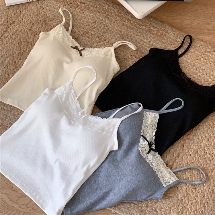 순수한 욕망 스파이스 소녀 아름다운 스트랩 가슴 패드 카미솔 여성의 봄과 여름 외부 착용 레이스베이스 셔츠 내부 탑스토어 가기