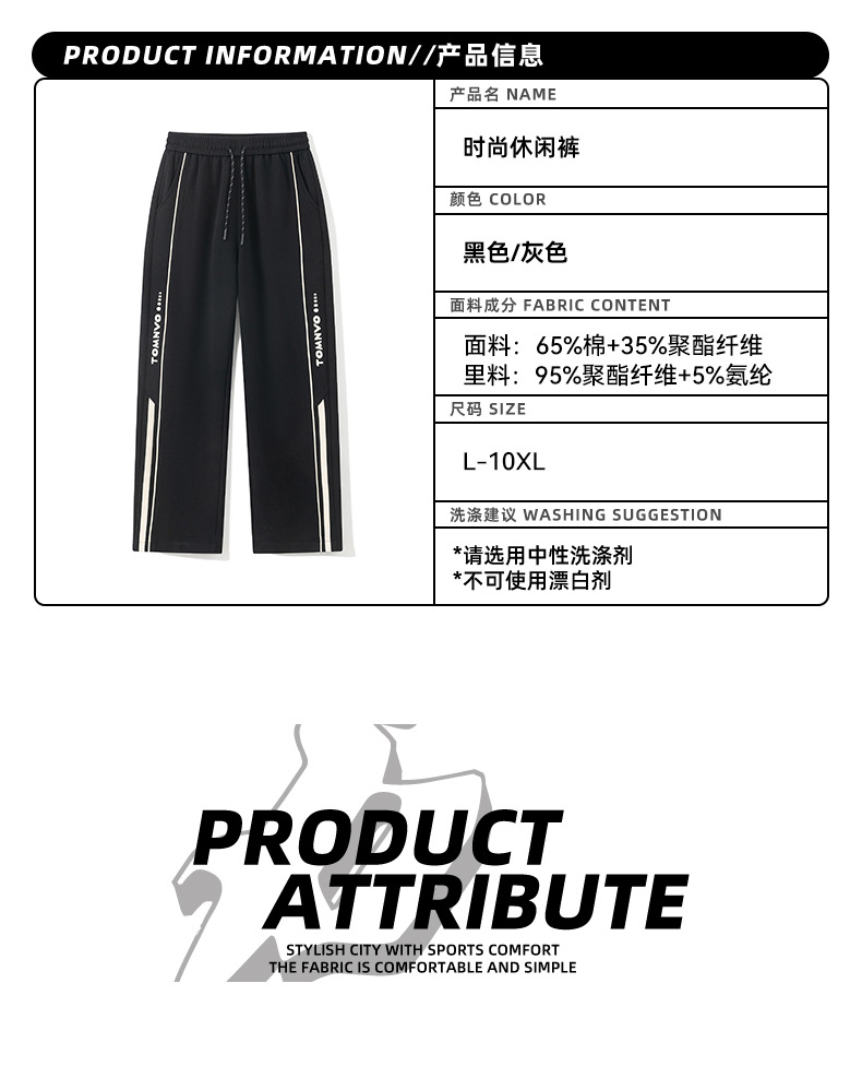 2025 봄과 가을 유행 브랜드 캐주얼 스포츠 바지 남자 뚱뚱한 남자 느슨한 플러스 사이즈 플러스 사이즈 스트레이트 바지 젊은 사람들의 펜던트 바지