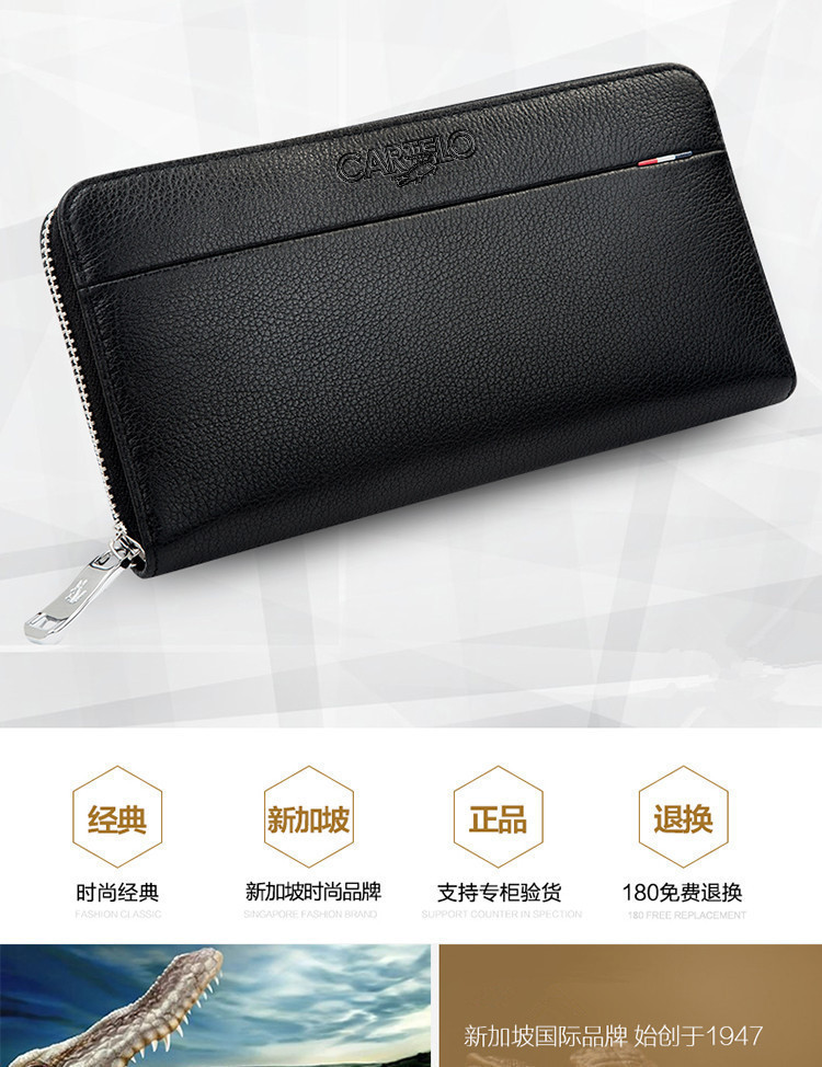 까르띠에 악어 남자 지갑 탑 레이어 Cowhide 긴 지퍼 핸드백 지갑 클러치 청소년 지갑 남성 가방스토어 가기