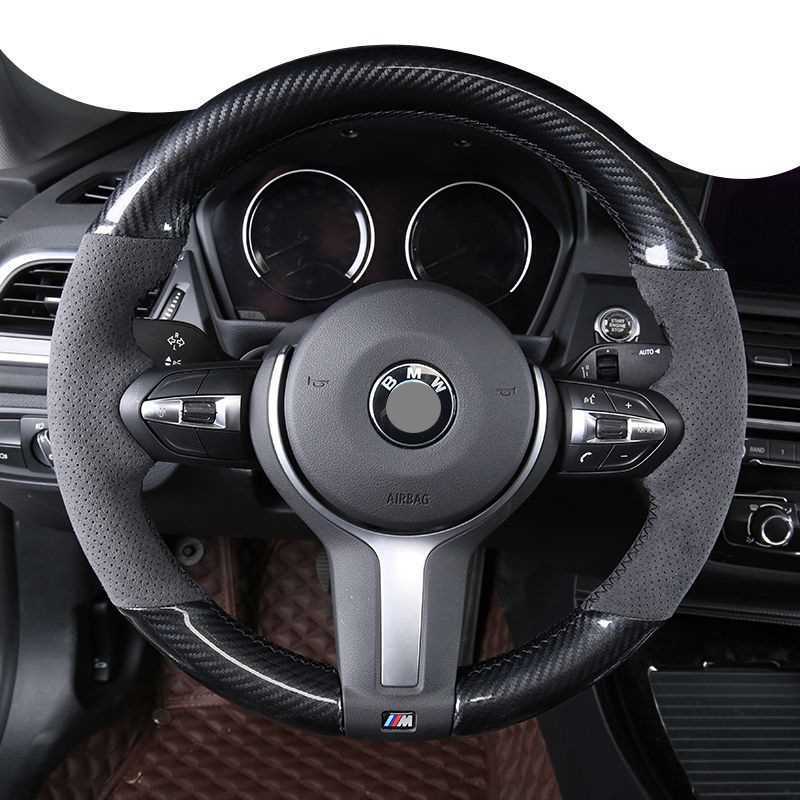 BMW 11 12 13 오래된 3 시리즈 X1X3X5 탄소 섬유 가죽 특수 스웨이드 손으로 수 놓은 스티어링 휠 커버