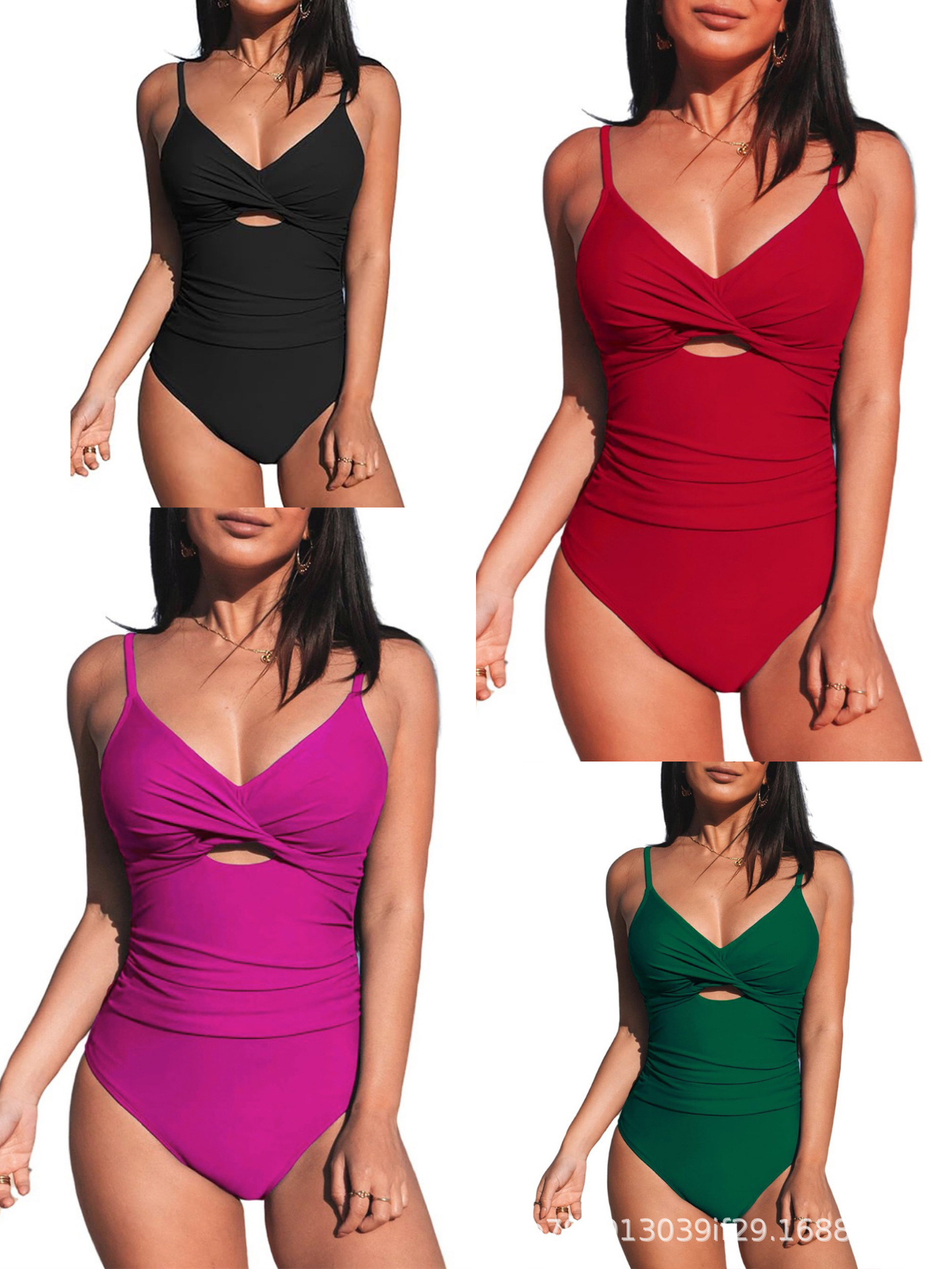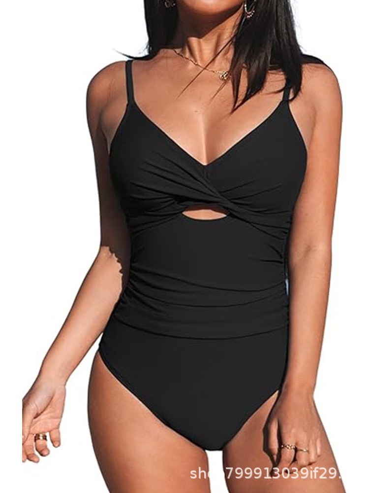 2025 유럽과 미국의 폭발 수영복 솔리드 컬러 여성용 할로우 섹시 비키니 슬림 대외 무역 수영복 여성스토어 가기