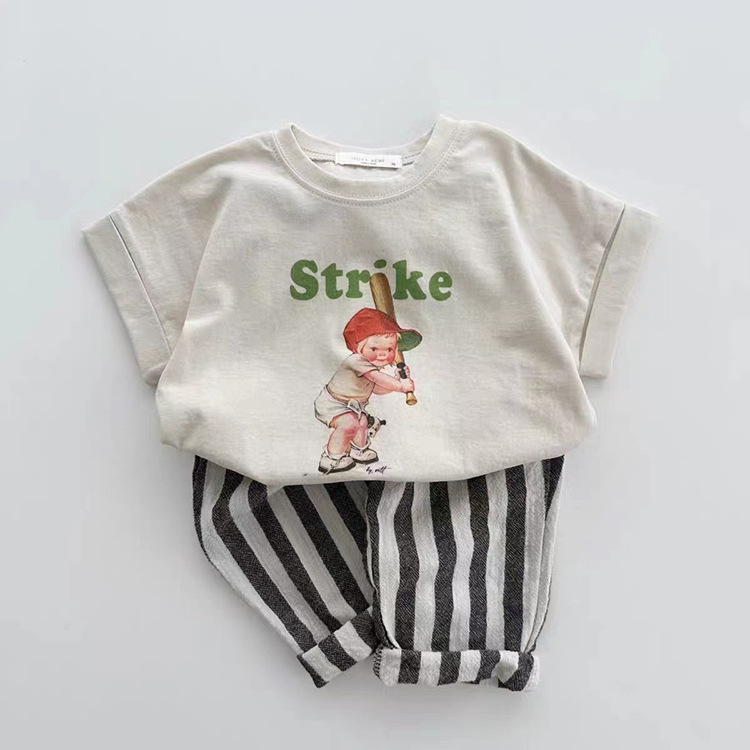2025 년 여름 새 남녀 아기 줄무늬 테더 캐주얼 바지 한국 어린이 여름 얇은 긴 바지스토어 가기