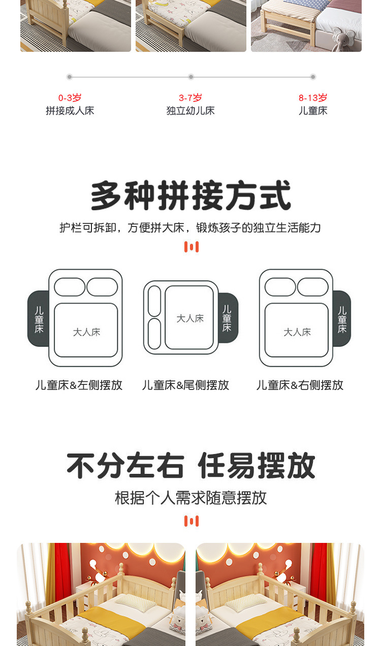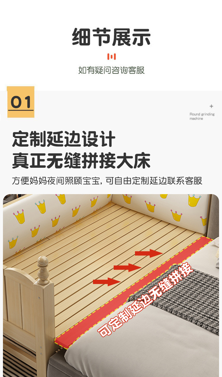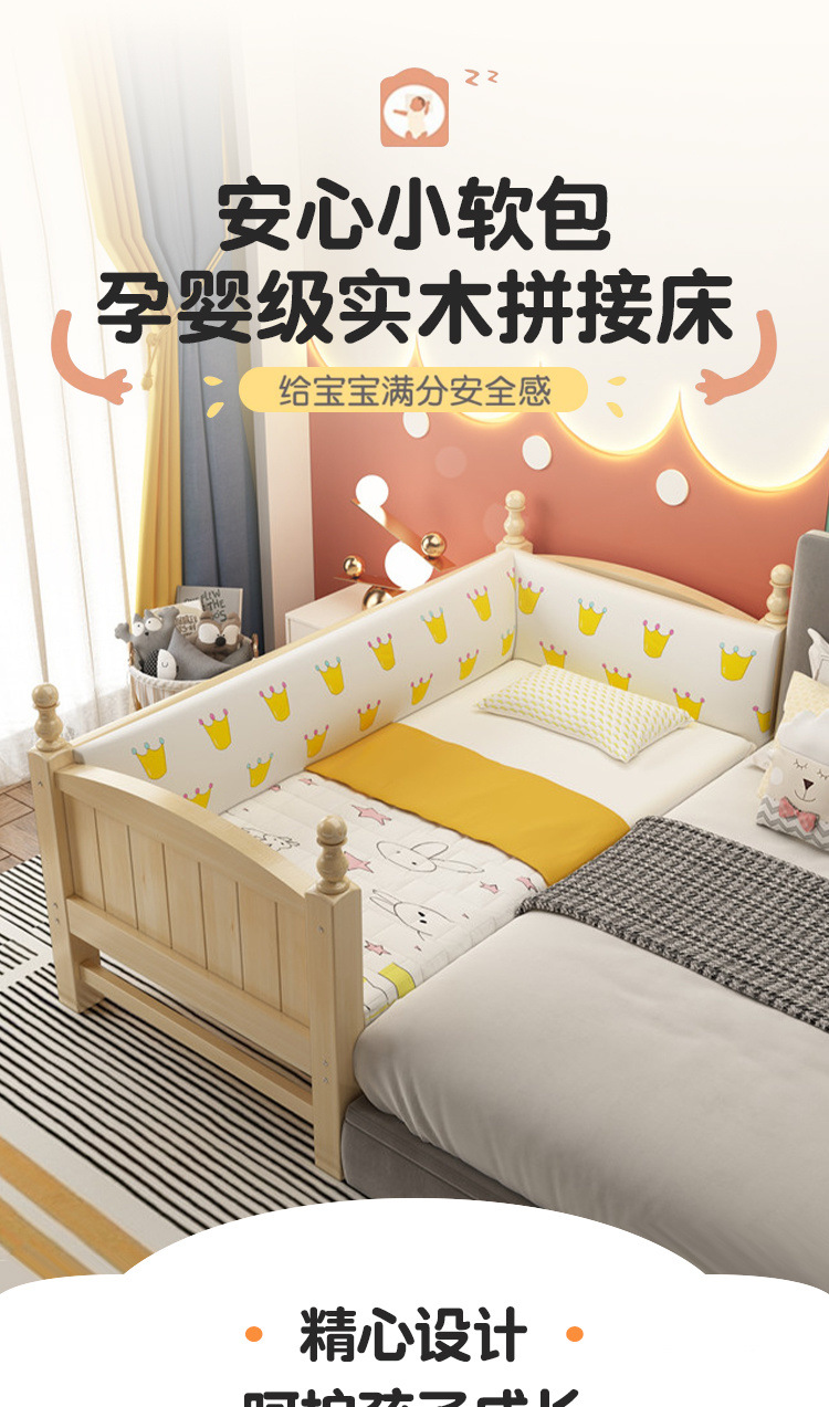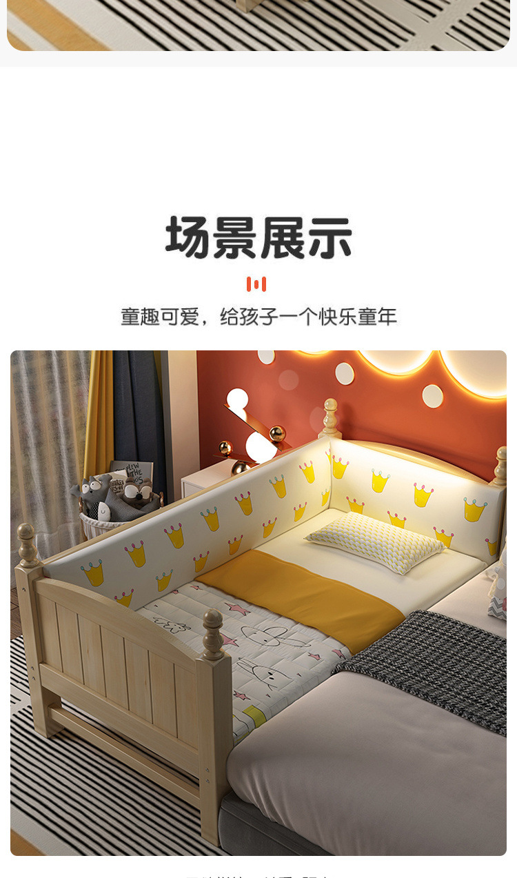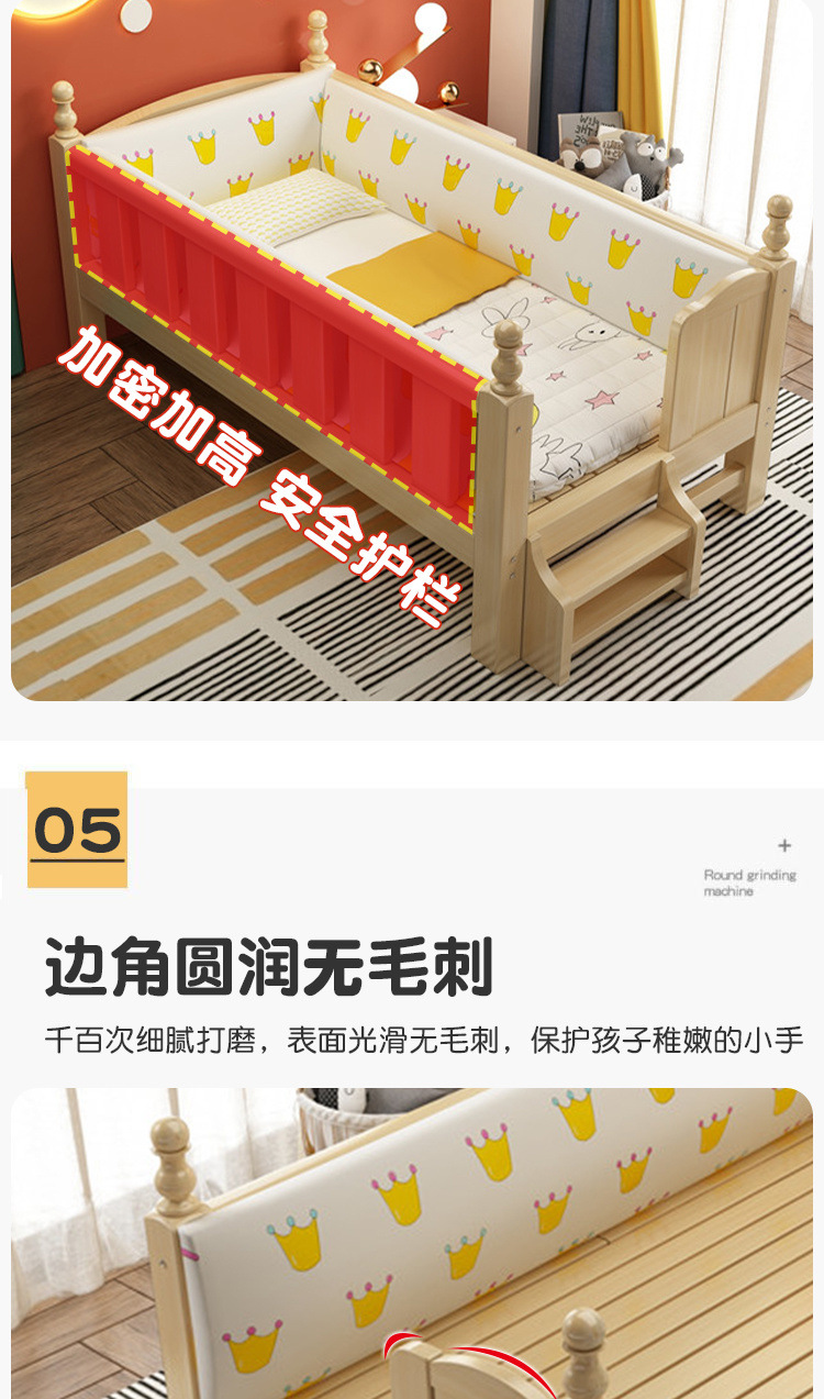 어린이 접합 넓은 침대 단단한 나무 아기 싱글 침대 울타리 침대 옆 아기 소년 소녀 접합 큰 침대 도매스토어 가기