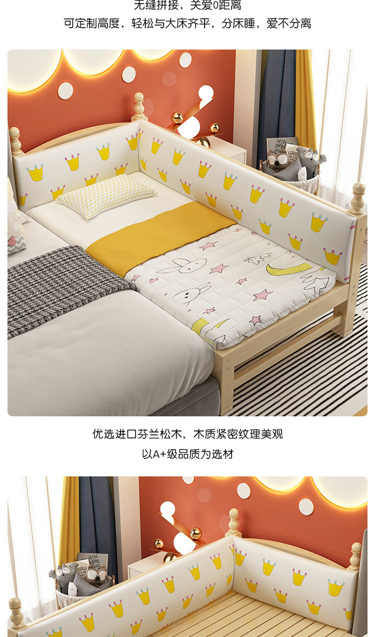 어린이 접합 넓은 침대 단단한 나무 아기 싱글 침대 울타리 침대 옆 아기 소년 소녀 접합 큰 침대 도매