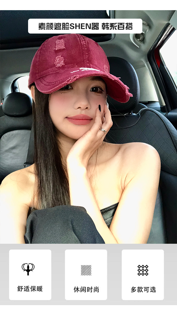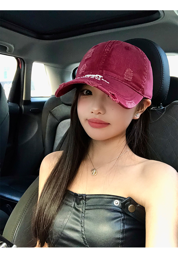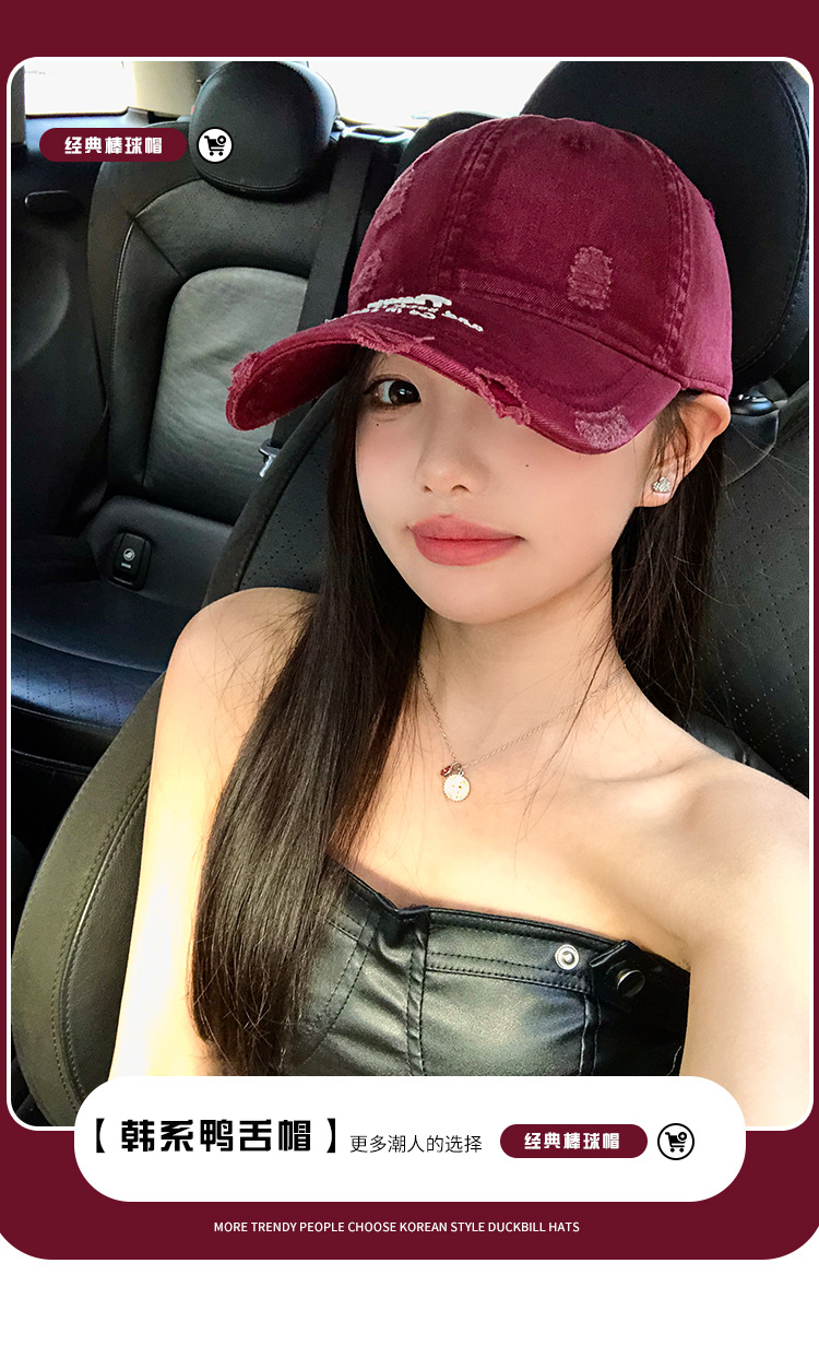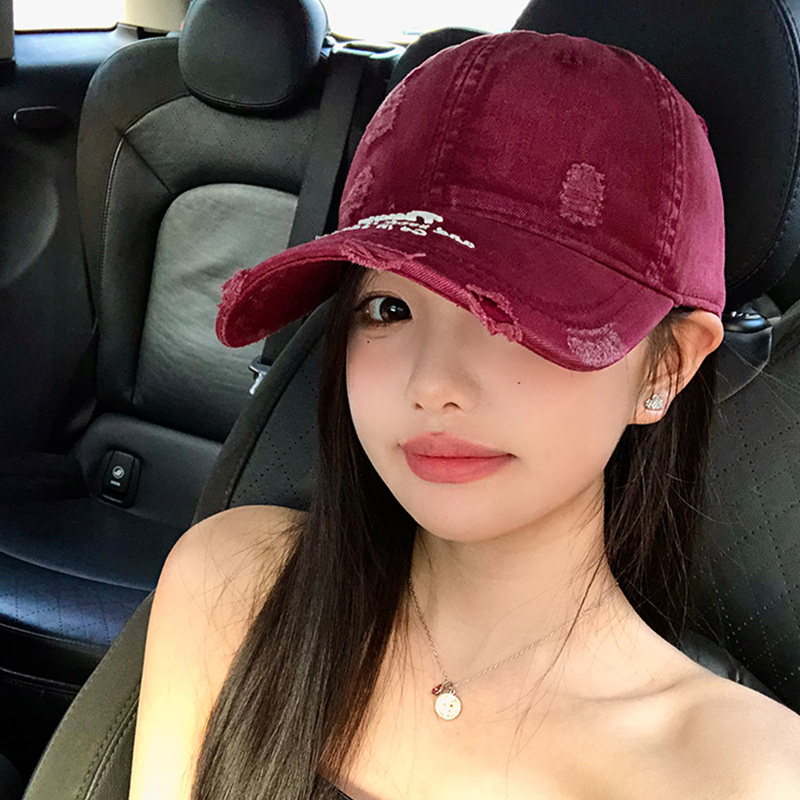 미국 빈티지 버건디 야구 모자 여자 2025 새로운 캐주얼 편지 자수 모자 작은 와이드 브림스토어 가기