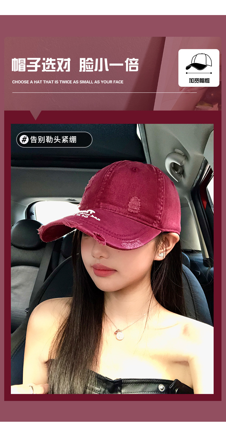 미국 빈티지 버건디 야구 모자 여자 2025 새로운 캐주얼 편지 자수 모자 작은 와이드 브림