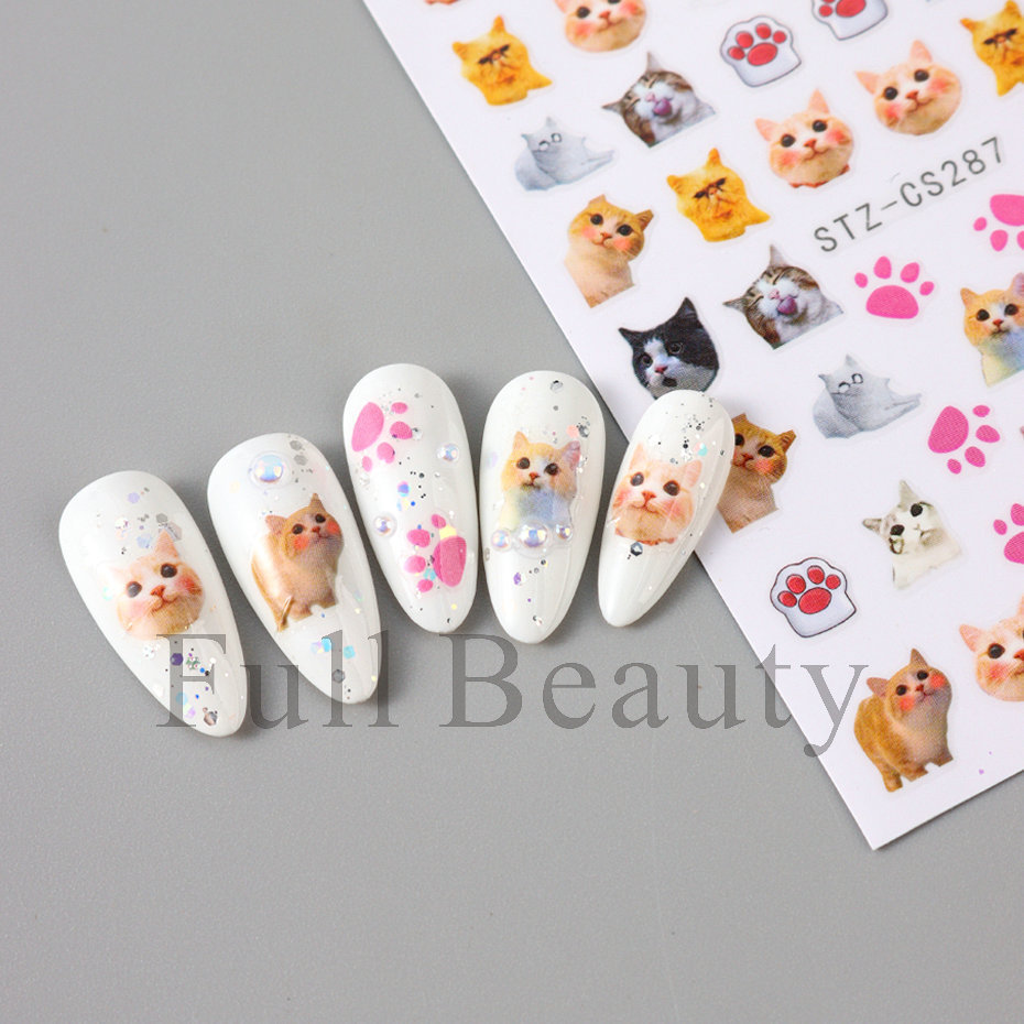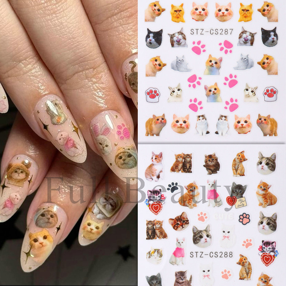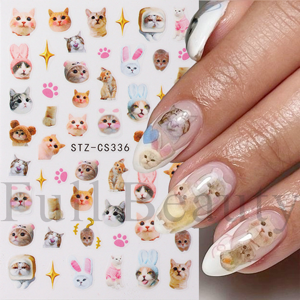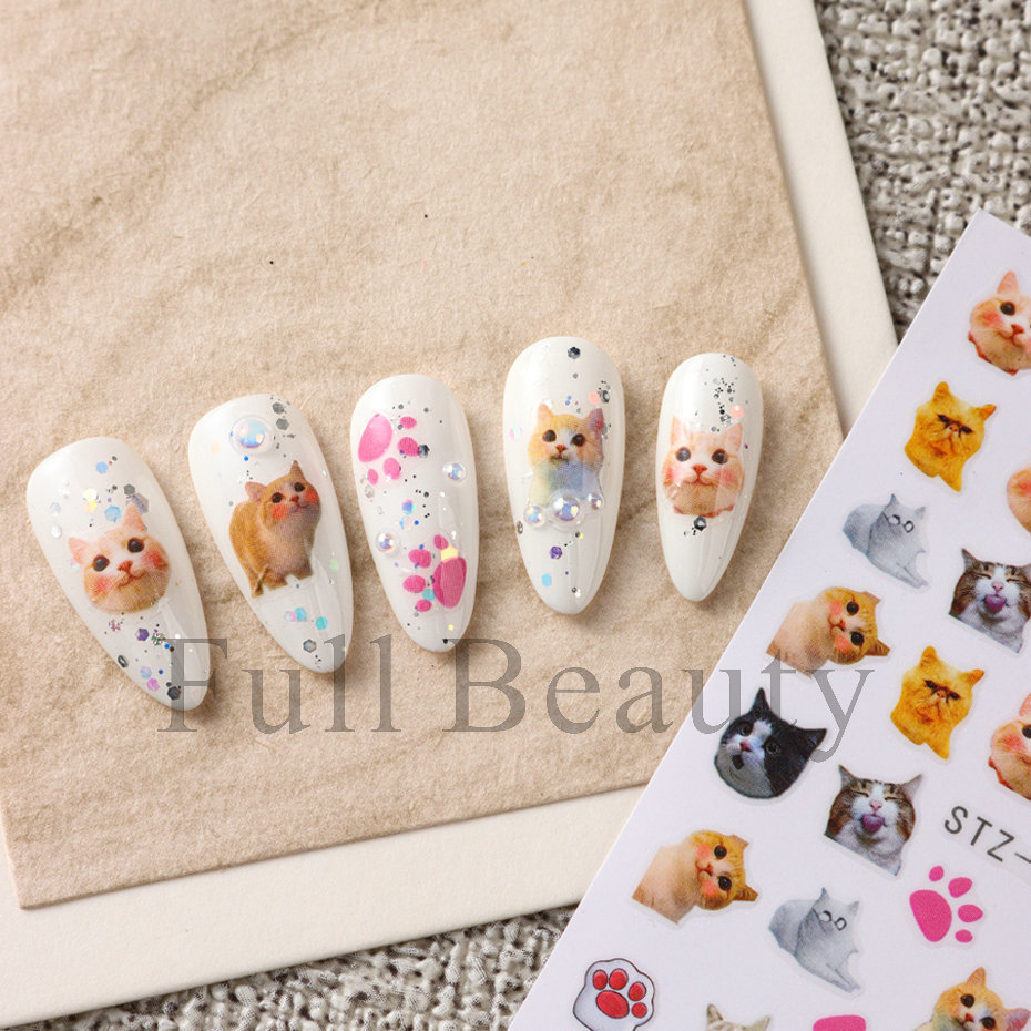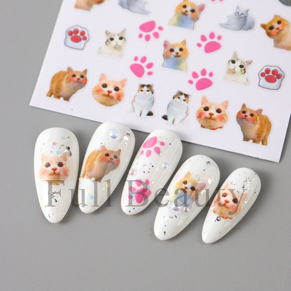 국경 간 새로운 네일 아트 스티커 Ins 만화 귀여운 애완 동물 고양이 고양이 표현 고양이 발톱 다시 접착제 네일 스티커스토어 가기