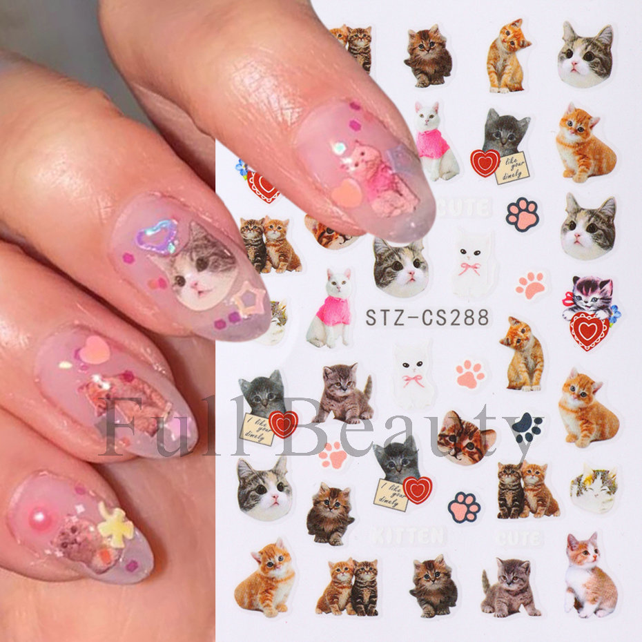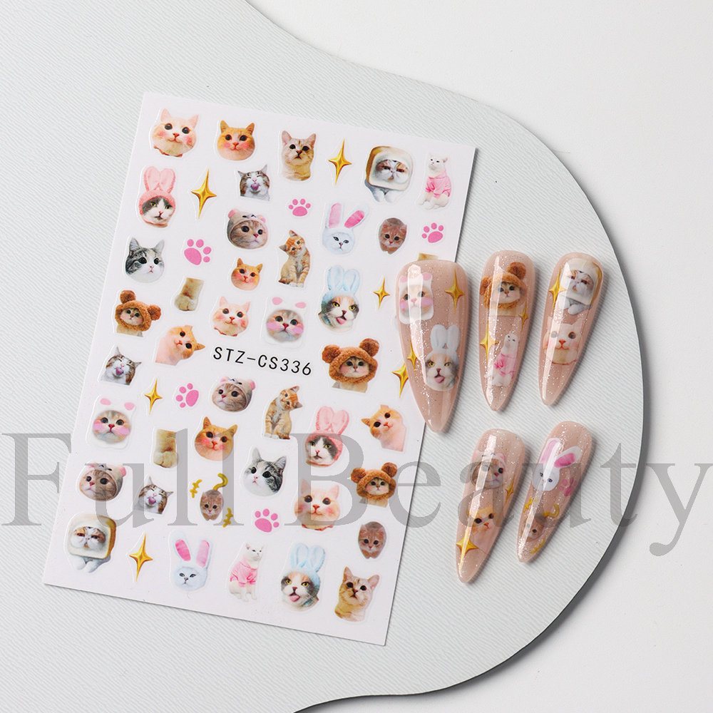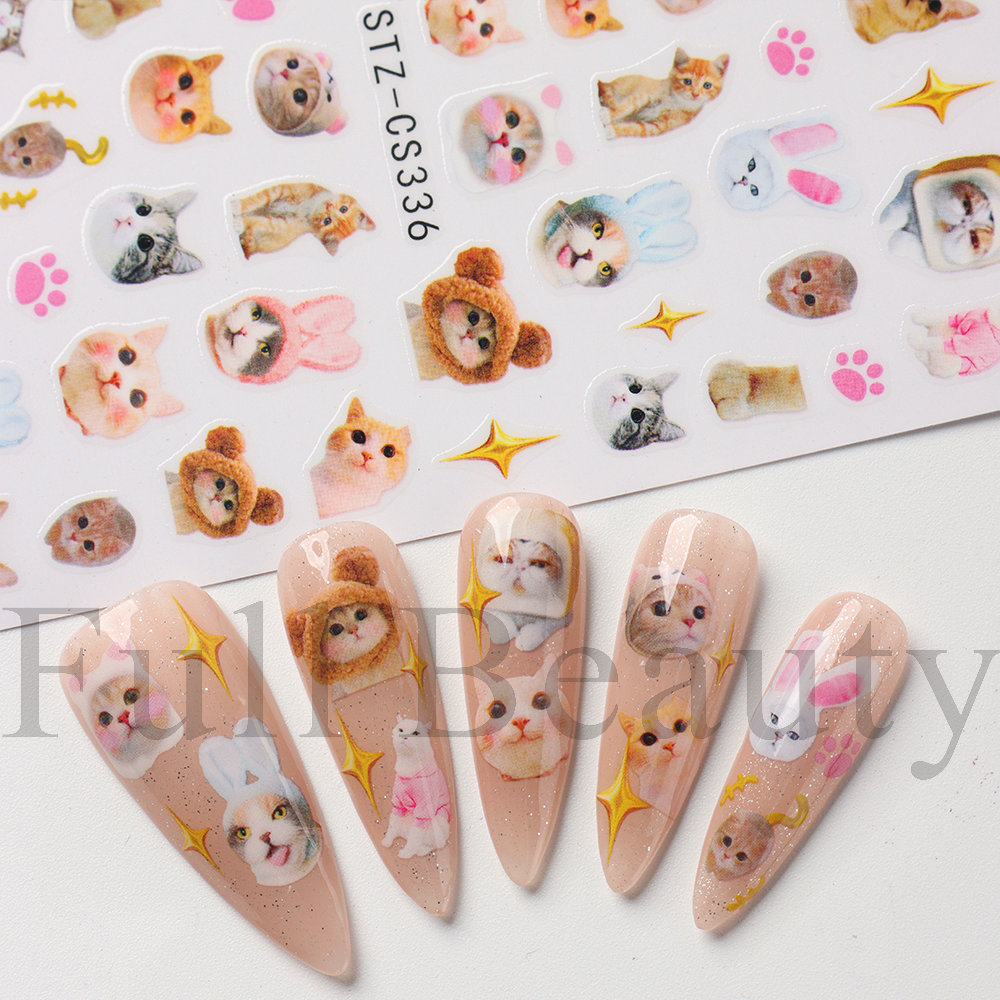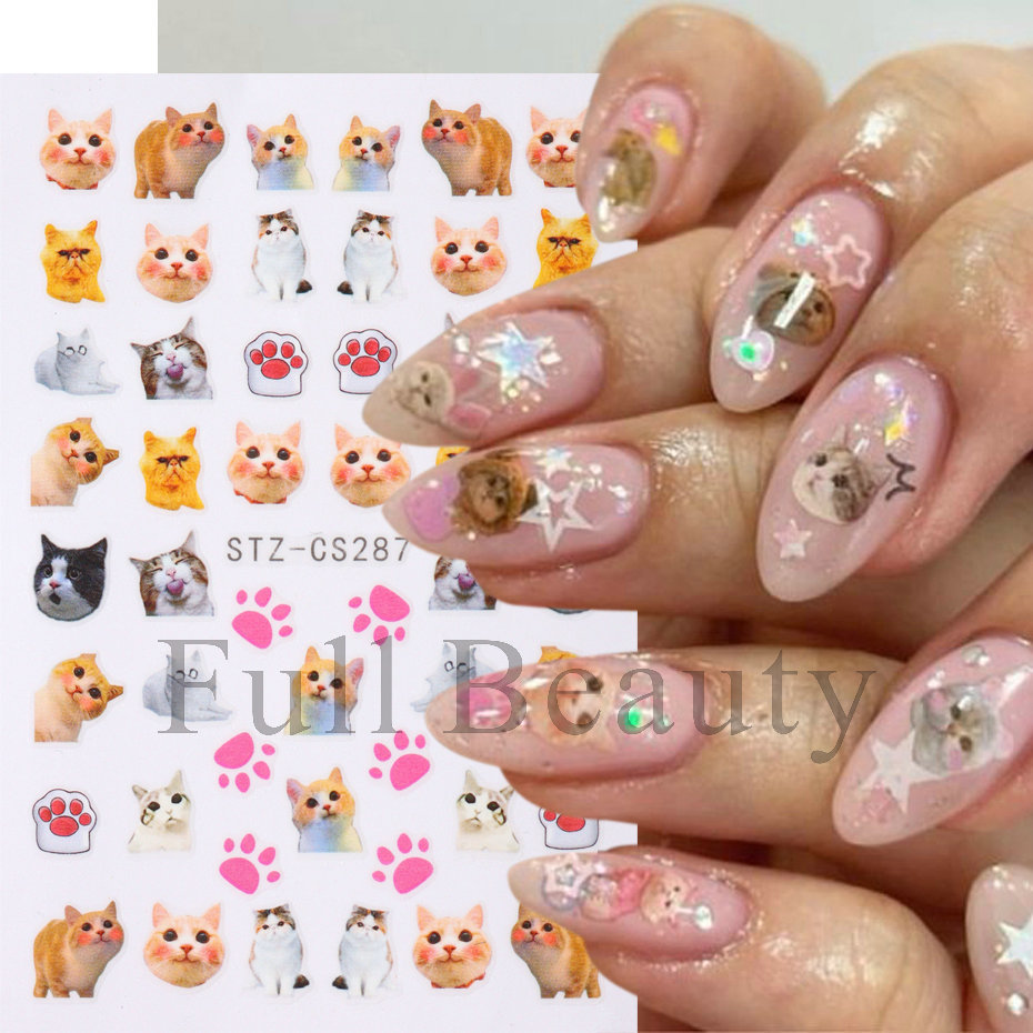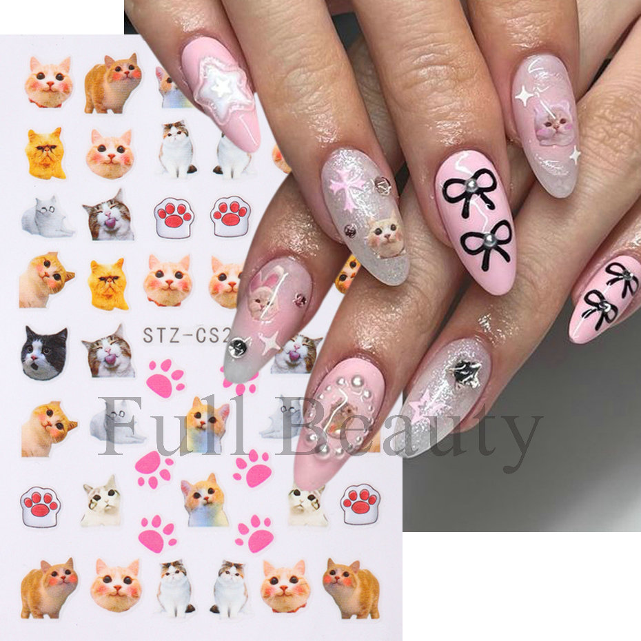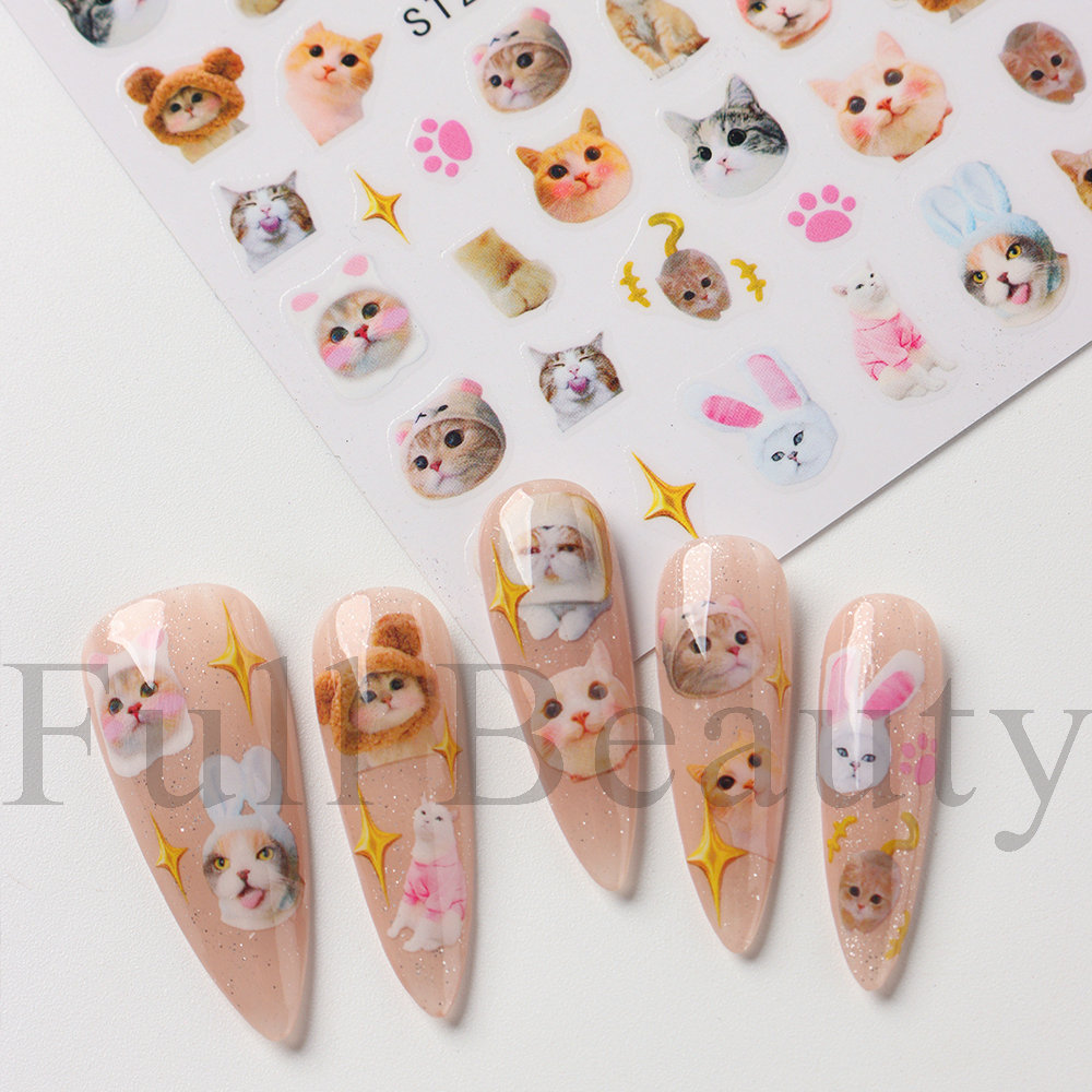 국경 간 새로운 네일 아트 스티커 Ins 만화 귀여운 애완 동물 고양이 고양이 표현 고양이 발톱 다시 접착제 네일 스티커스토어 가기