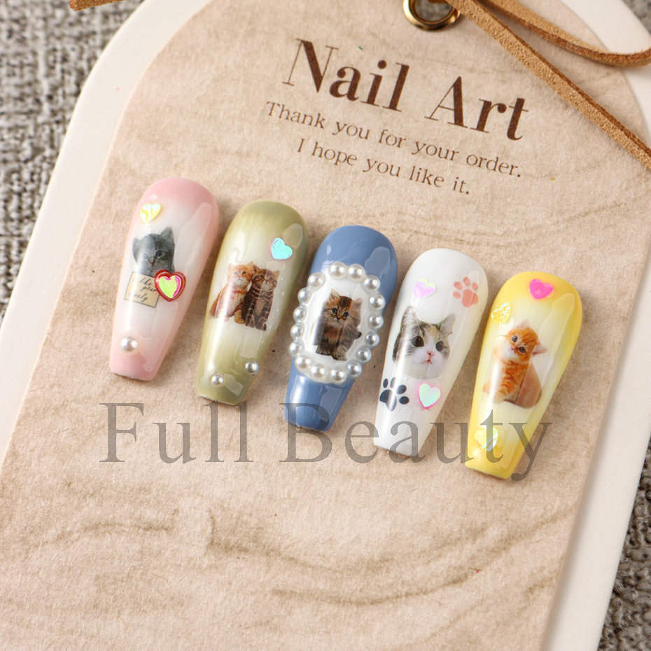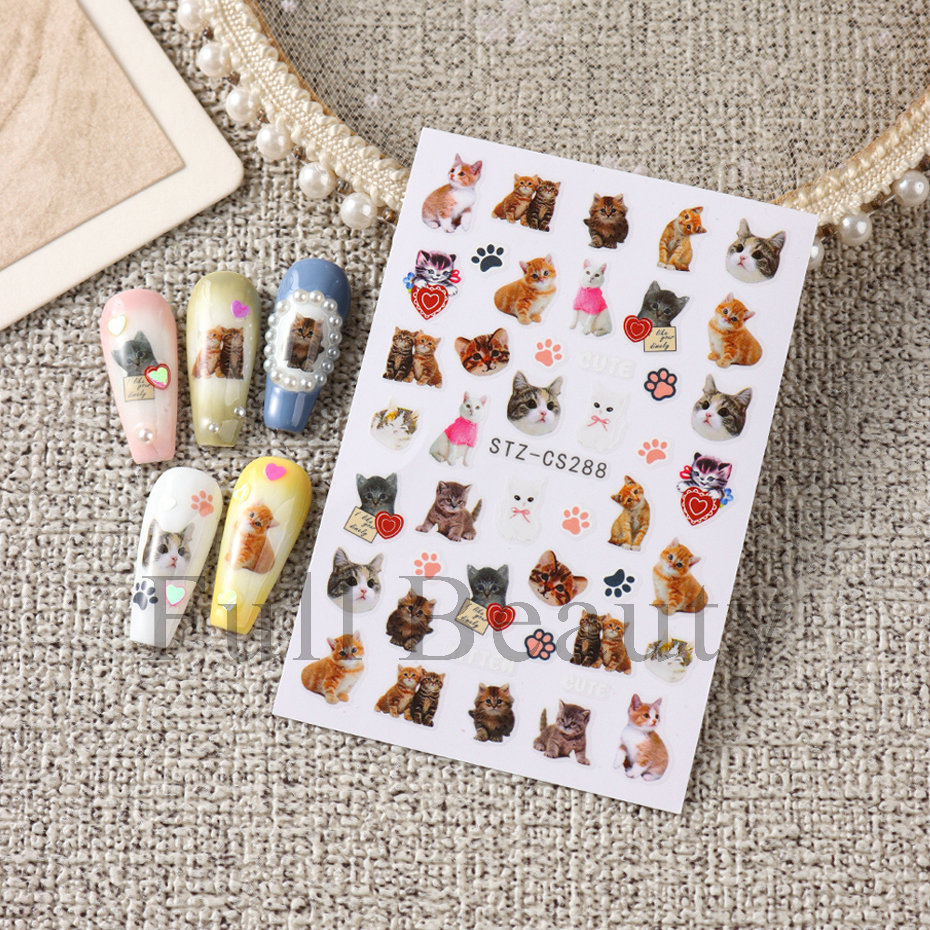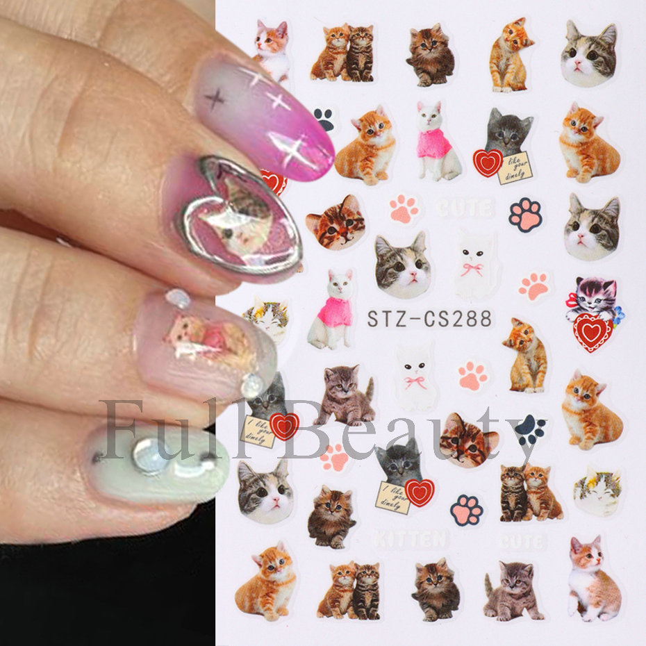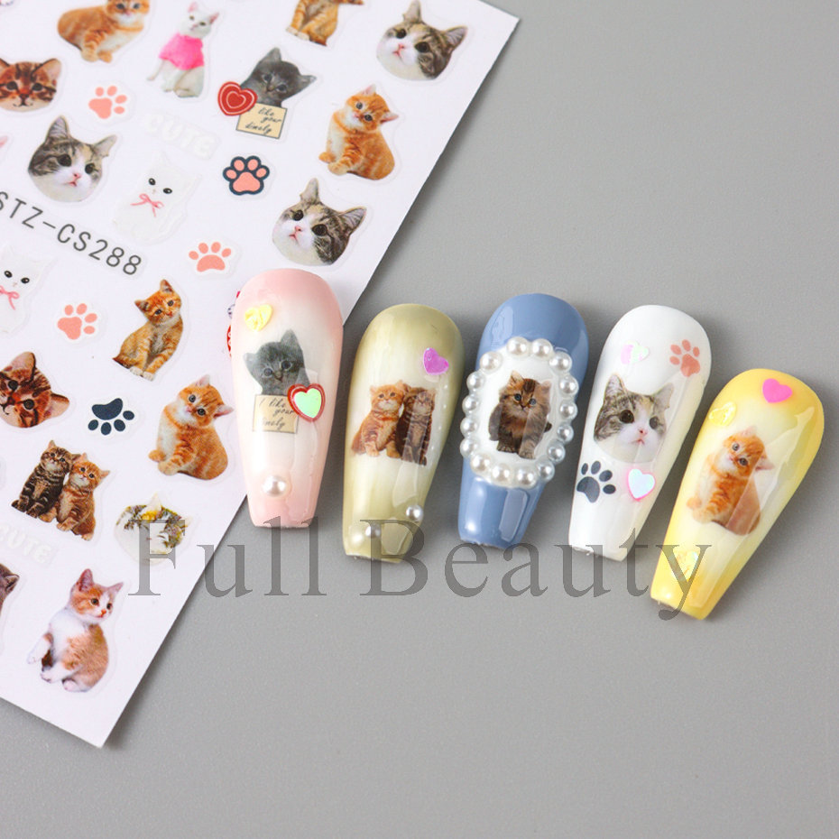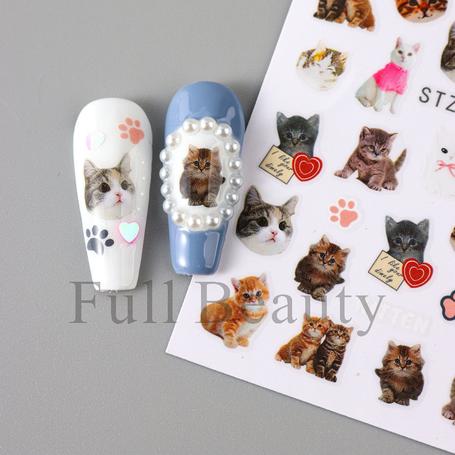 국경 간 새로운 네일 아트 스티커 Ins 만화 귀여운 애완 동물 고양이 고양이 표현 고양이 발톱 다시 접착제 네일 스티커스토어 가기