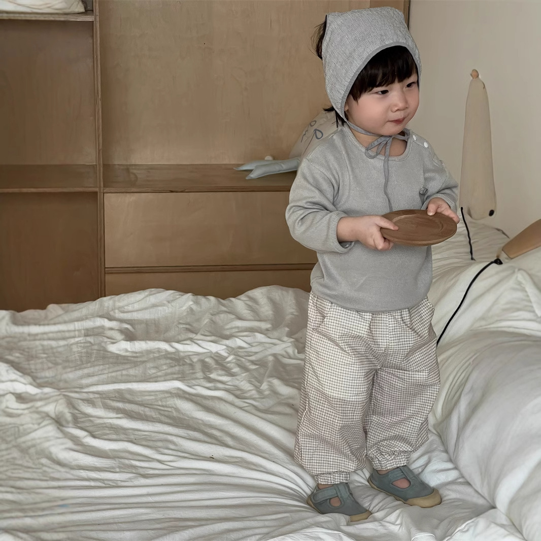 아동용 하의 셔츠와 체크무늬 바지 투피스 세트 2025 가을 한국식 아동복 남아 가을옷 아기 가을옷스토어 가기