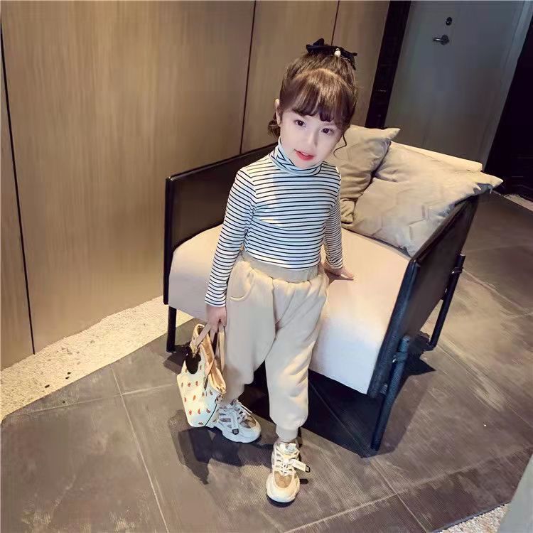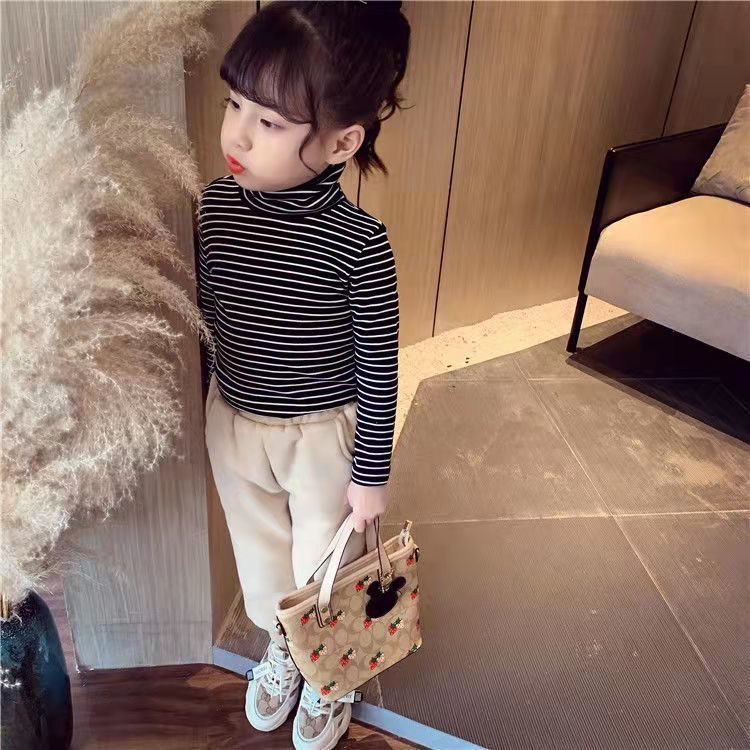 소녀 양면 양면 양면 줄무늬베이스 셔츠 가을과 겨울 높은 칼라 두꺼운 중형 및 대형 어린이 착용 티셔츠 어린이 따뜻한 탑스토어 가기