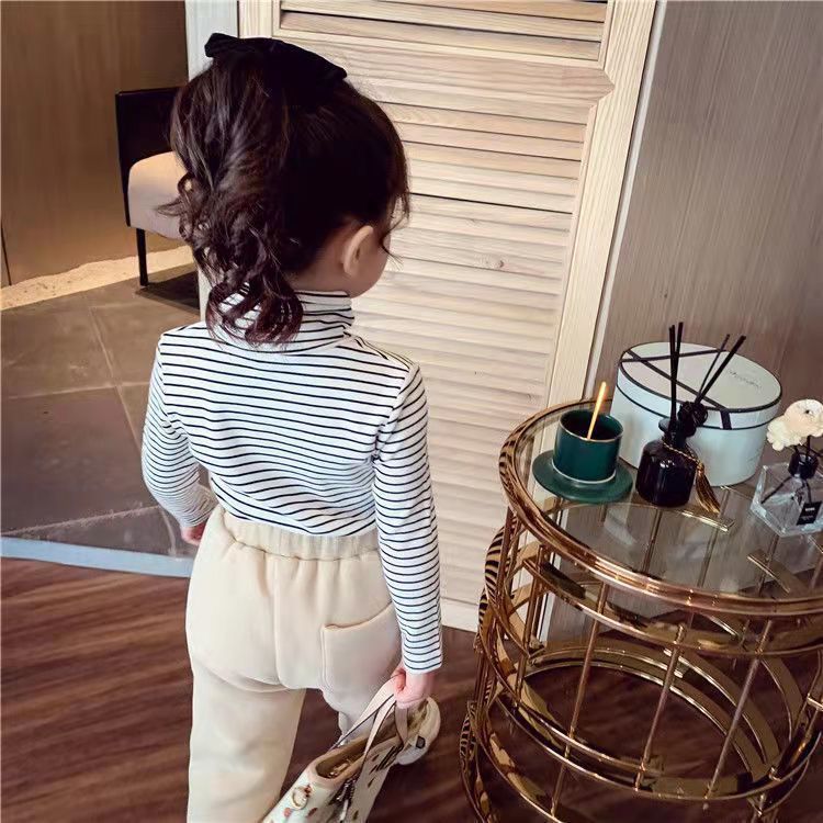소녀 양면 양면 양면 줄무늬베이스 셔츠 가을과 겨울 높은 칼라 두꺼운 중형 및 대형 어린이 착용 티셔츠 어린이 따뜻한 탑