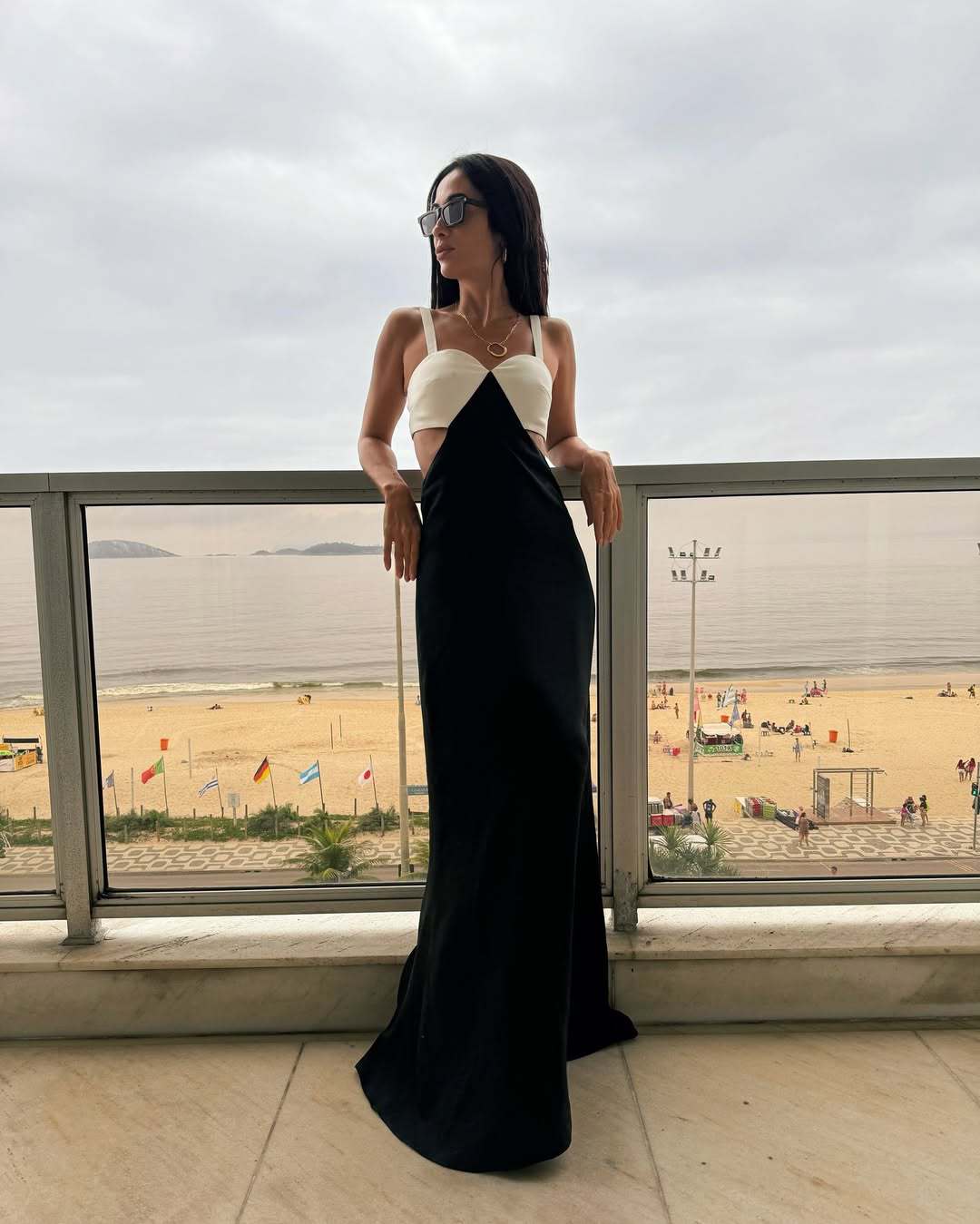 흑백 대비 컬러 슬링 프로필 백리스 롱 원피스 국경 간 패션 빈 허리 섹시한 원피스스토어 가기