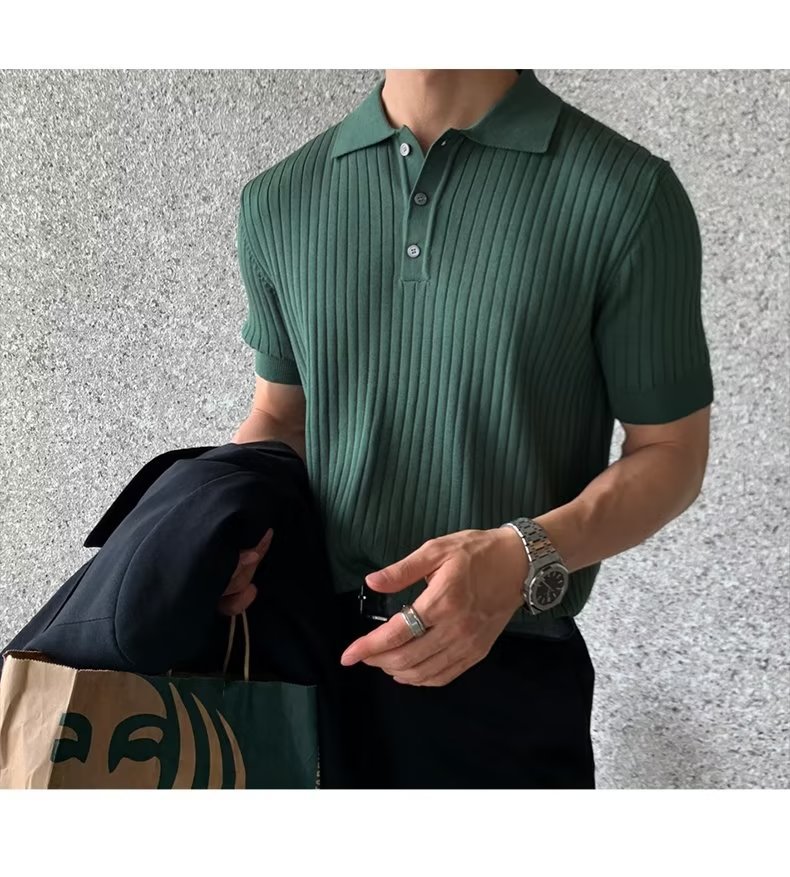 비즈니스 라이트 성숙한 스타일 남성 POLO 짧은 소매 여름 새로운 옷깃 버튼 슬림 핏 스웨터 크로스 국경 대외 무역 도매