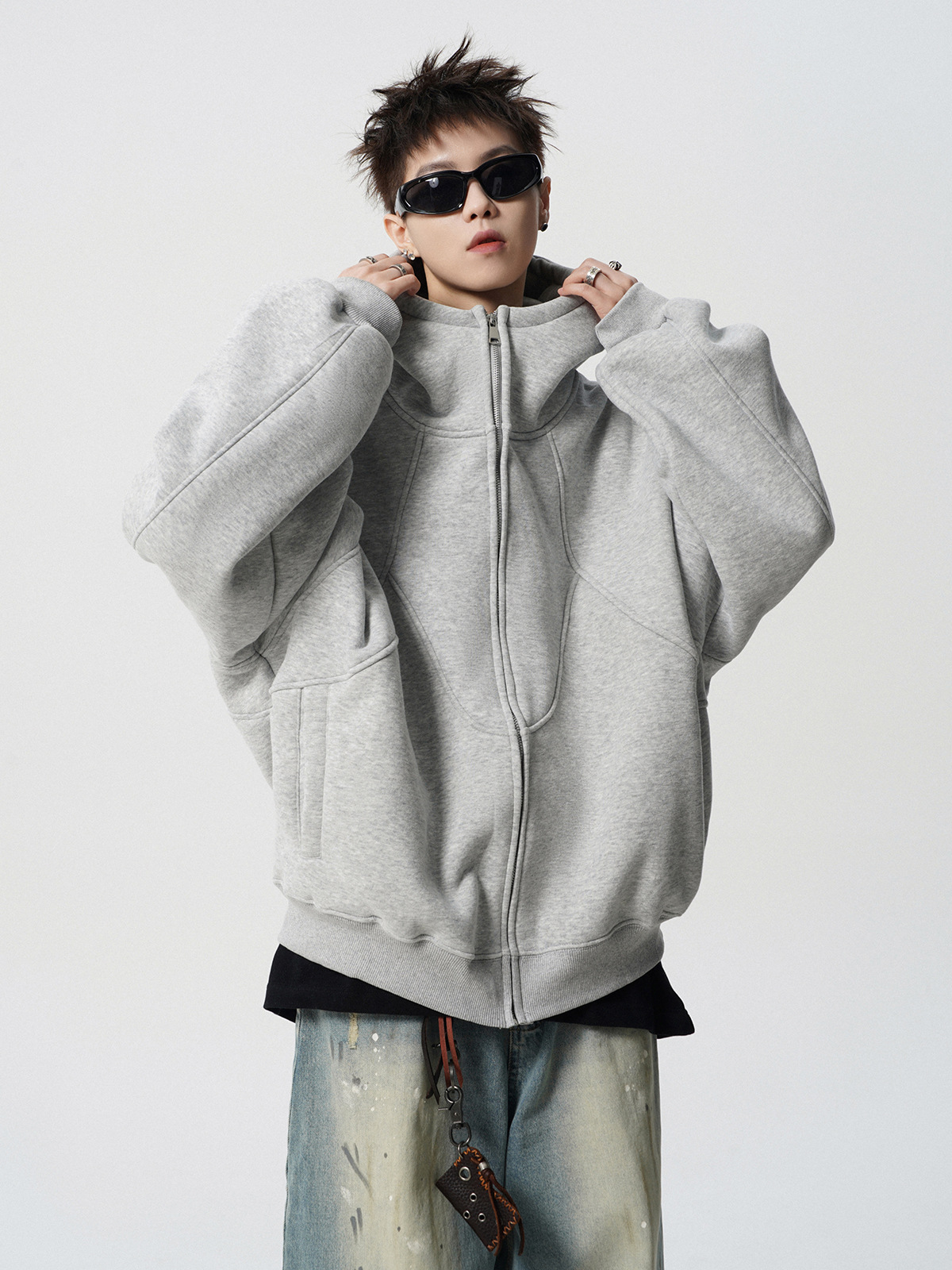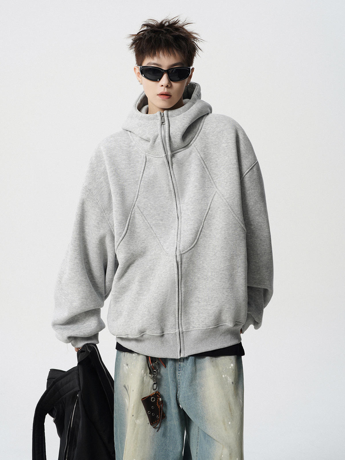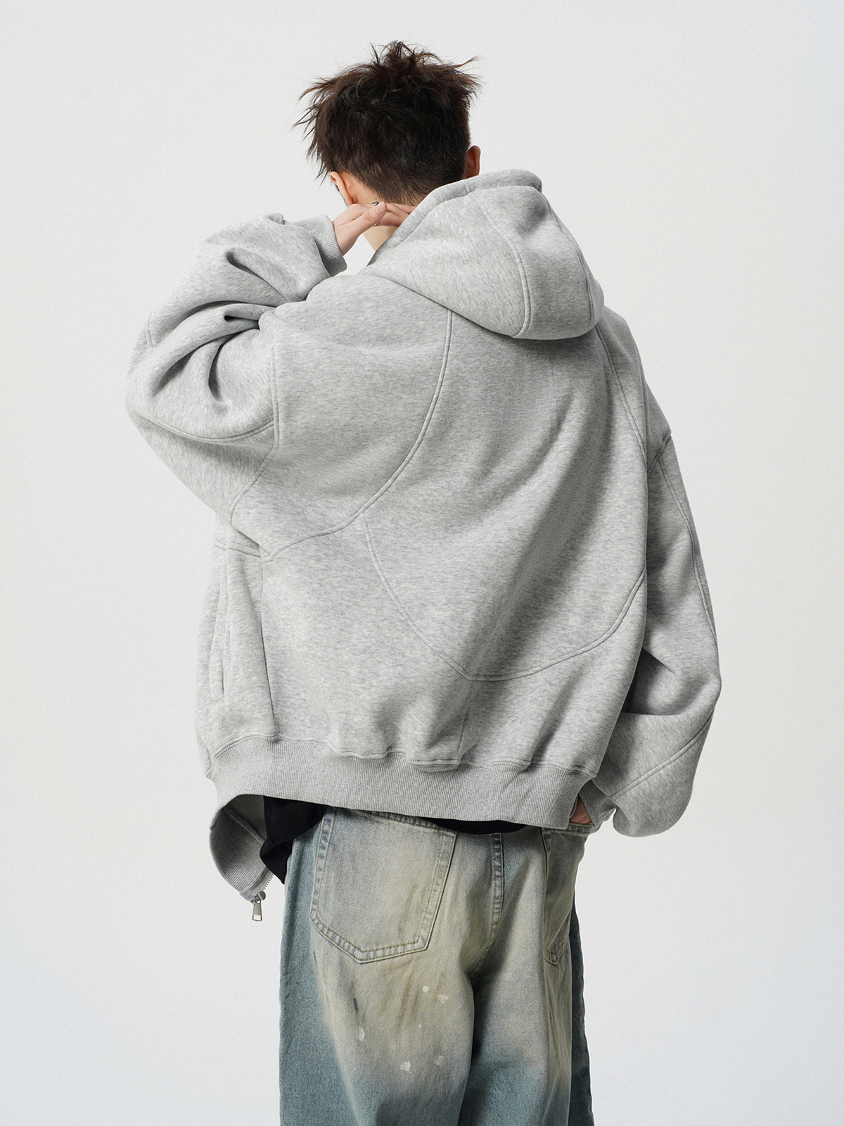 미국식 무거운 해체 후드 재킷 남성 봄 패션 브랜드 디자인 센스 스티칭 스웨터 하이 스트리트 플루튼 핸섬 커플 후디