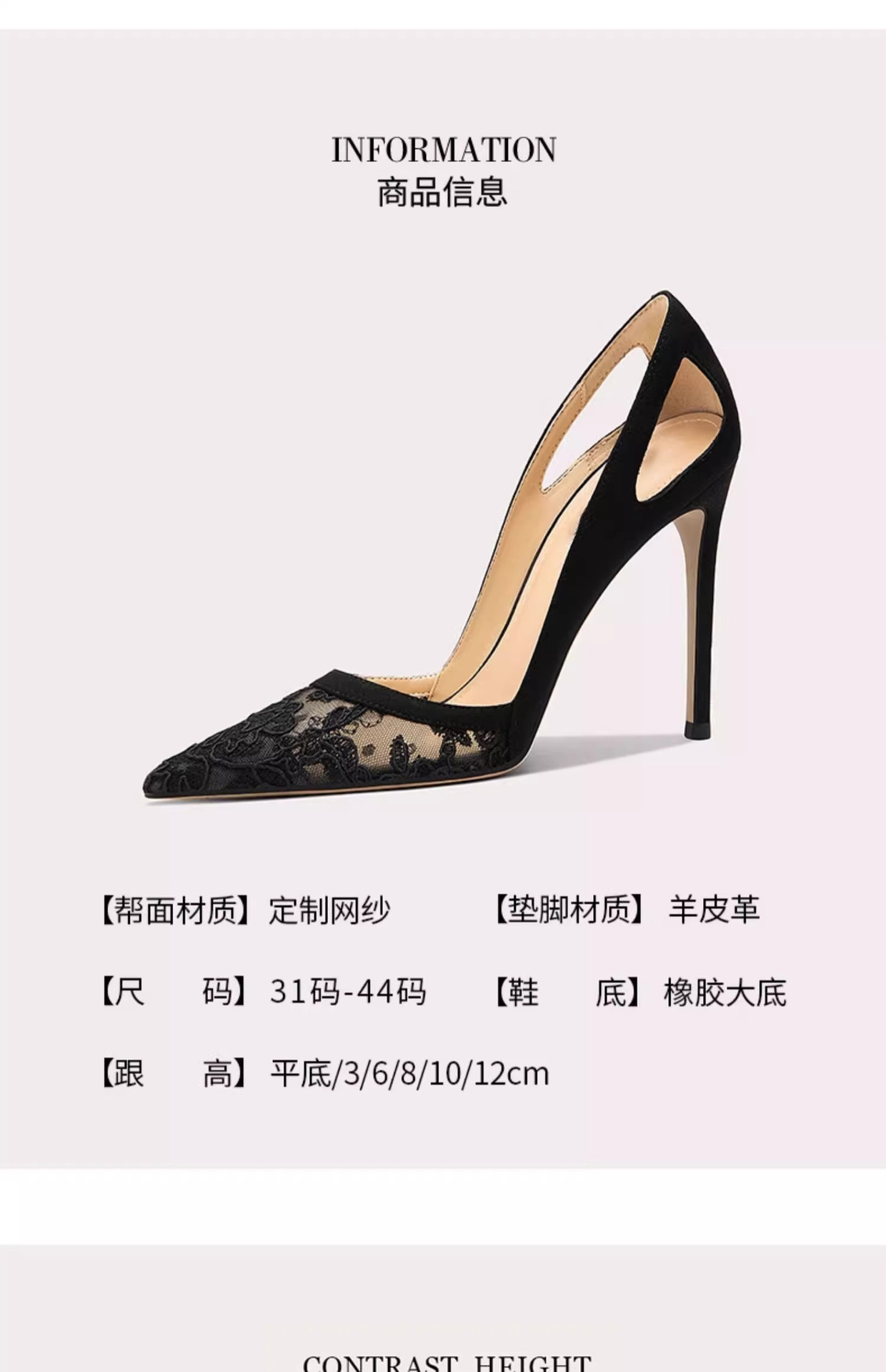지방 확대 2025 새로운 프랑스 신발 레이스 메시 섹시한 절단 남성 하이힐 플러스 사이즈 여성 신발 41-44스토어 가기