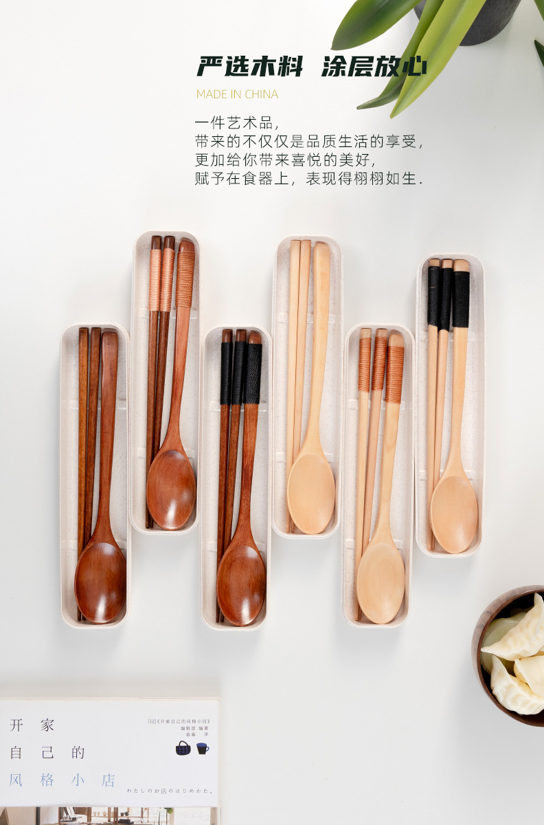 공급 매일 박스형 나무 숟가락 젓가락 자연 환경 보호 한 젓가락 한 스푼 세 조각 세트 휴대용 젓가락 숟가락스토어 가기