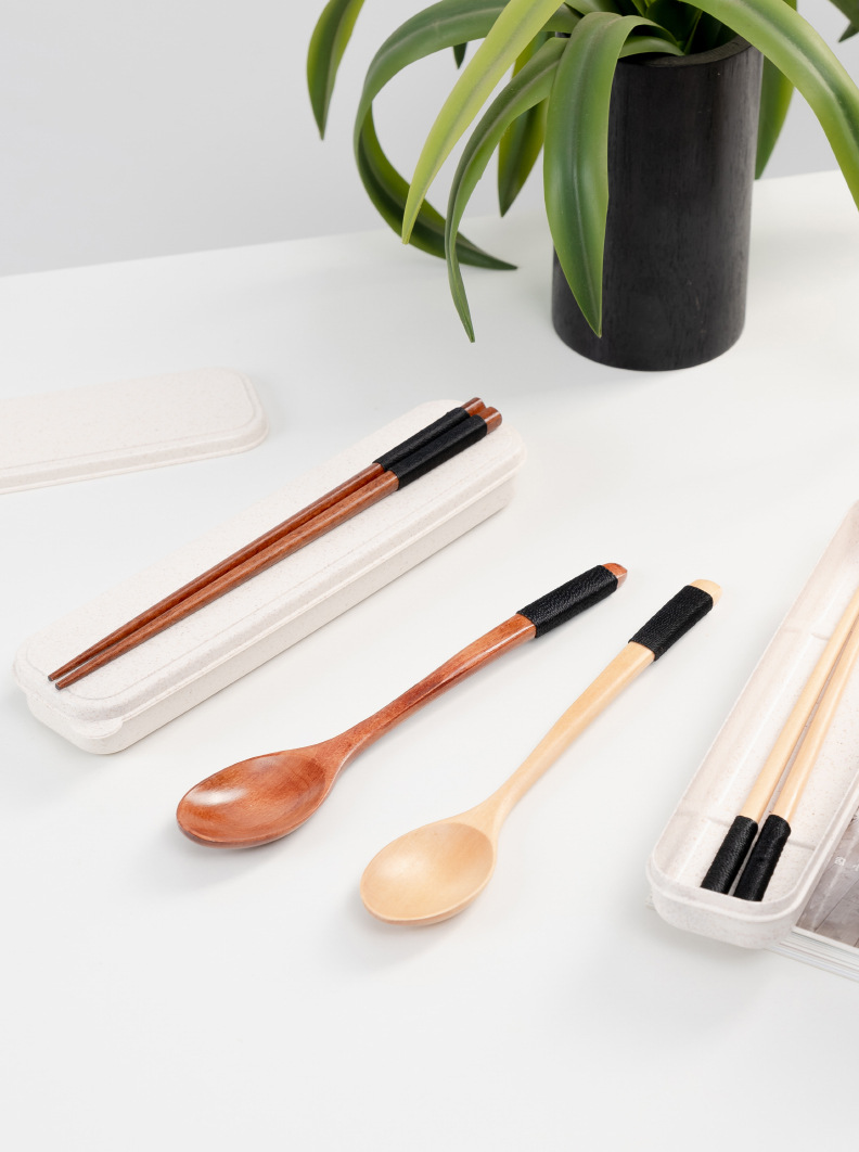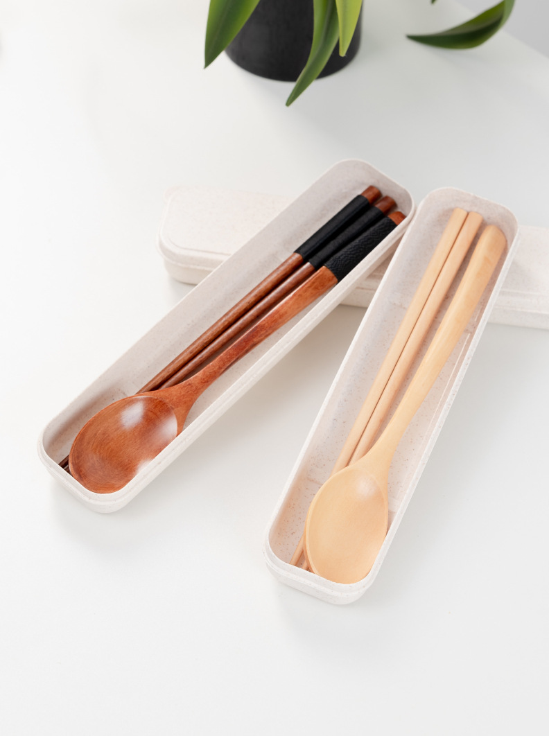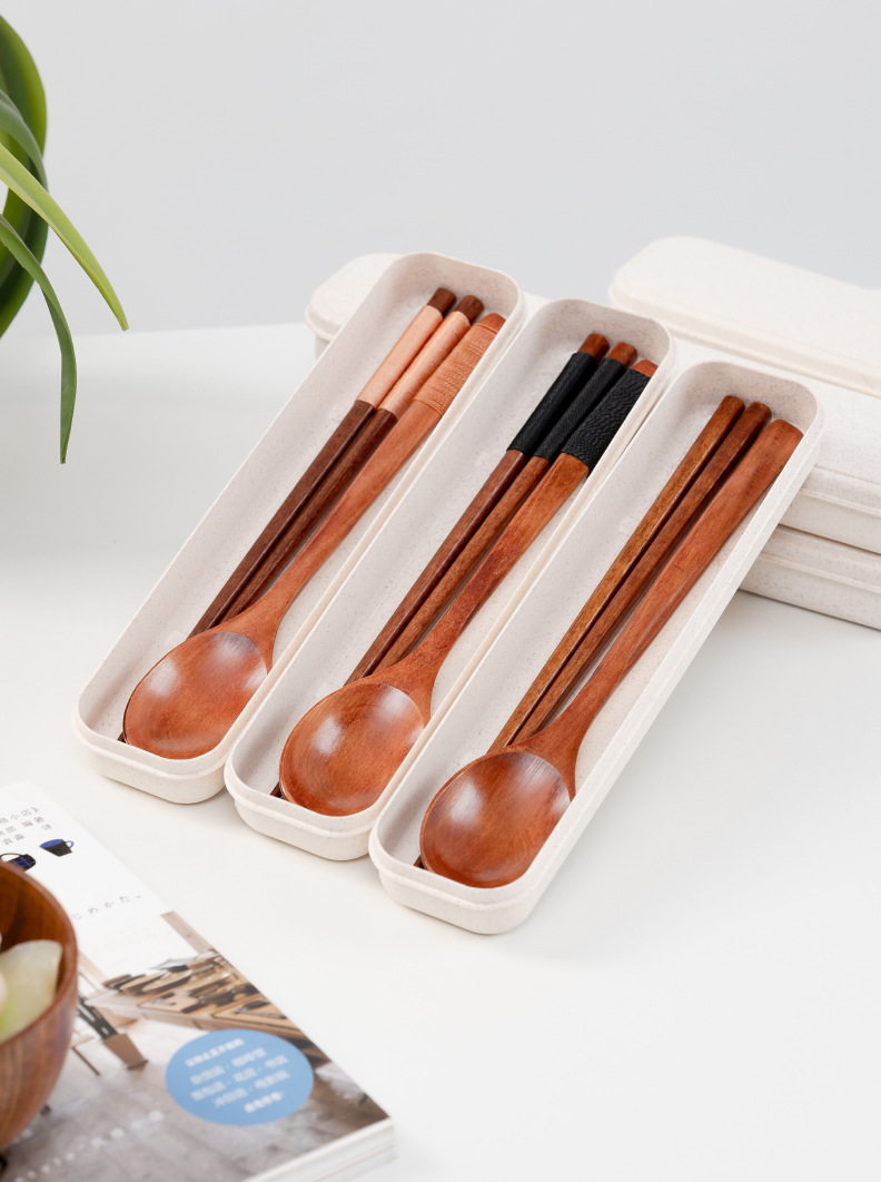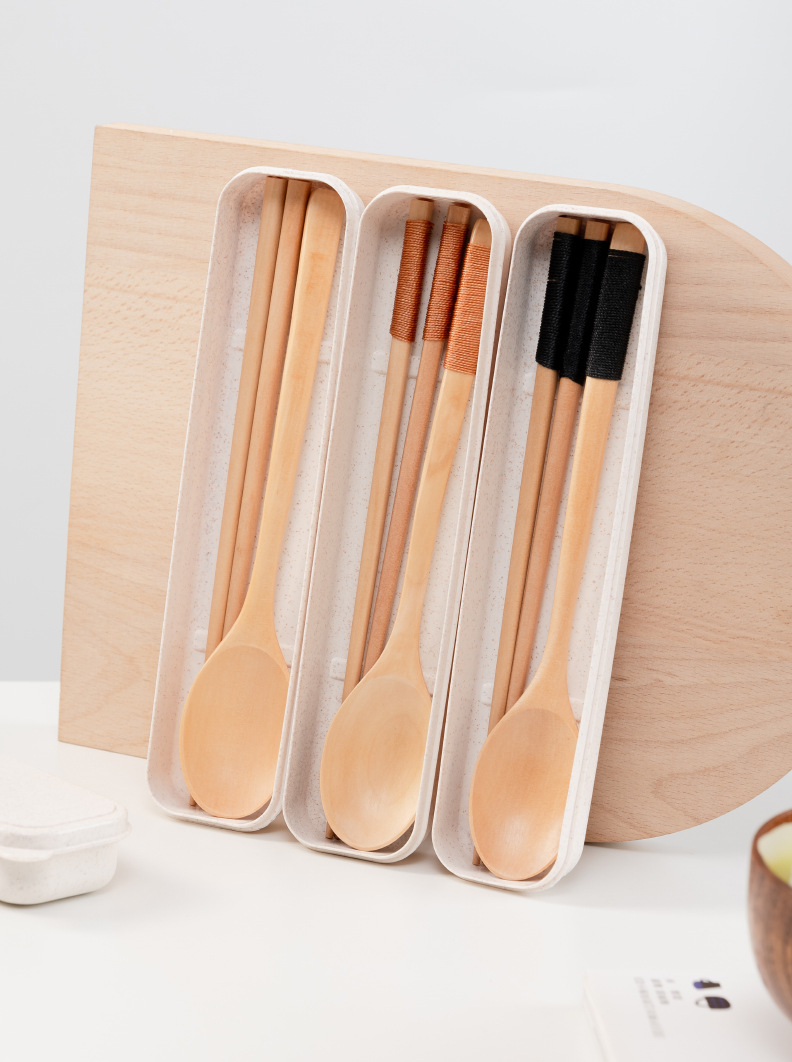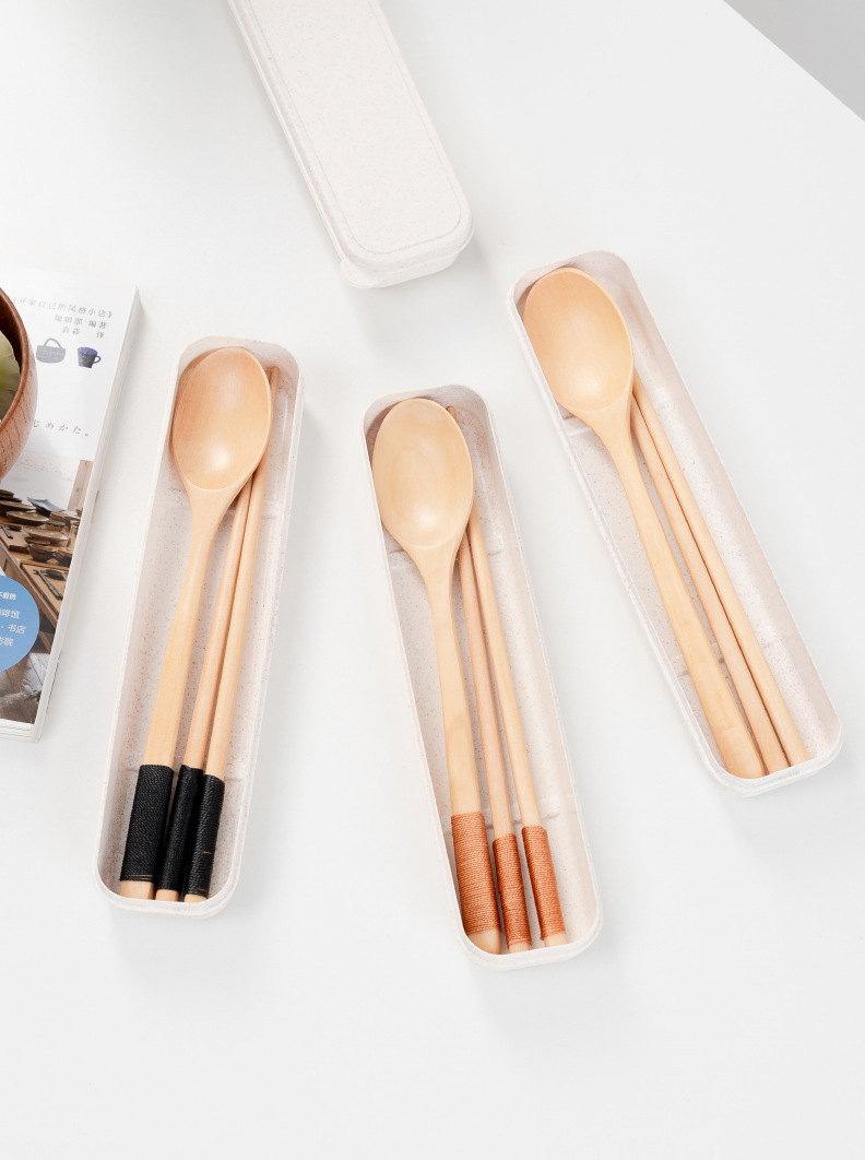 공급 매일 박스형 나무 숟가락 젓가락 자연 환경 보호 한 젓가락 한 스푼 세 조각 세트 휴대용 젓가락 숟가락