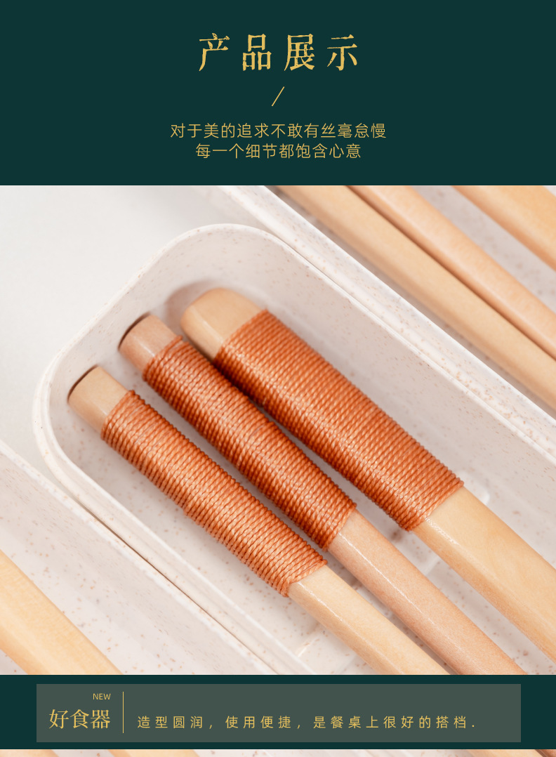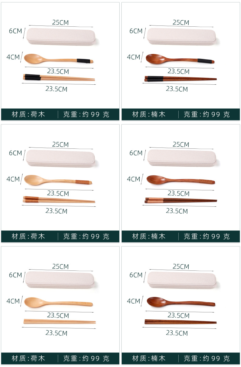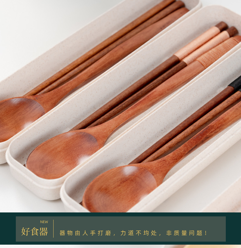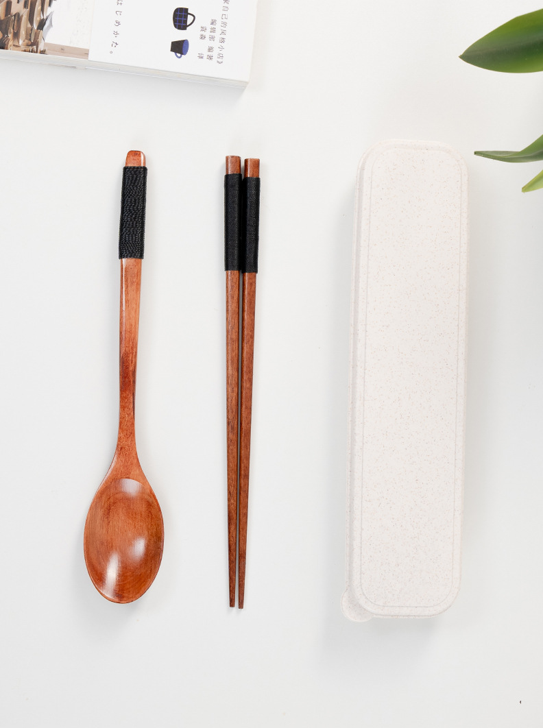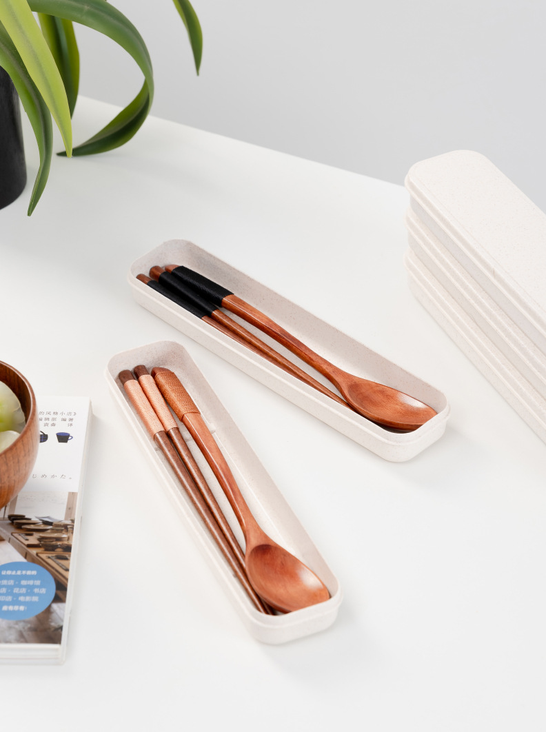 공급 매일 박스형 나무 숟가락 젓가락 자연 환경 보호 한 젓가락 한 스푼 세 조각 세트 휴대용 젓가락 숟가락