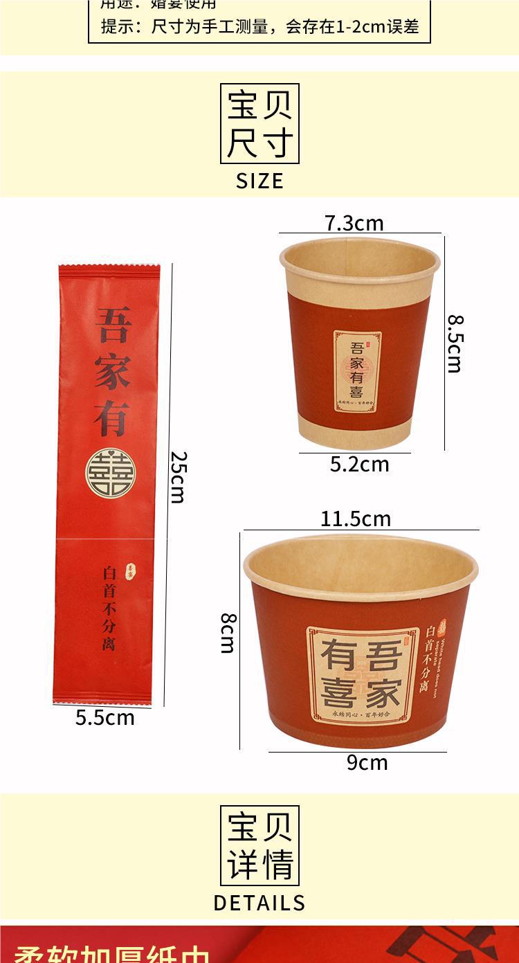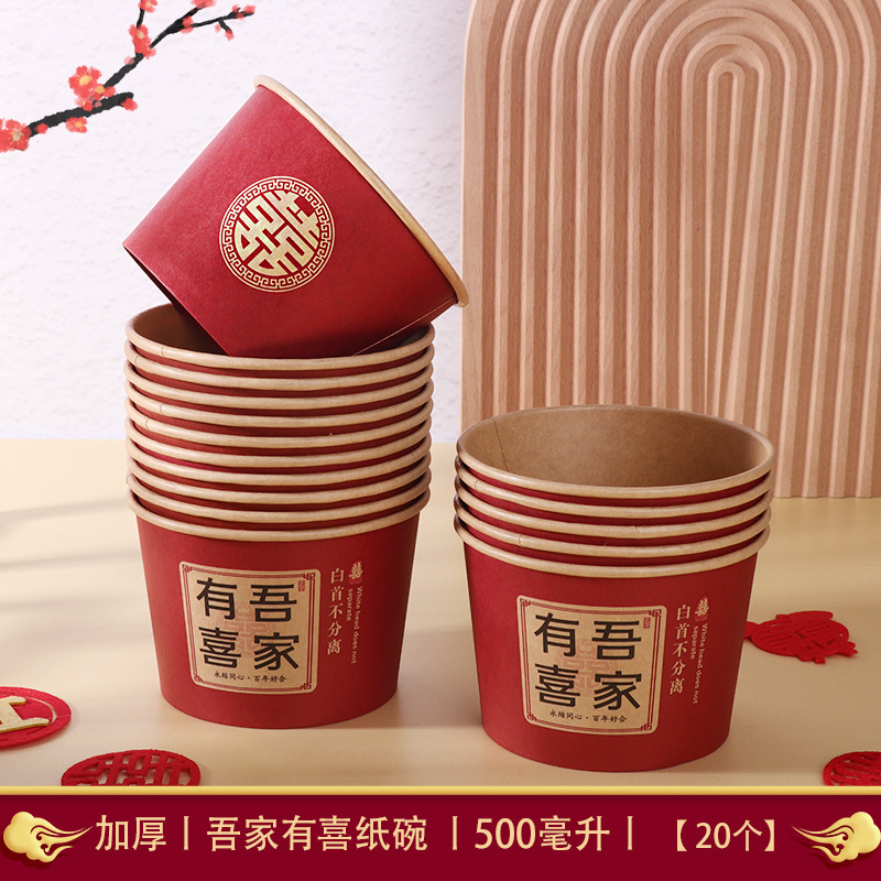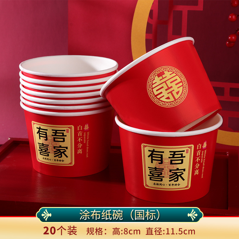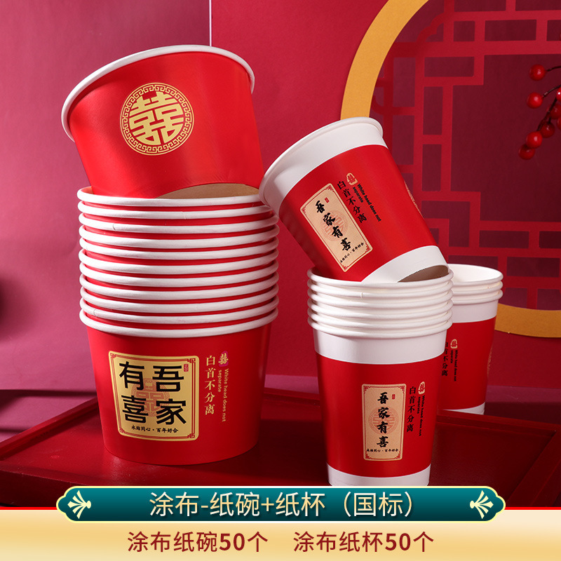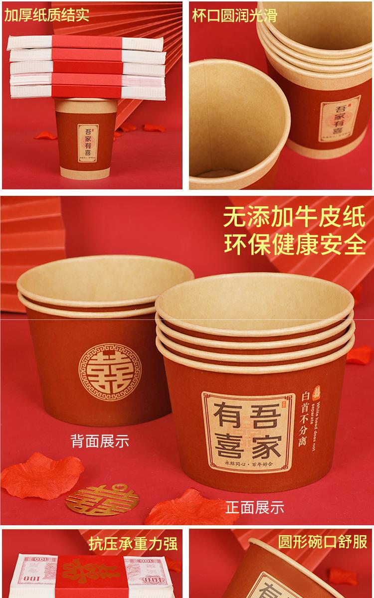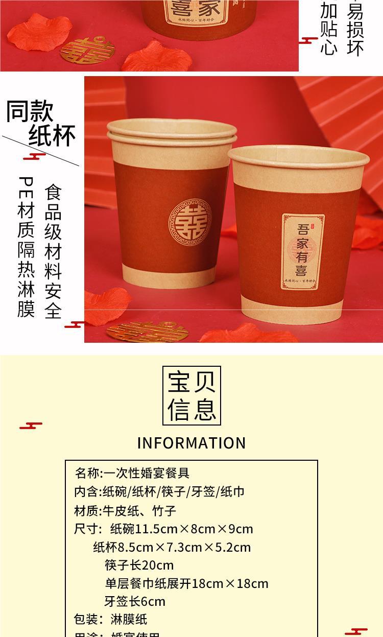 일회용 종이컵 웨딩 연회 종이 그릇 약혼 웨딩 그릇 젓가락 식기 세트 웨딩 축제 레드 해피 컵스토어 가기